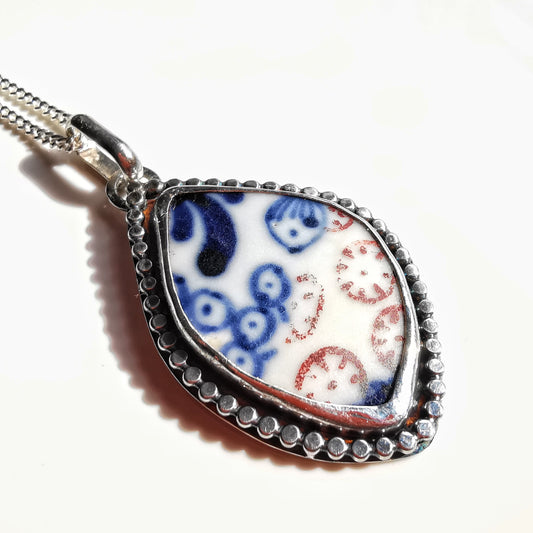 Scottish blue and white sea porcelain & sterling silver pendant.