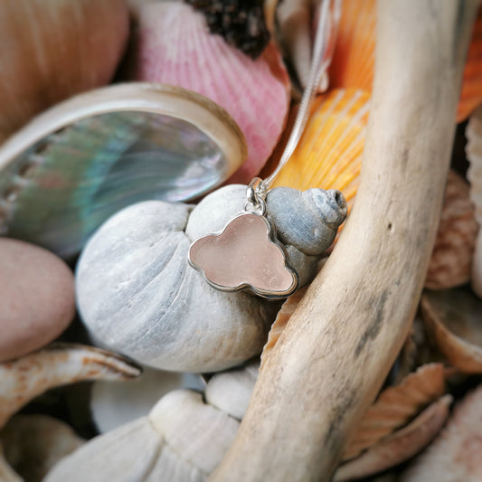 Genuine Scottish clear sea glass cloud & sterling silver pendant.
