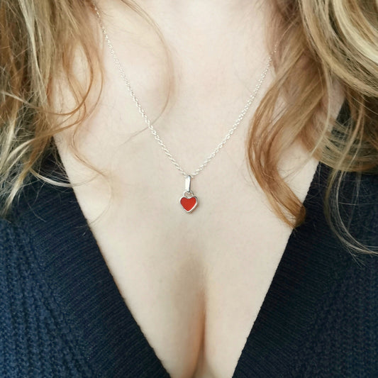 Tiny Scottish UV red sea glass heart & sterling silver pendant.