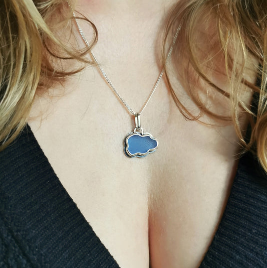 Scottish blue sea glass cloud & sterling silver pendant.
