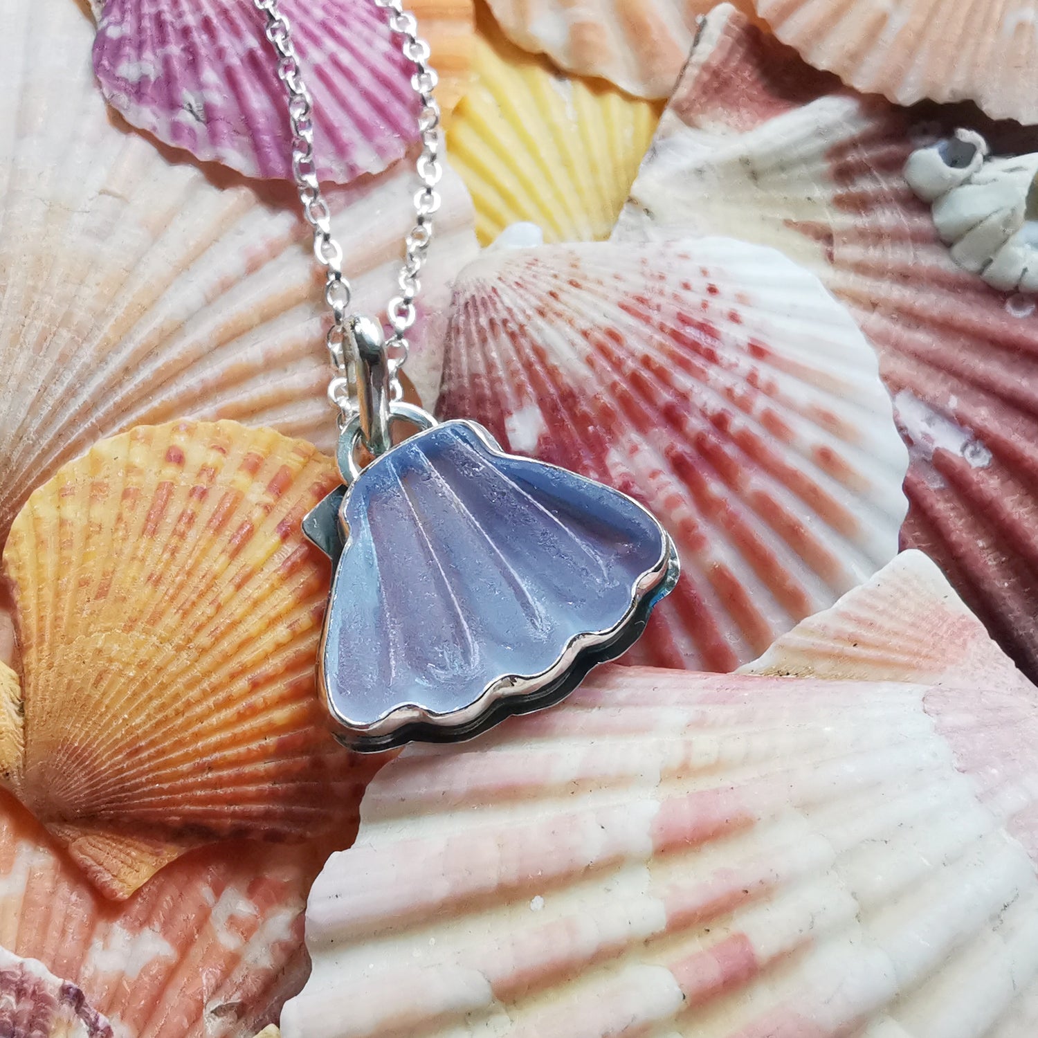 Scottish teal blue sea glass heart & sterling silver pendant.