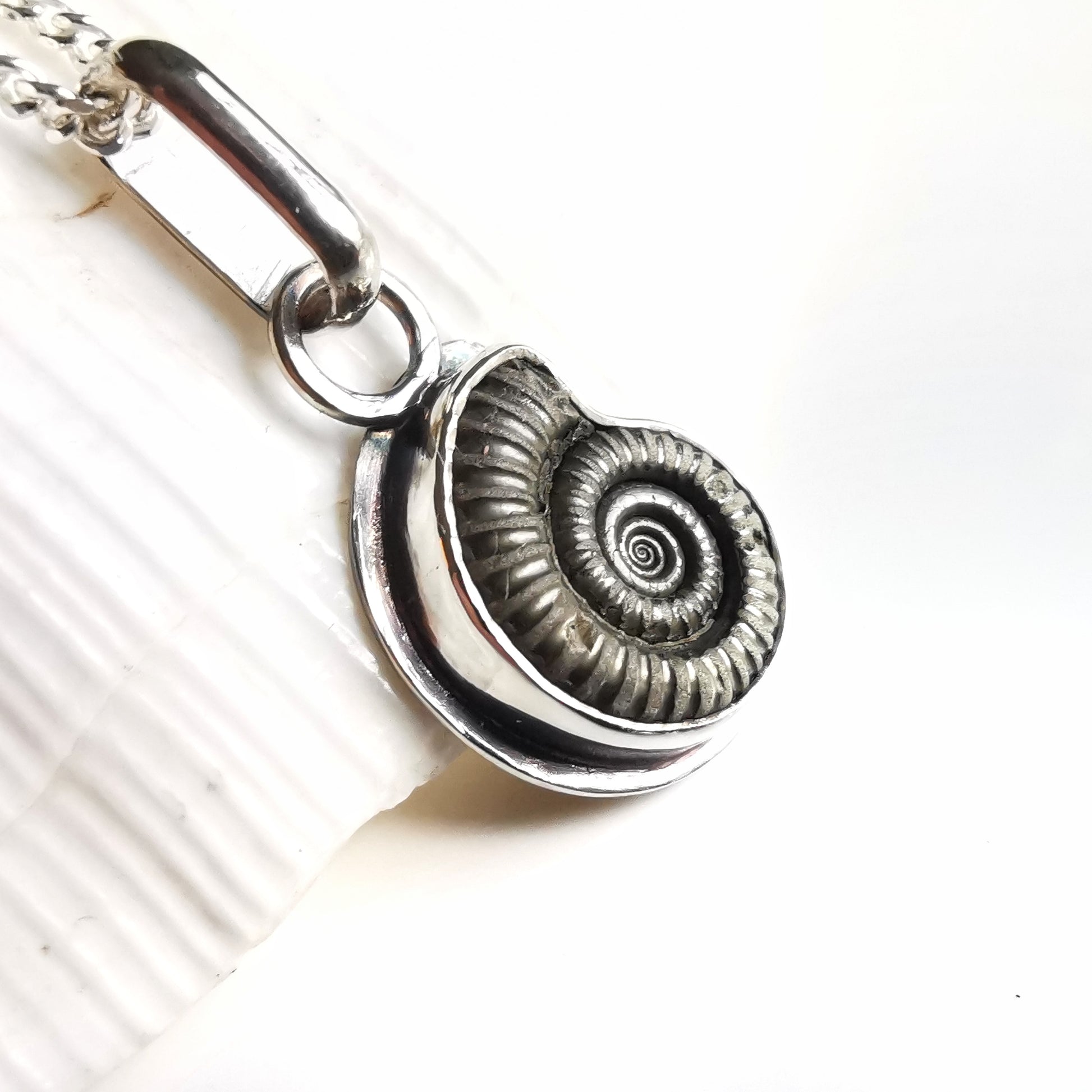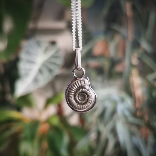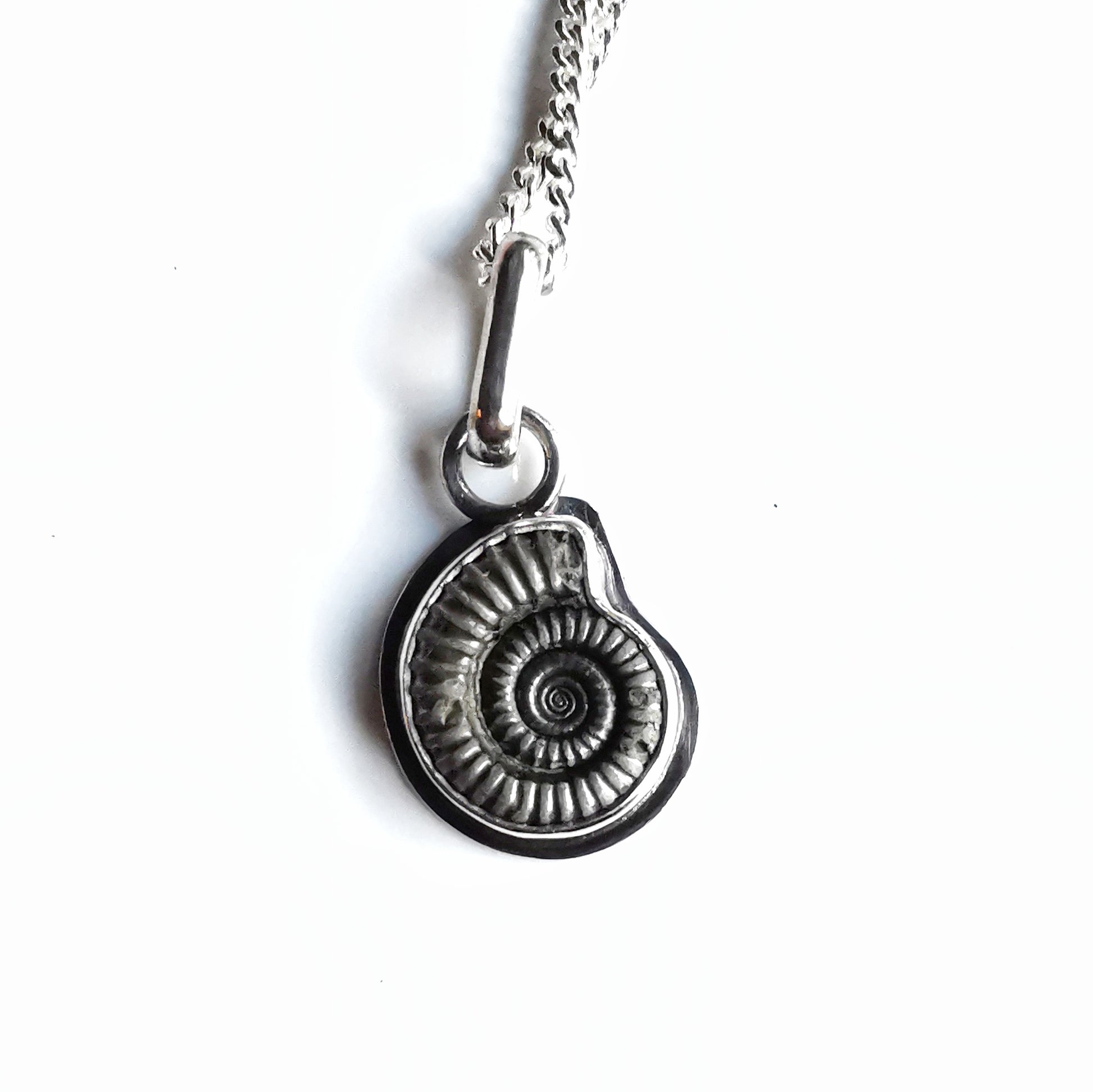 One of a kind pendant composed with genuine Ammonite fossil. The fossil is set in fine silver bezel, the chain is sterling silver.