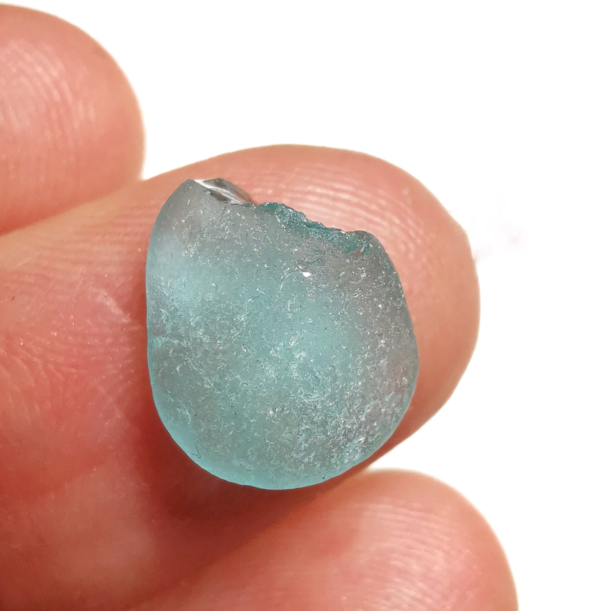 One of a kind pendant composed with light aquamarine UV sea glass (glows under ultraviolet light).