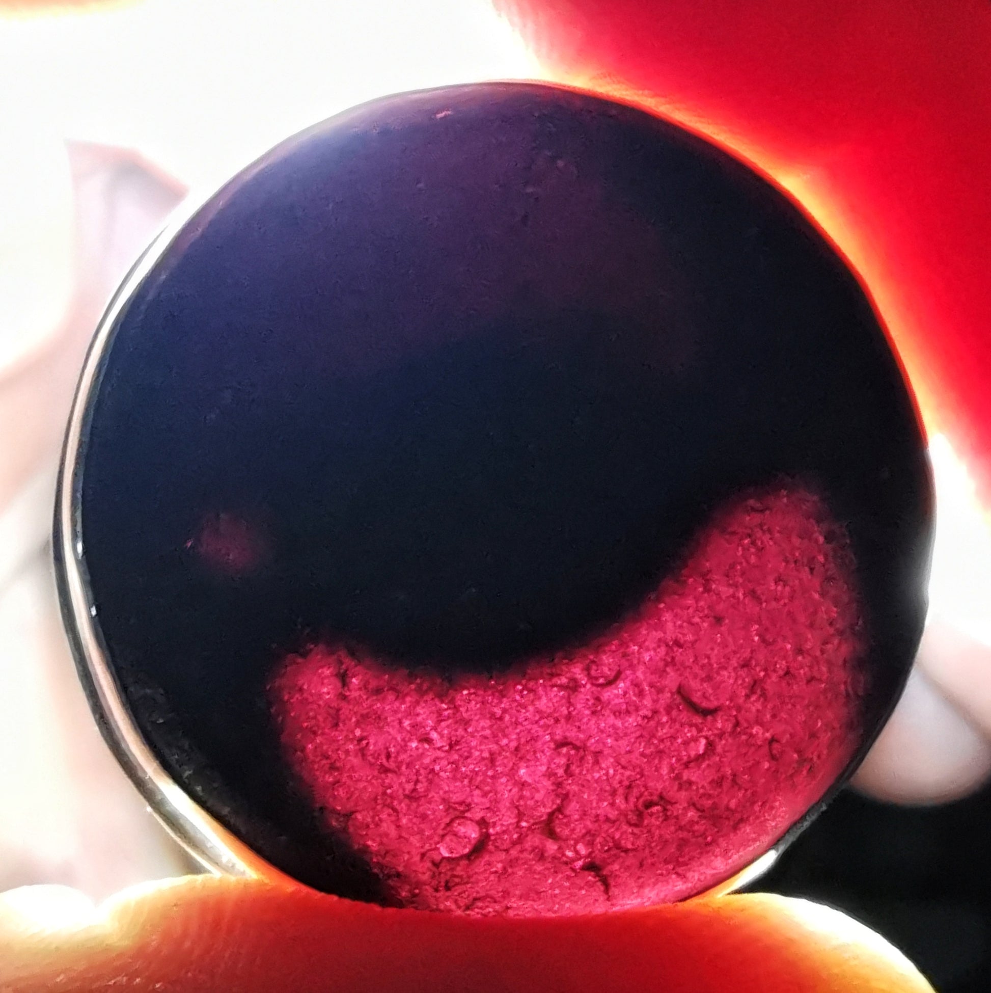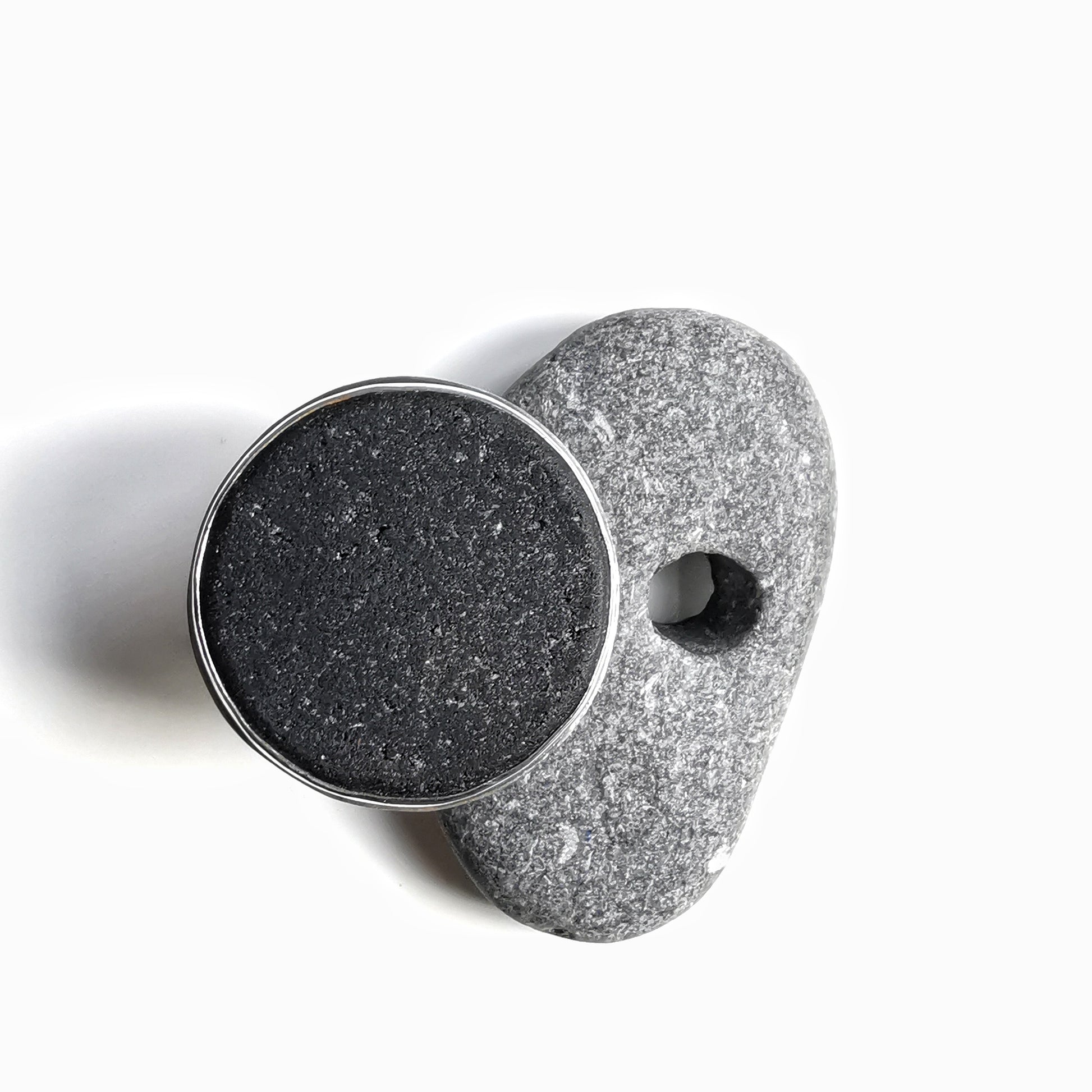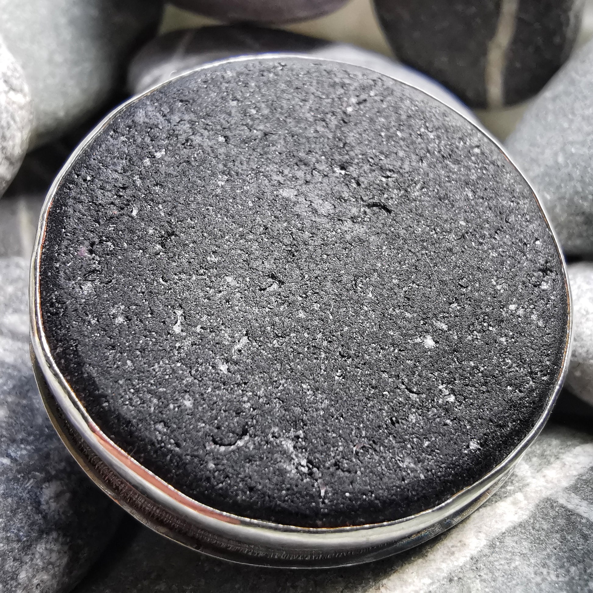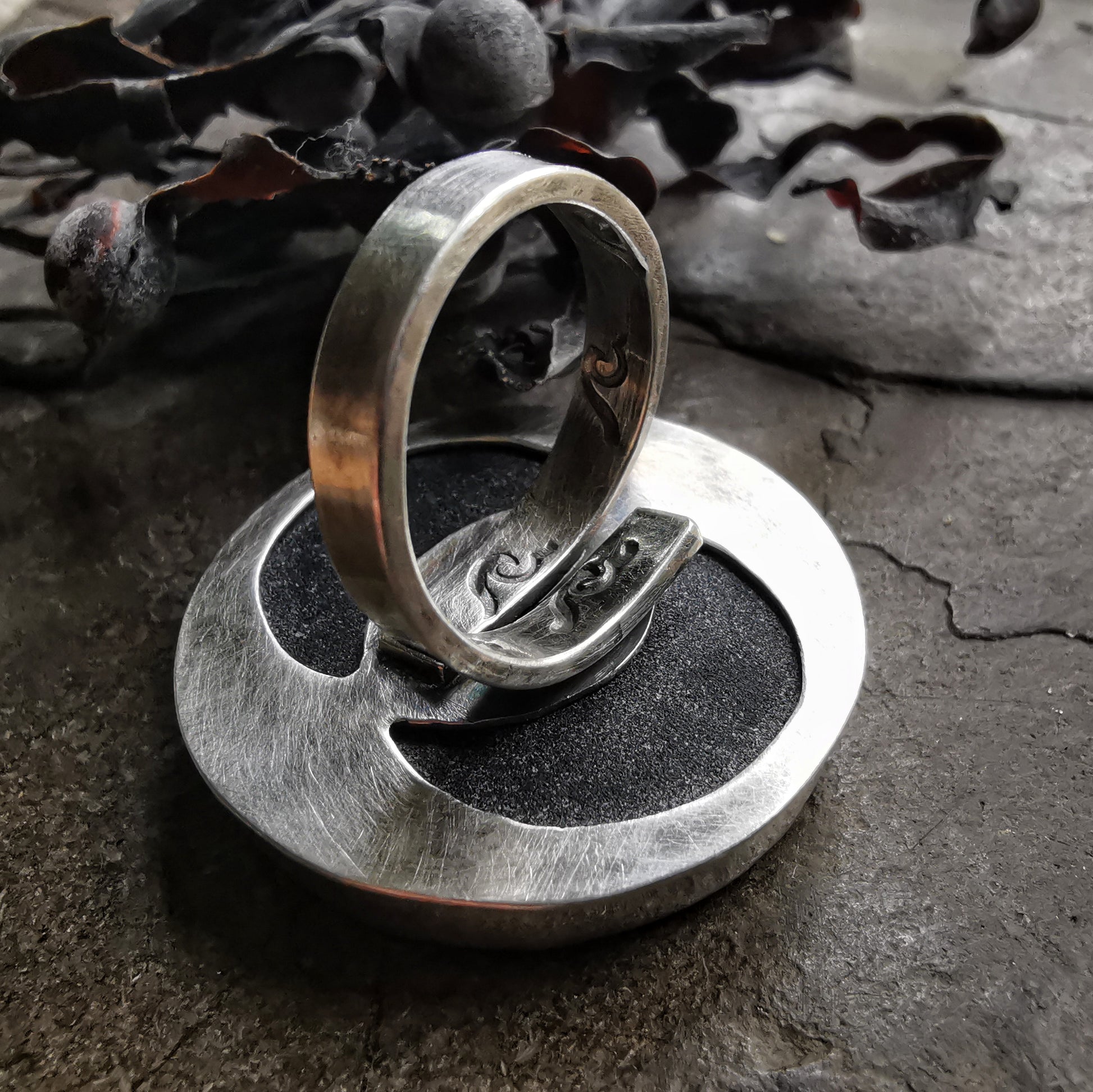 One of a kind adjustable ring composed with genuine frosted black Scottish sea glass with hidden purple/grape colour. The sea glass is set in fine silver bezel, the band is sterling silver. I've shaped this sea glass myself, you can see how it looked previously on the last photo.