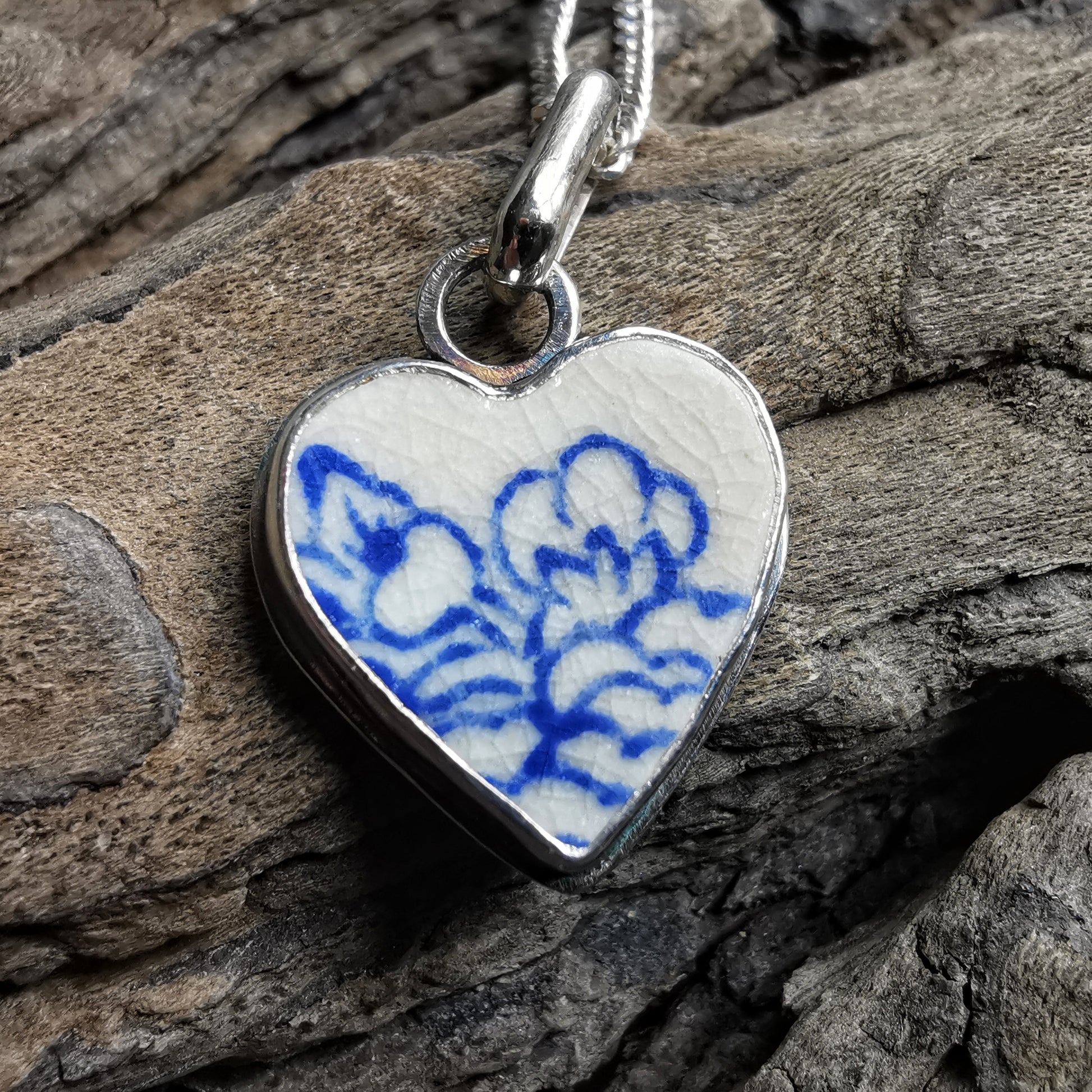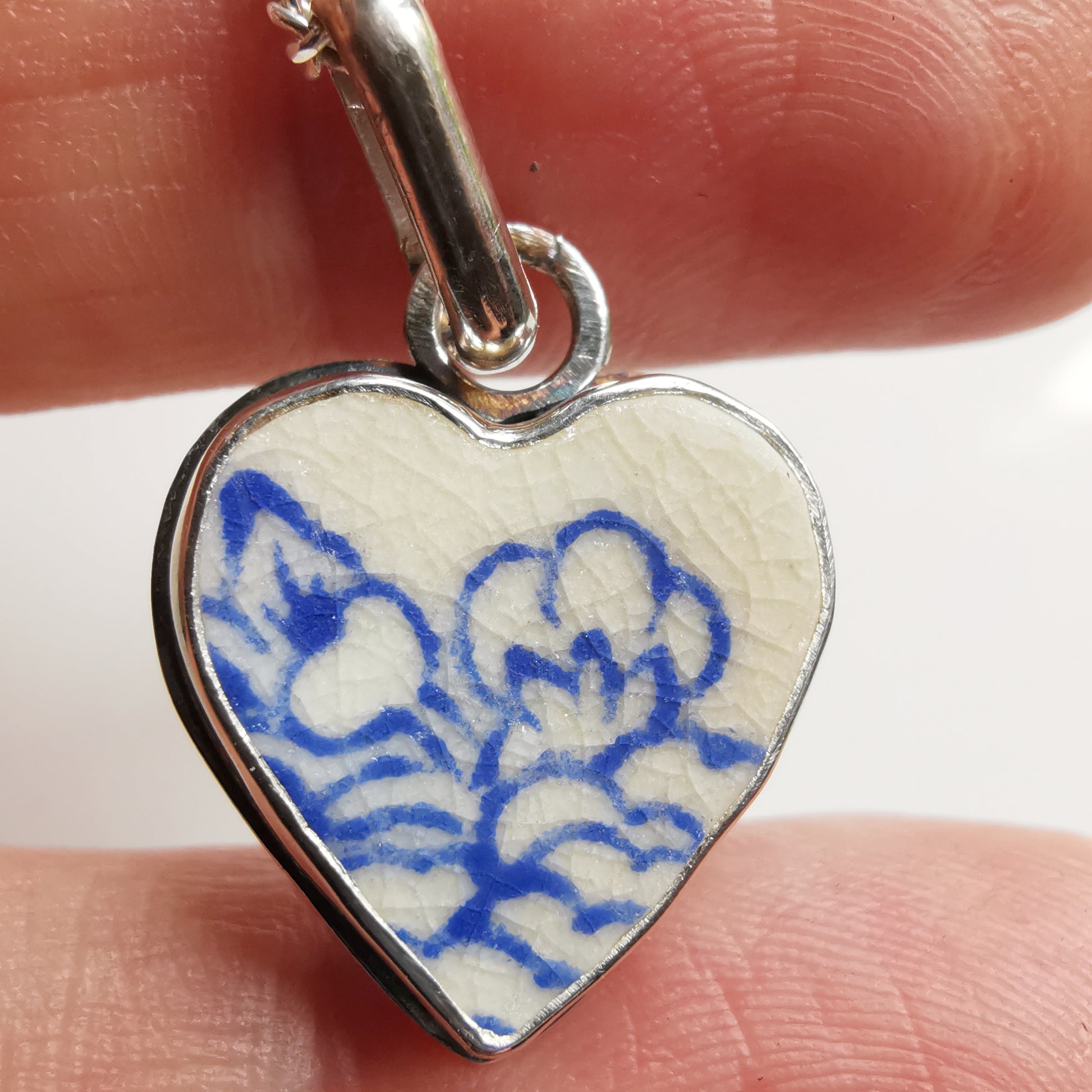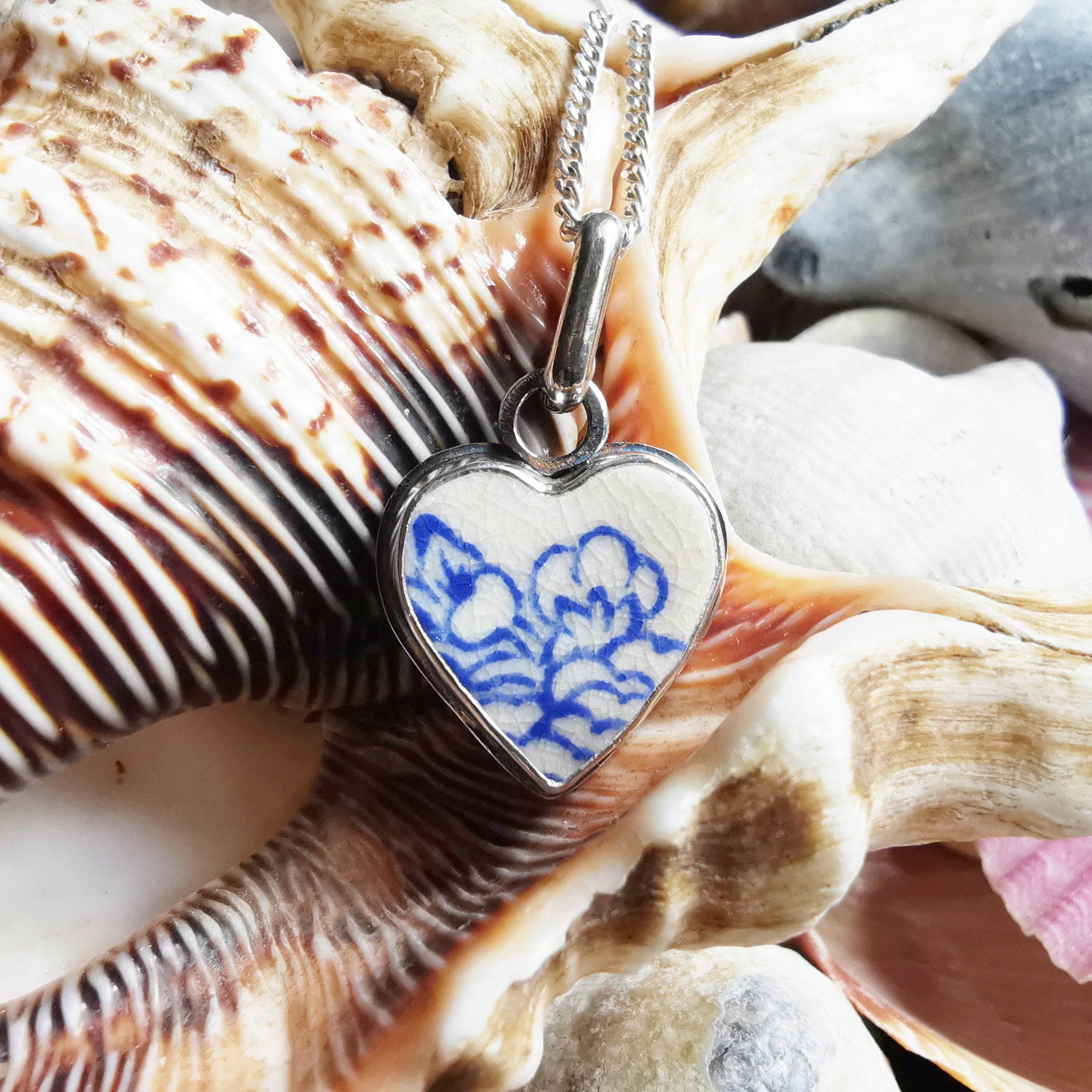 One of a kind pendant composed with Scottish blue and white beach pottery piece, found by myself on a beach in Edinburgh. The pottery piece is set in fine silver bezel, the chain is sterling silver. I've shaped it myself to make this pendant, you can see how it looked before on the last photo.
