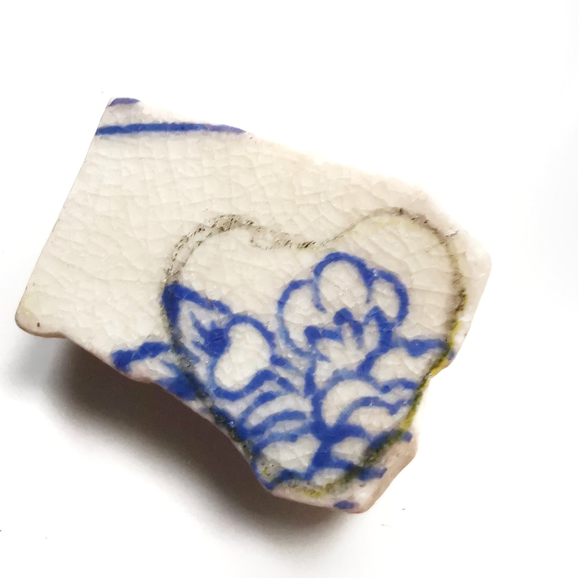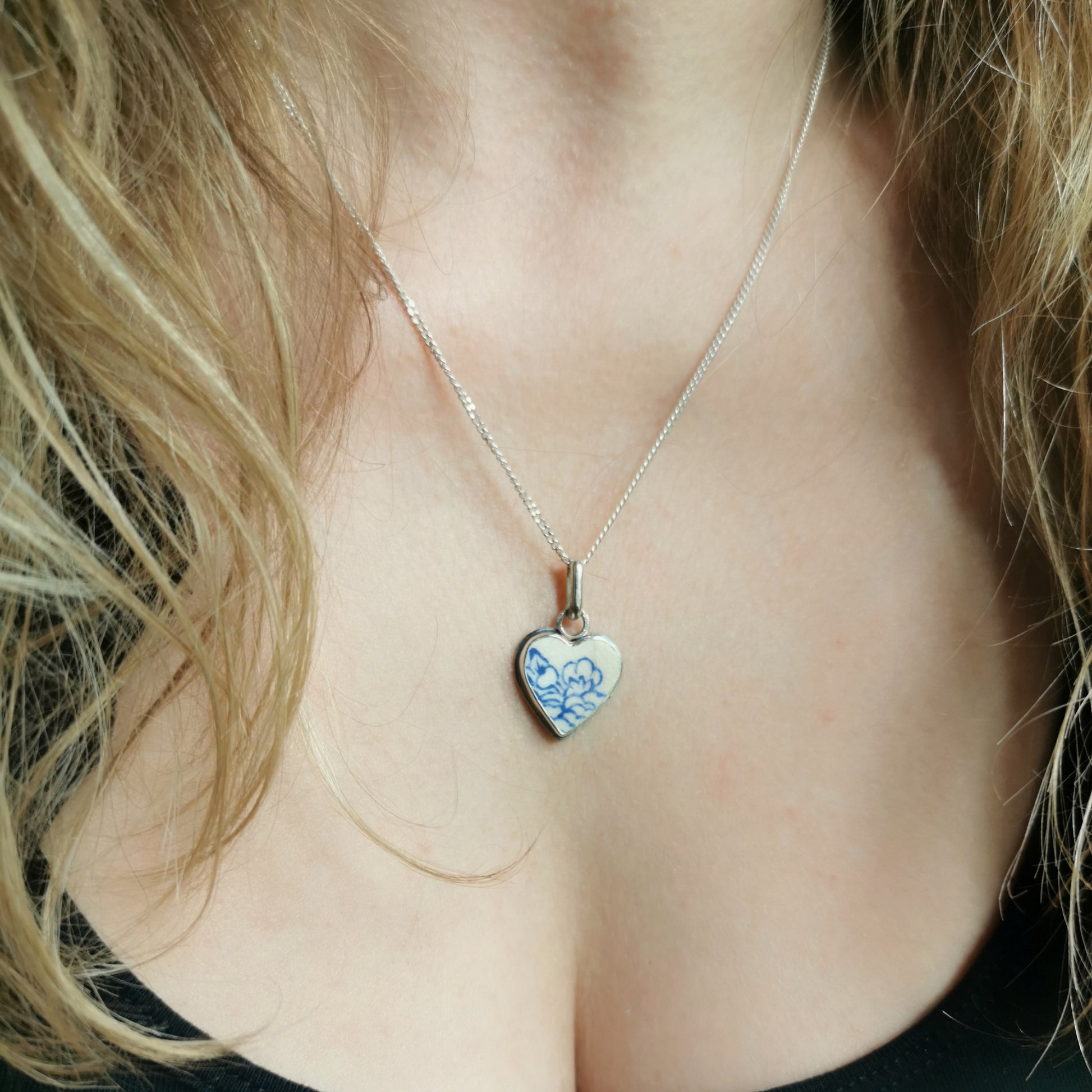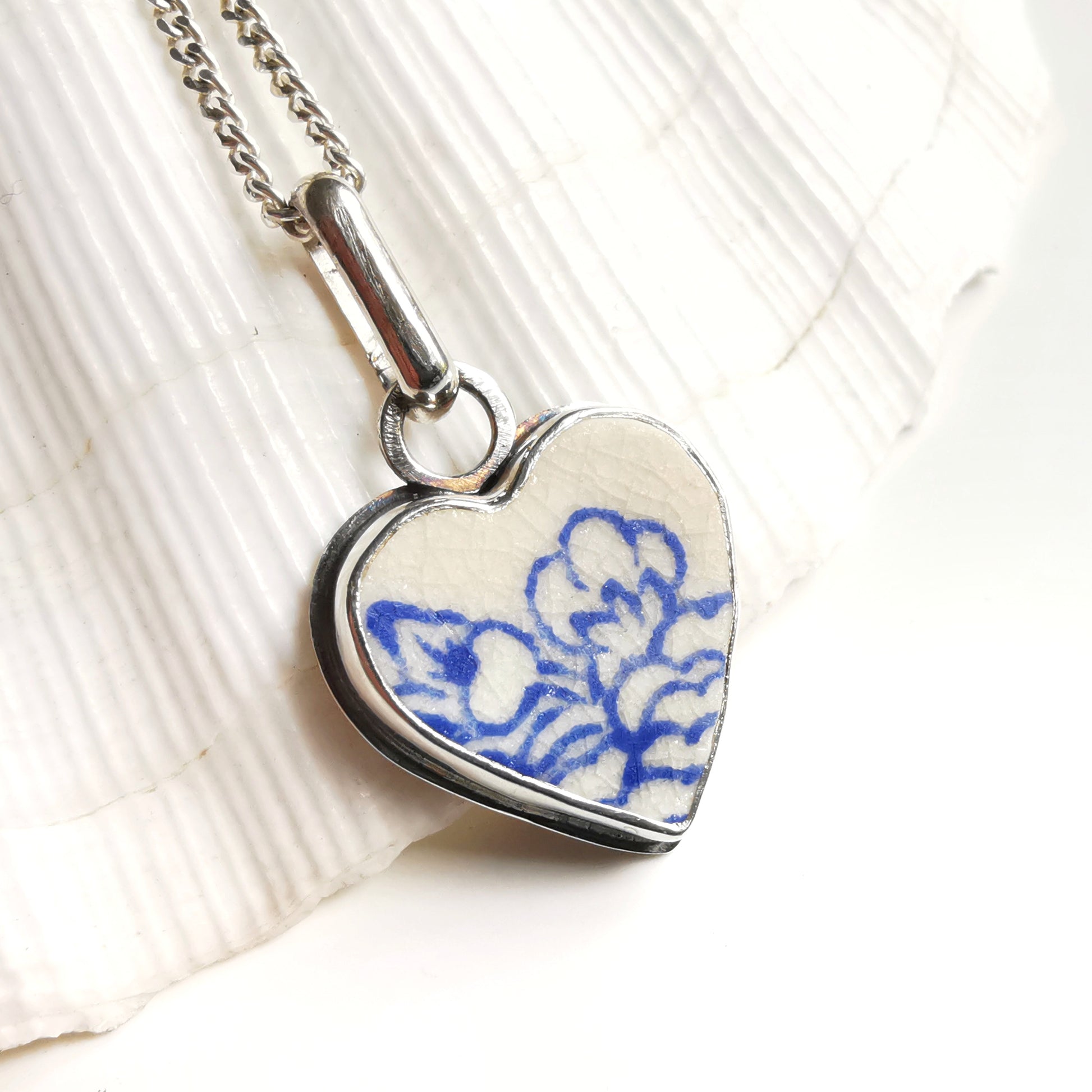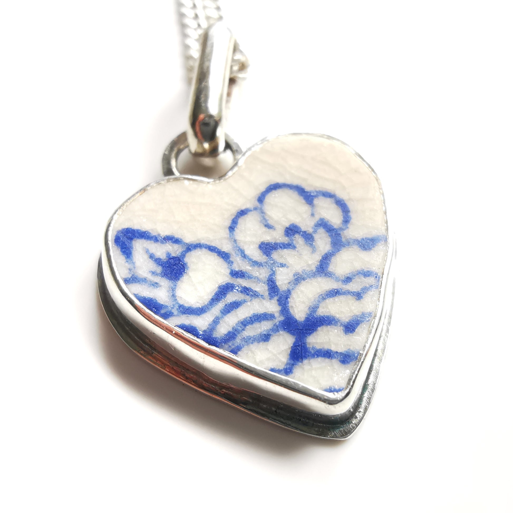 One of a kind pendant composed with Scottish blue and white beach pottery piece, found by myself on a beach in Edinburgh. The pottery piece is set in fine silver bezel, the chain is sterling silver. I've shaped it myself to make this pendant, you can see how it looked before on the last photo.