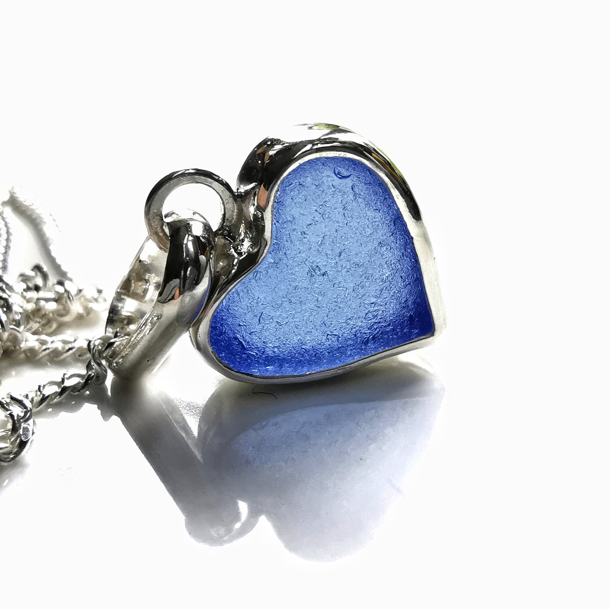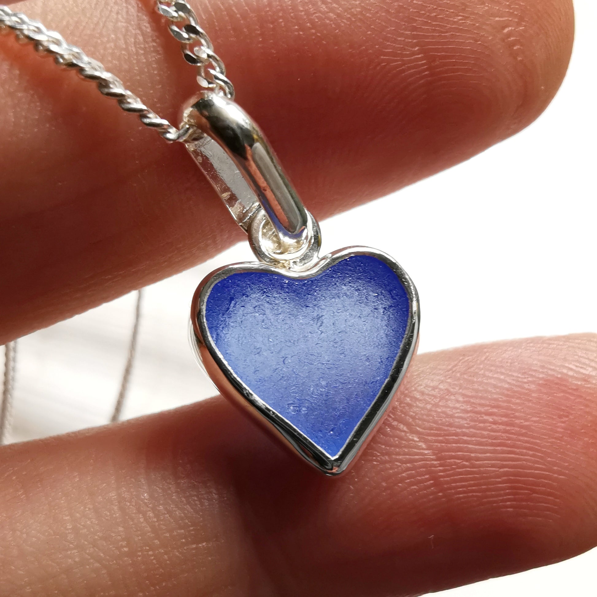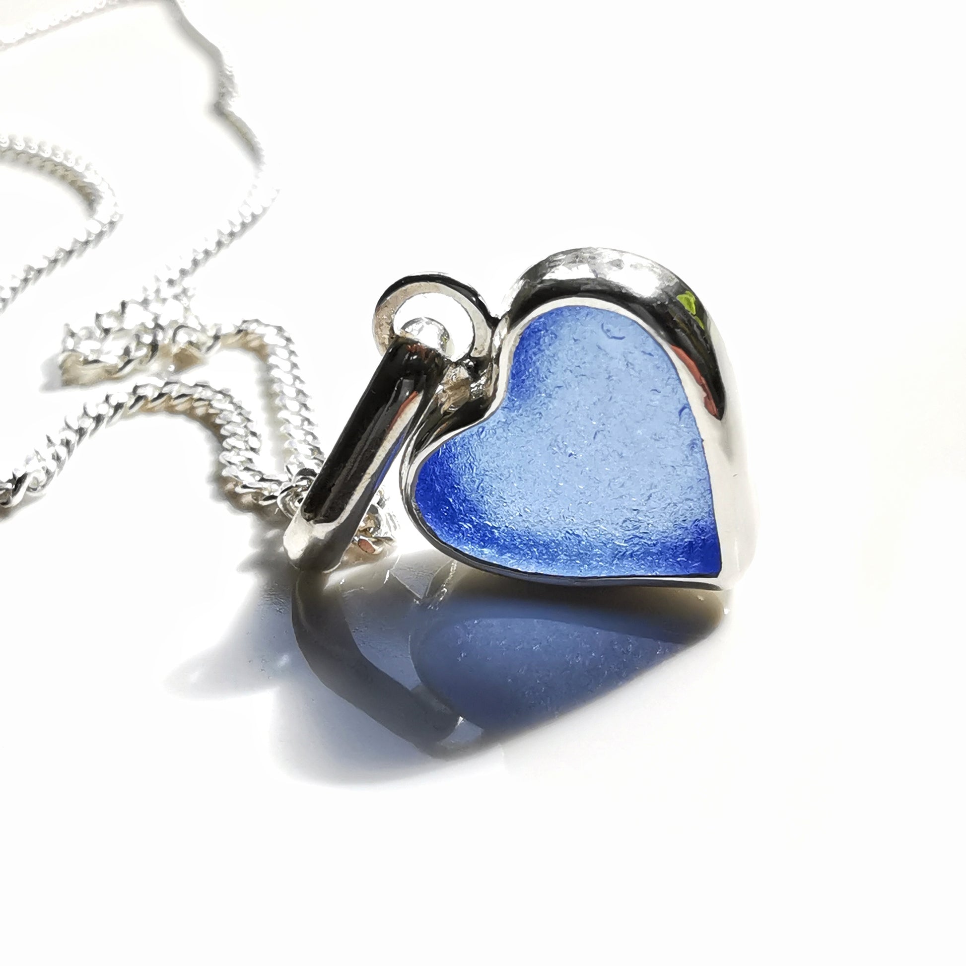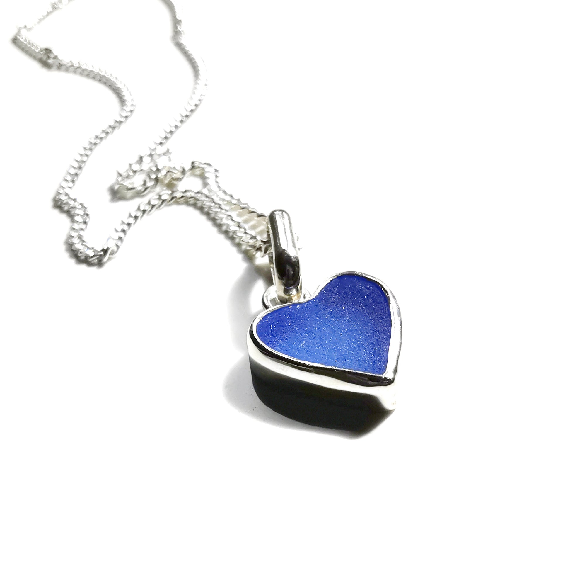 Blue sea glass heart & sterling silver pendant.