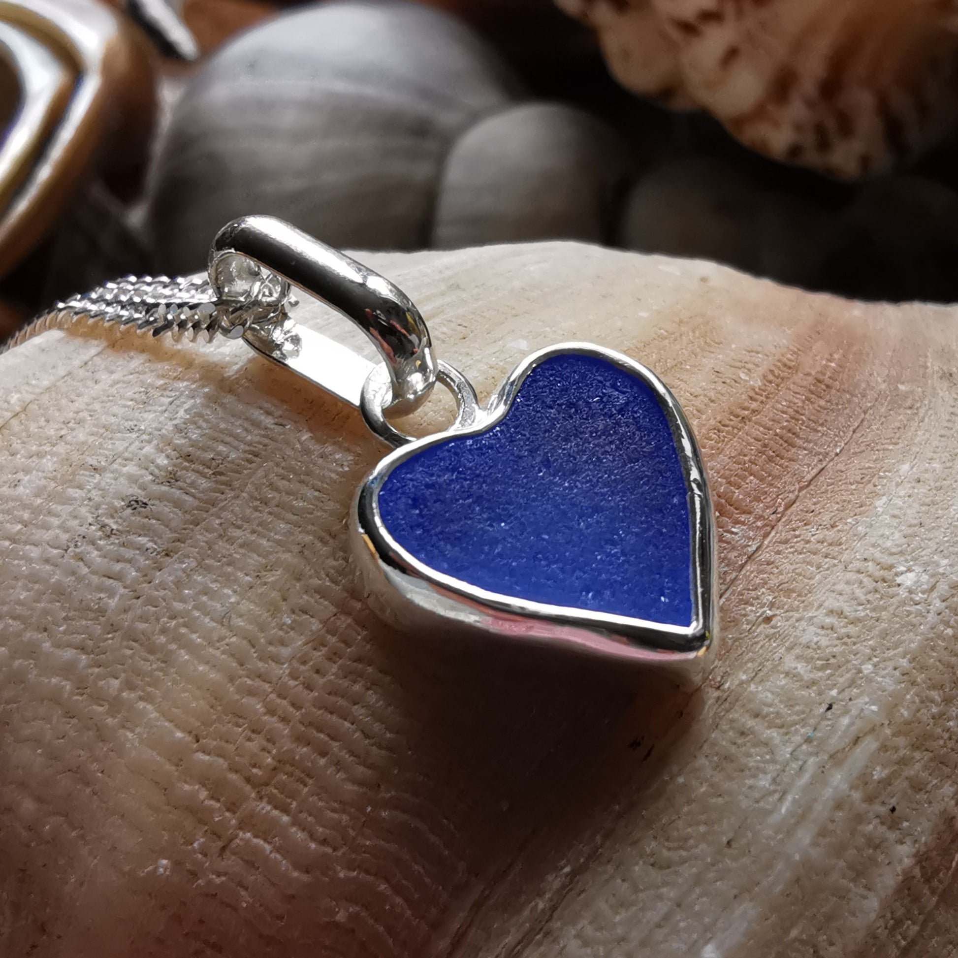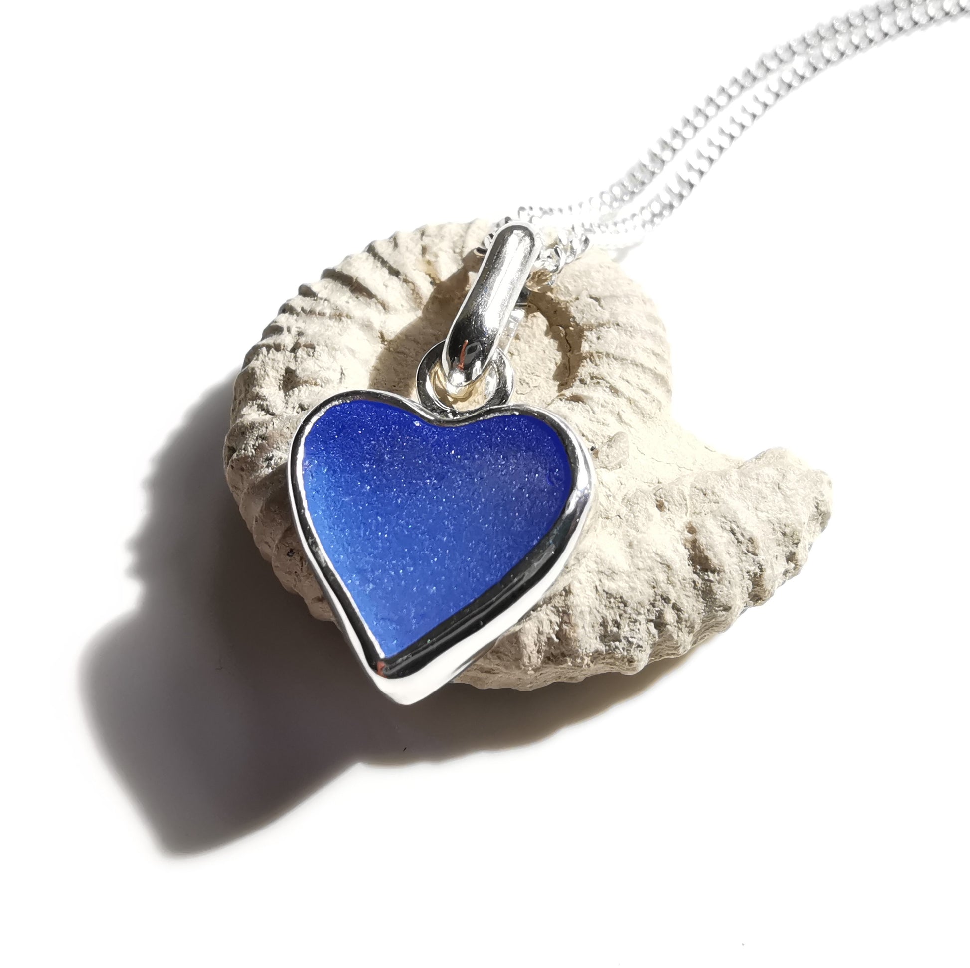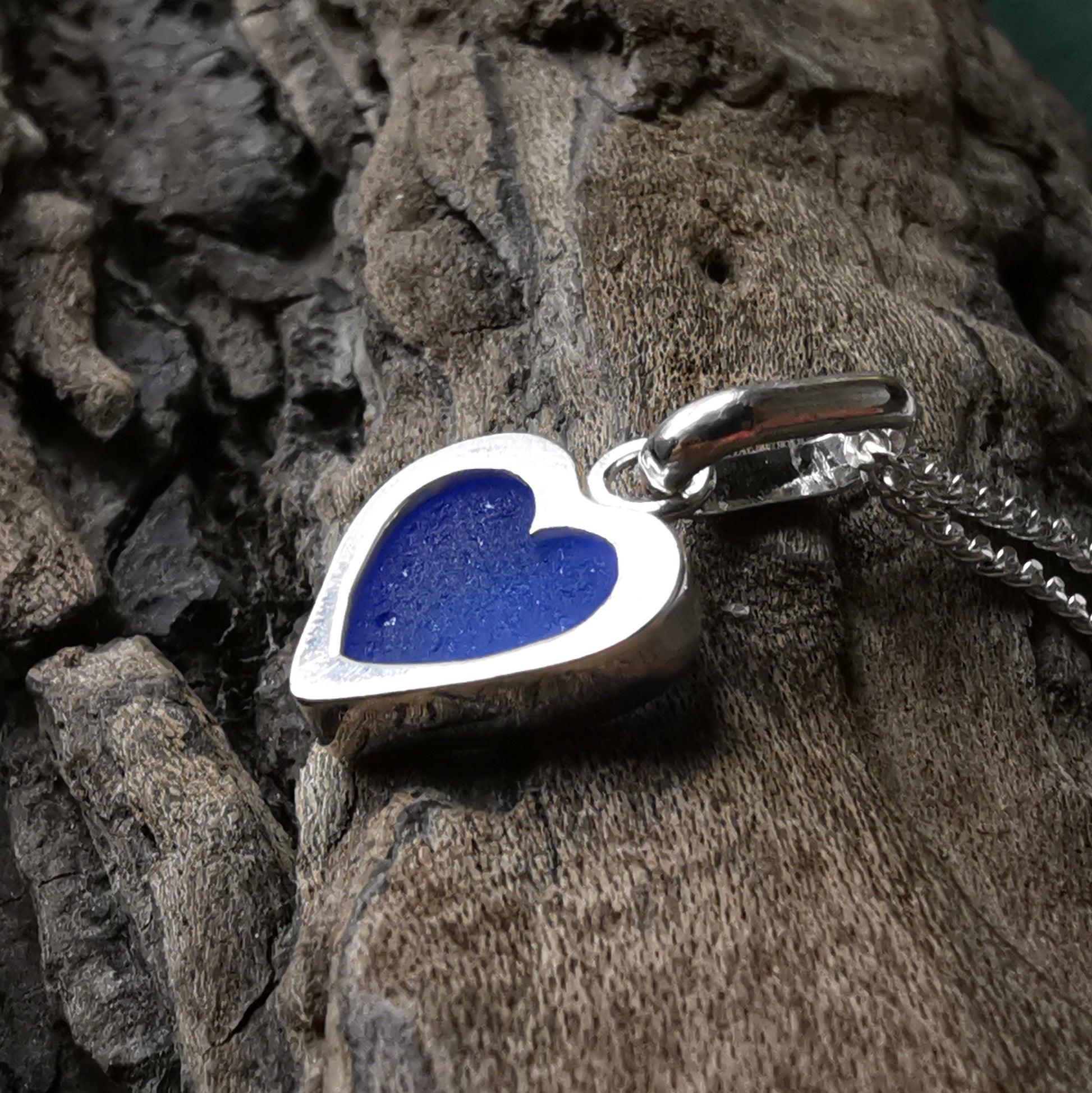 Blue sea glass heart & sterling silver pendant.