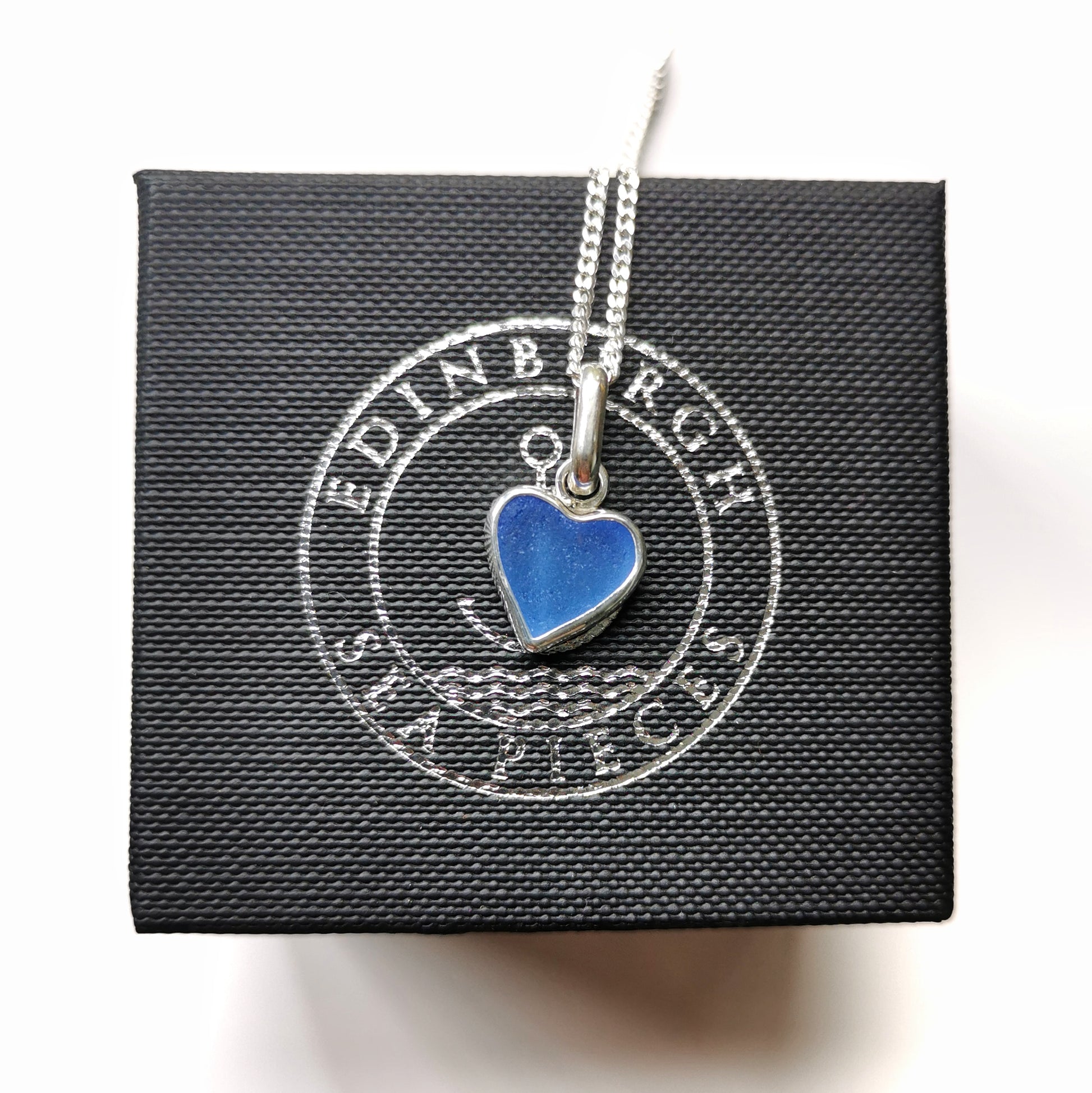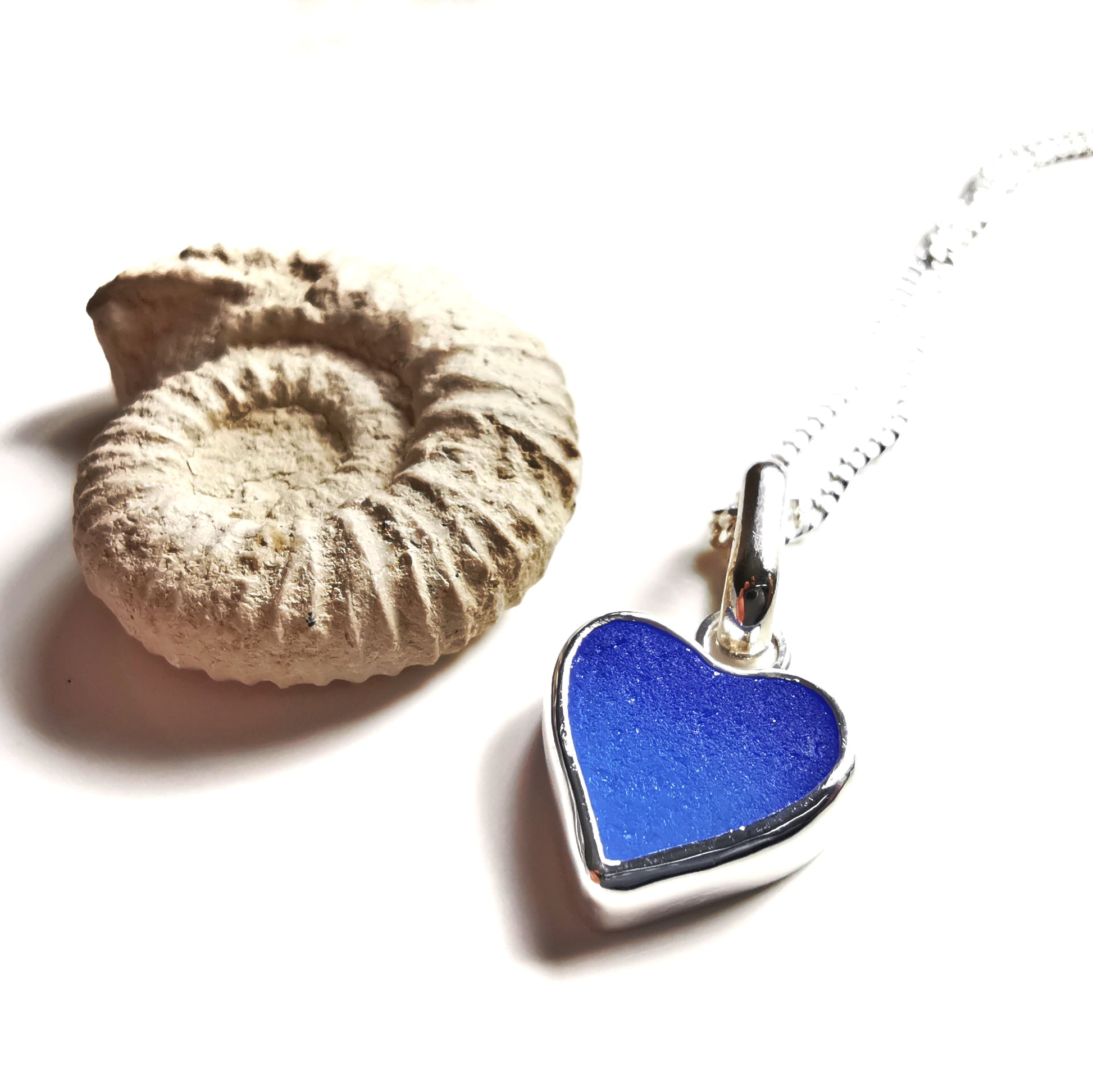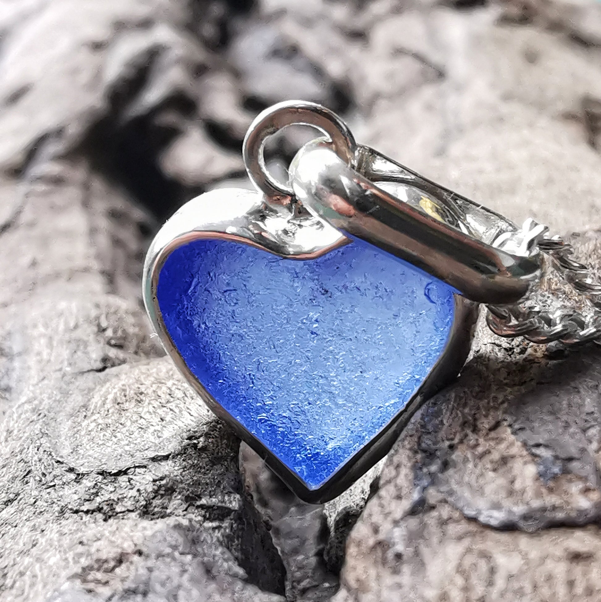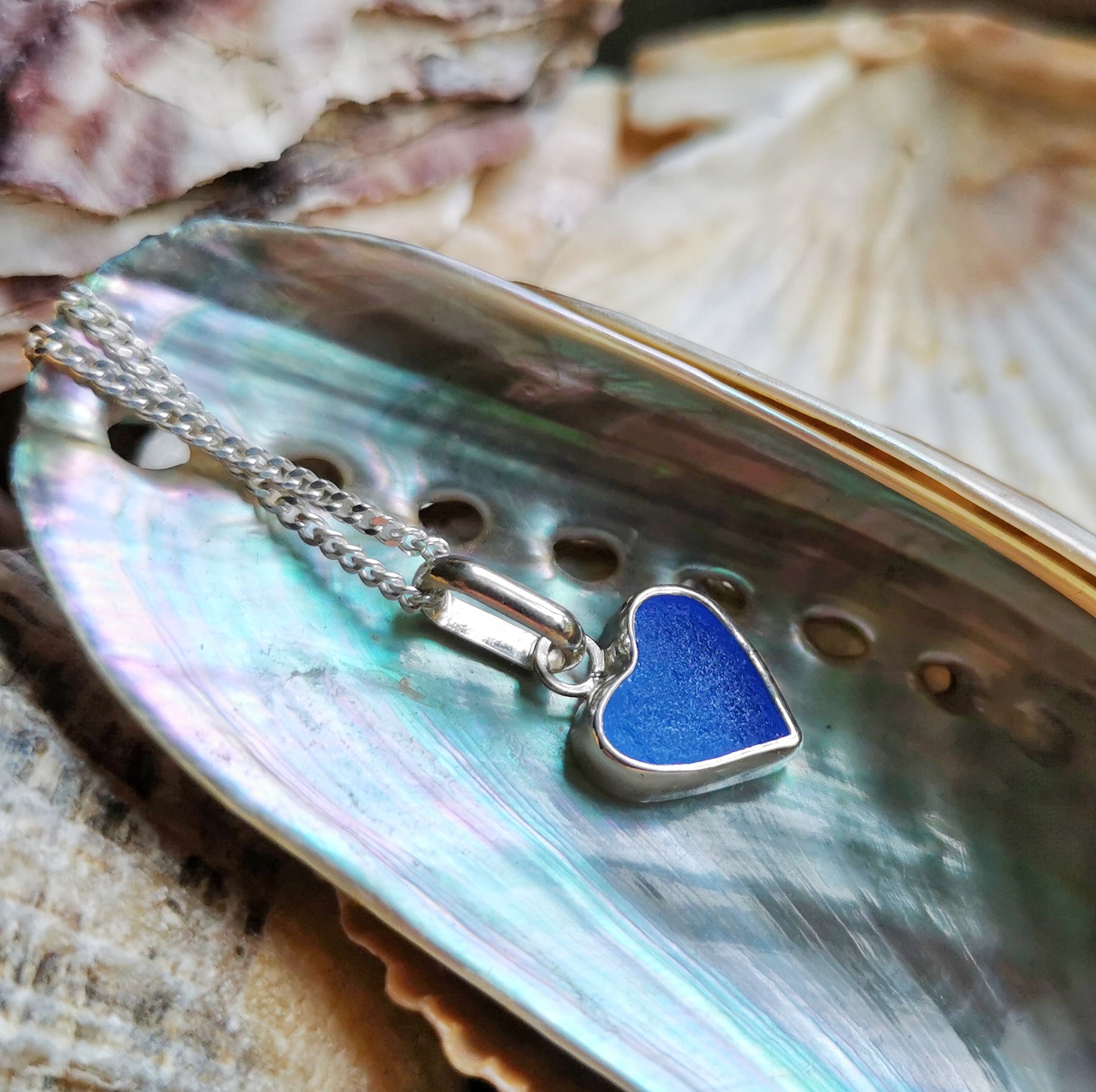 Blue sea glass heart & sterling silver pendant.