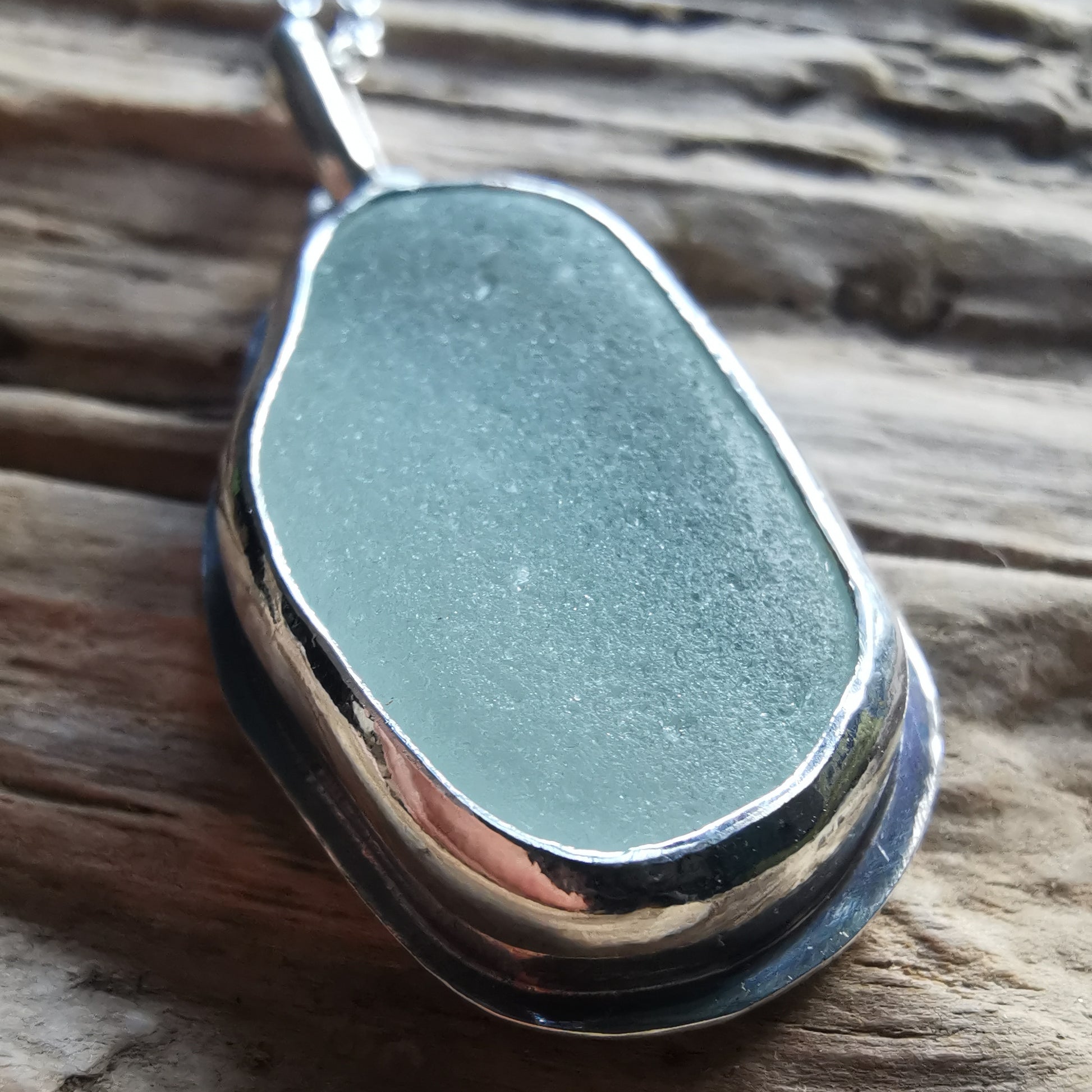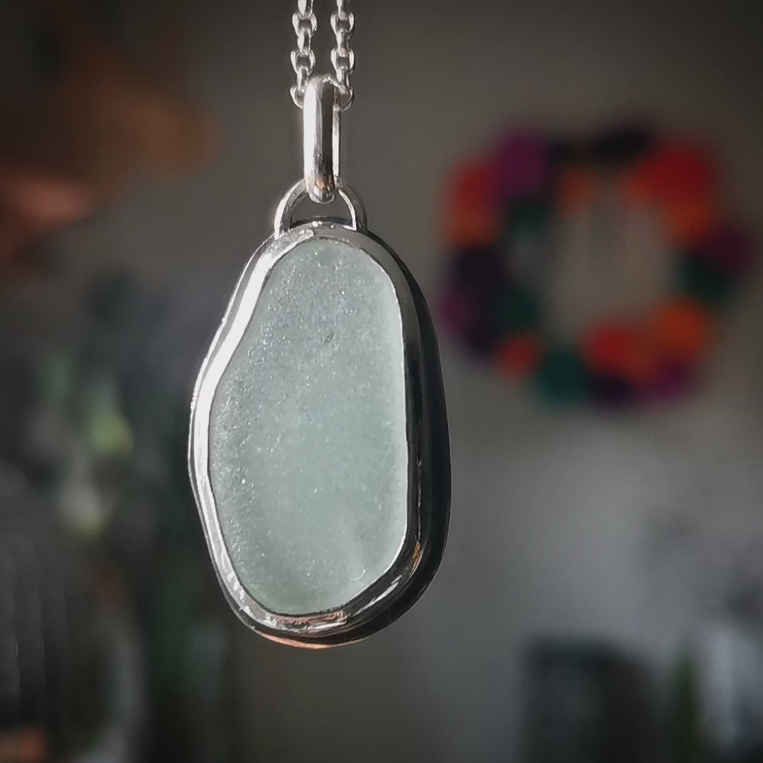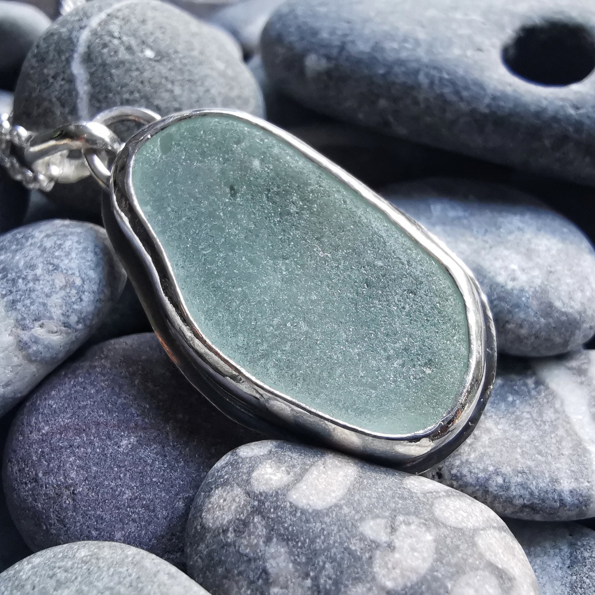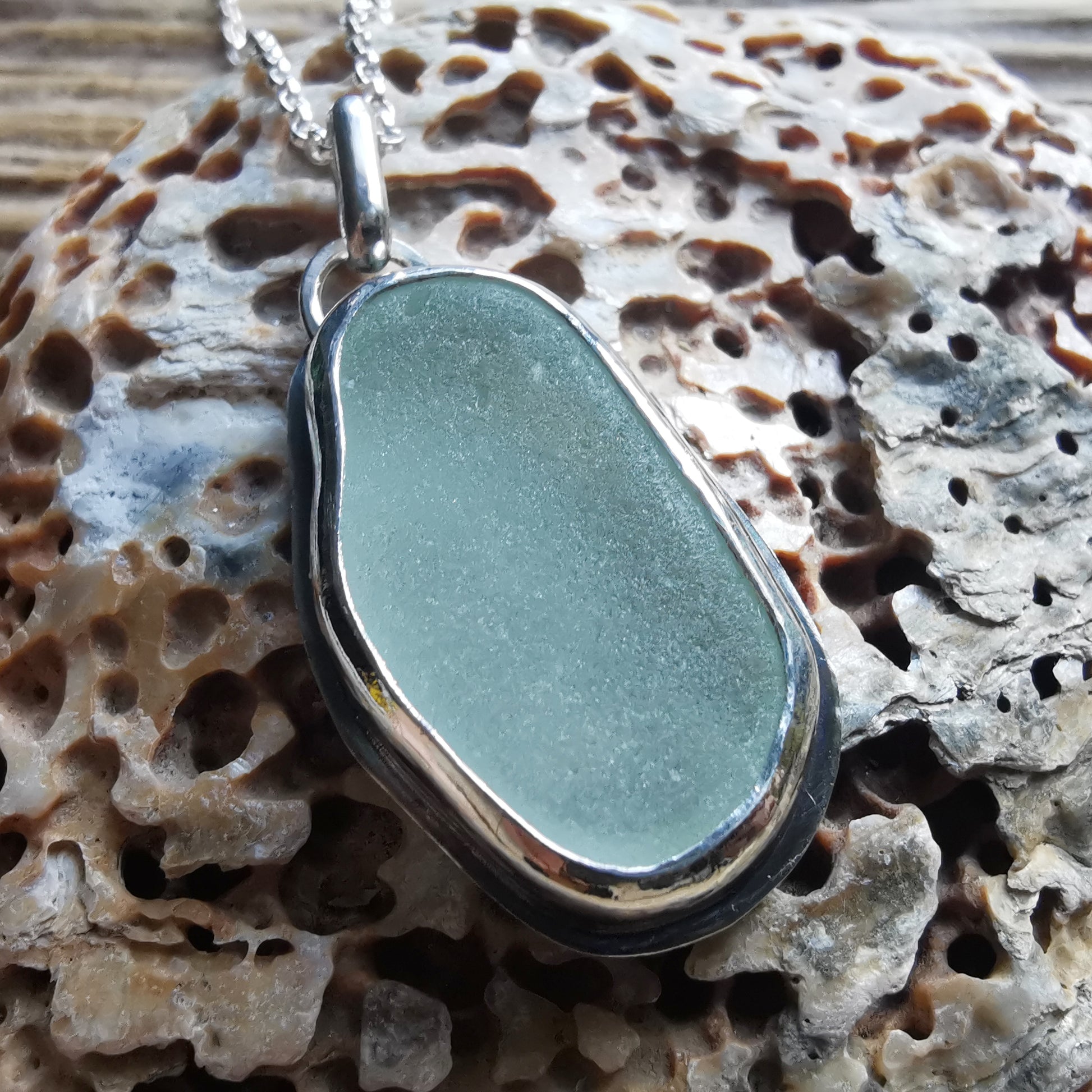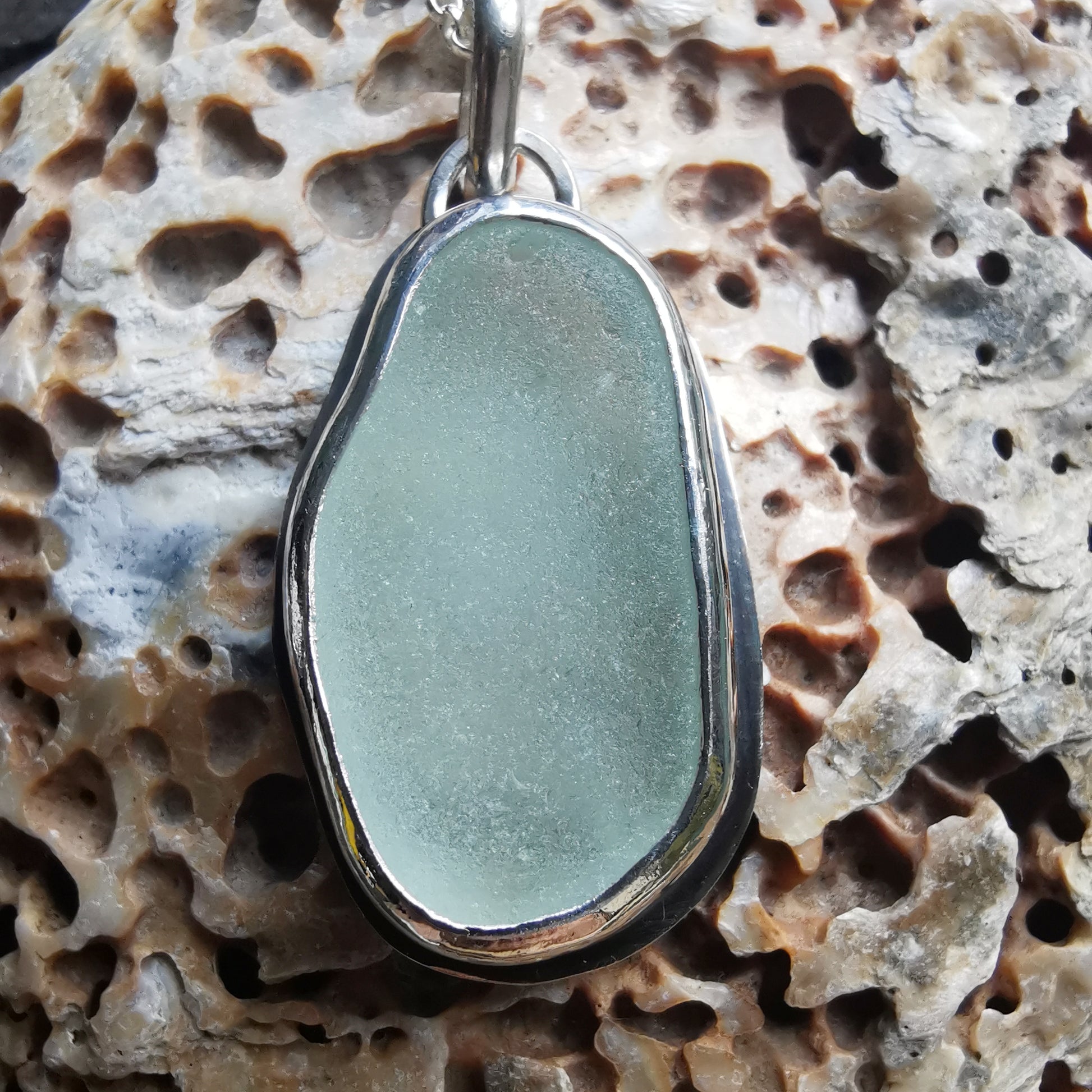 Custom made for Gillian. Seafoam sea glass & sterling silver pendant.