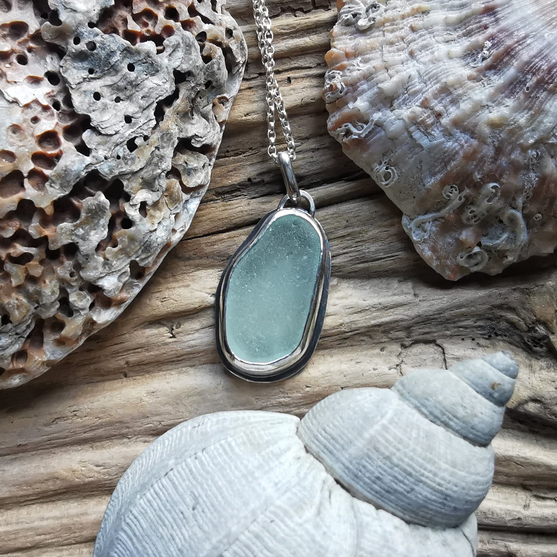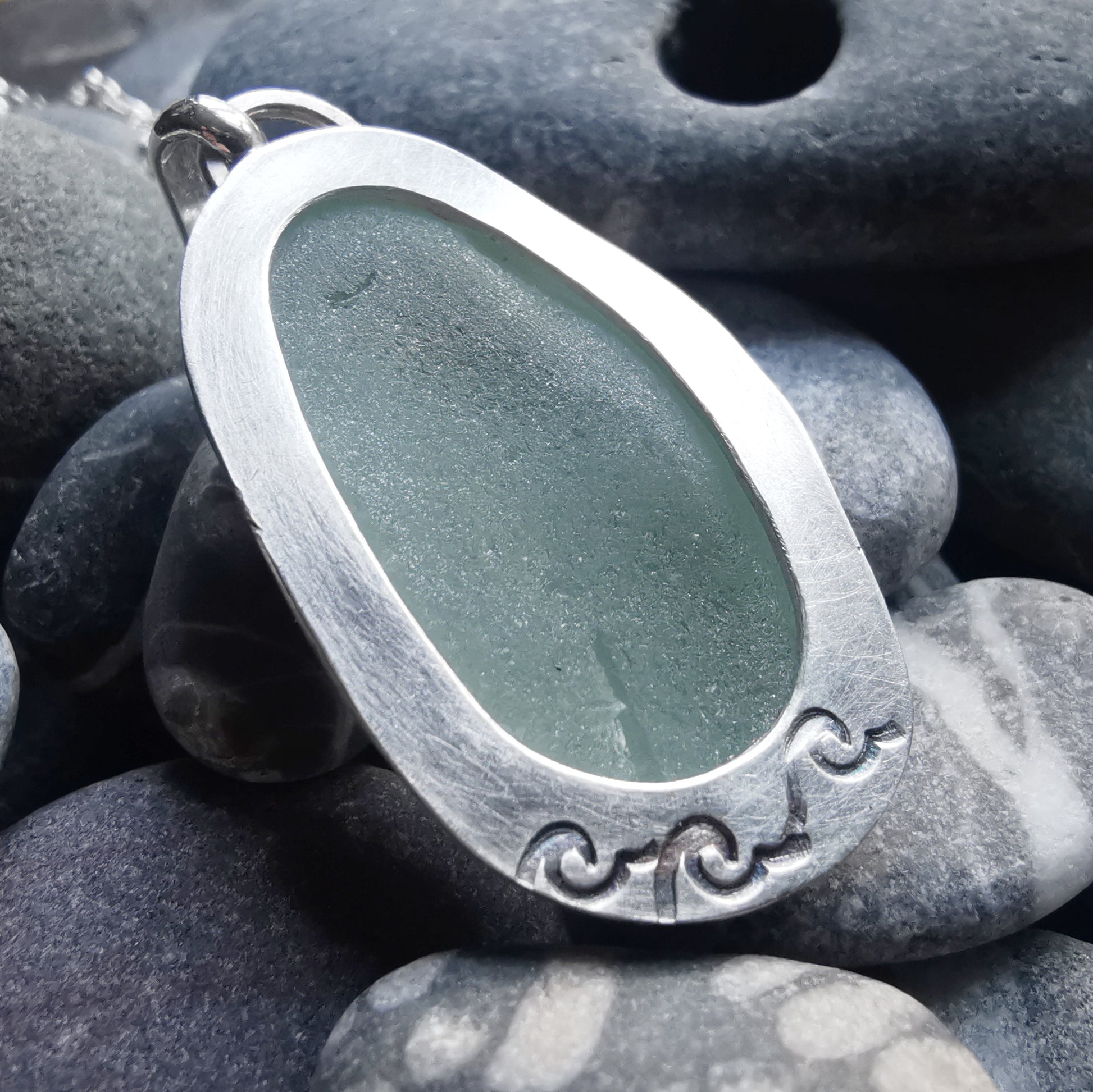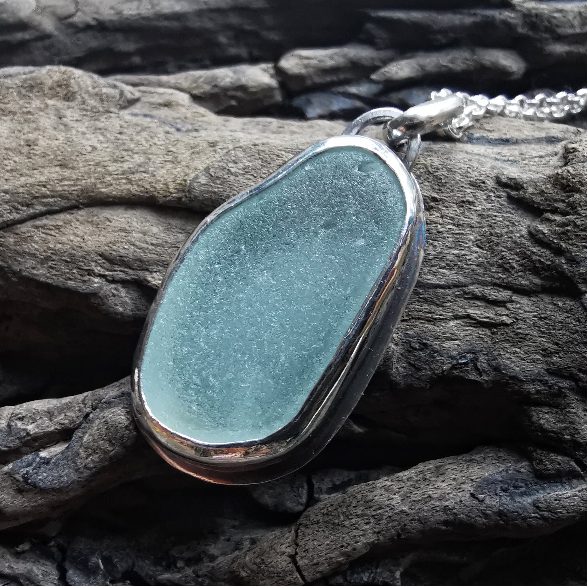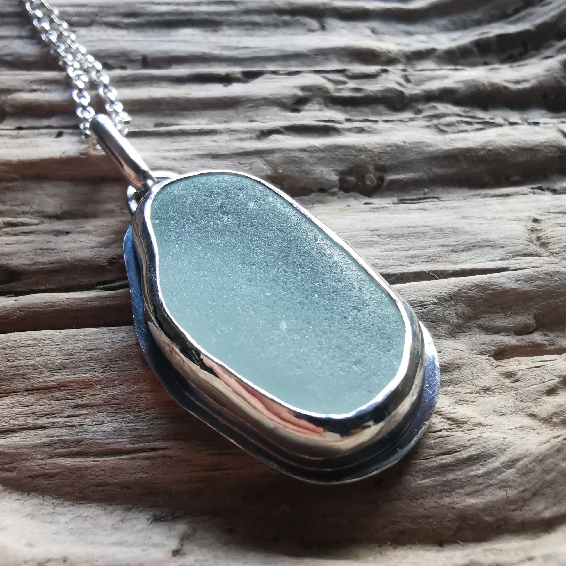 Custom made for Gillian. Seafoam sea glass & sterling silver pendant.