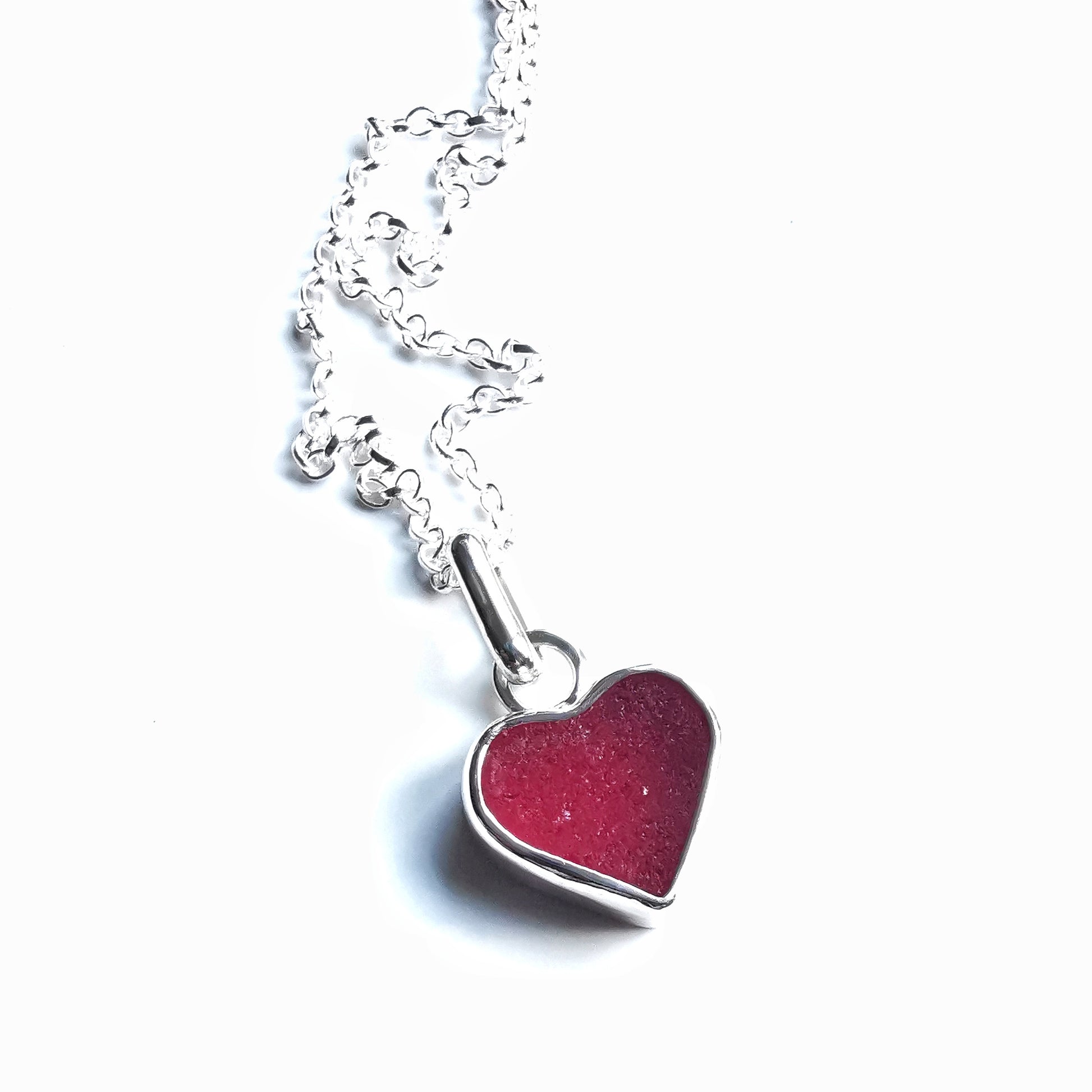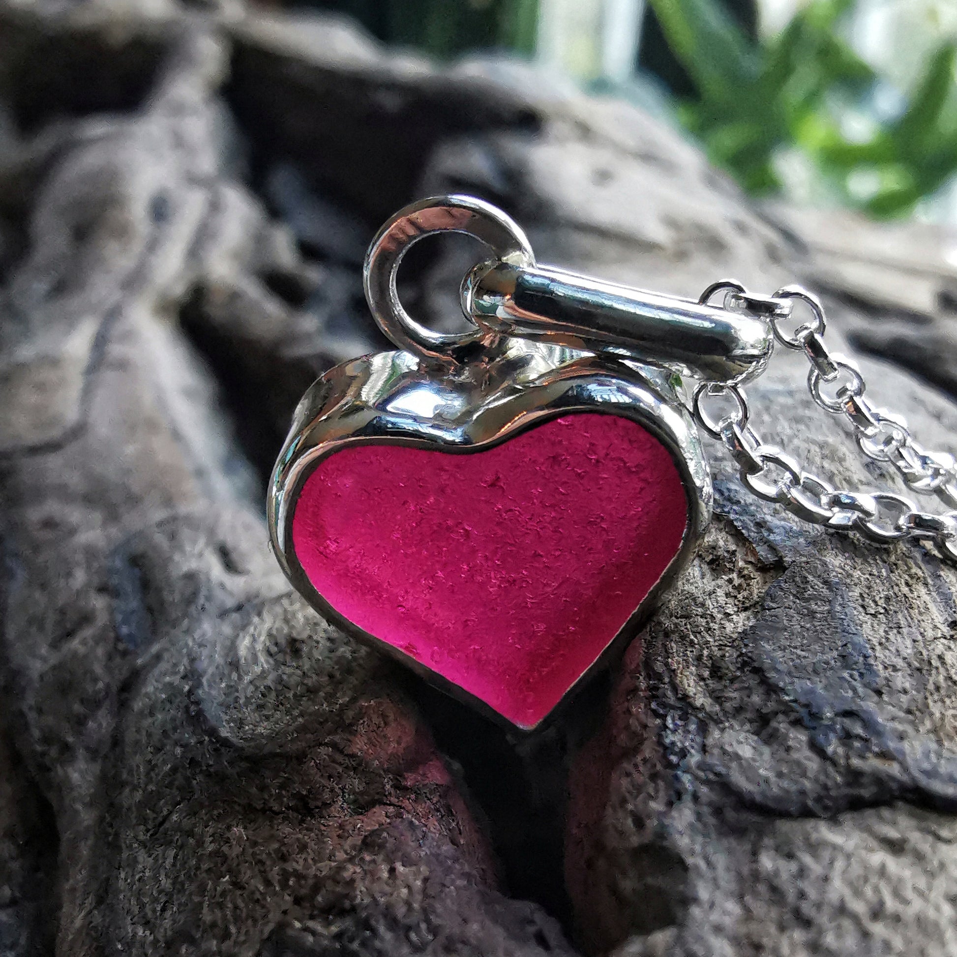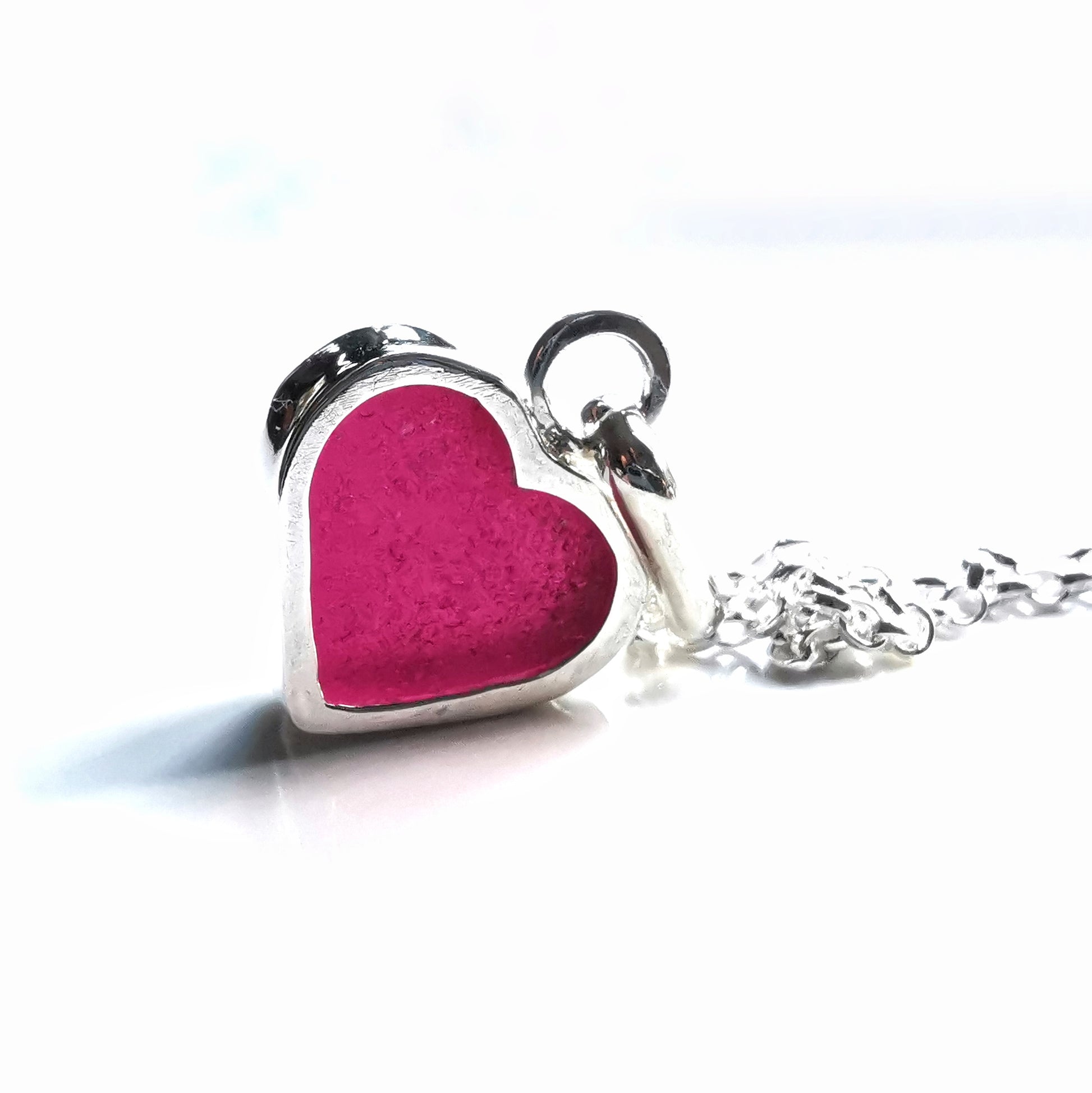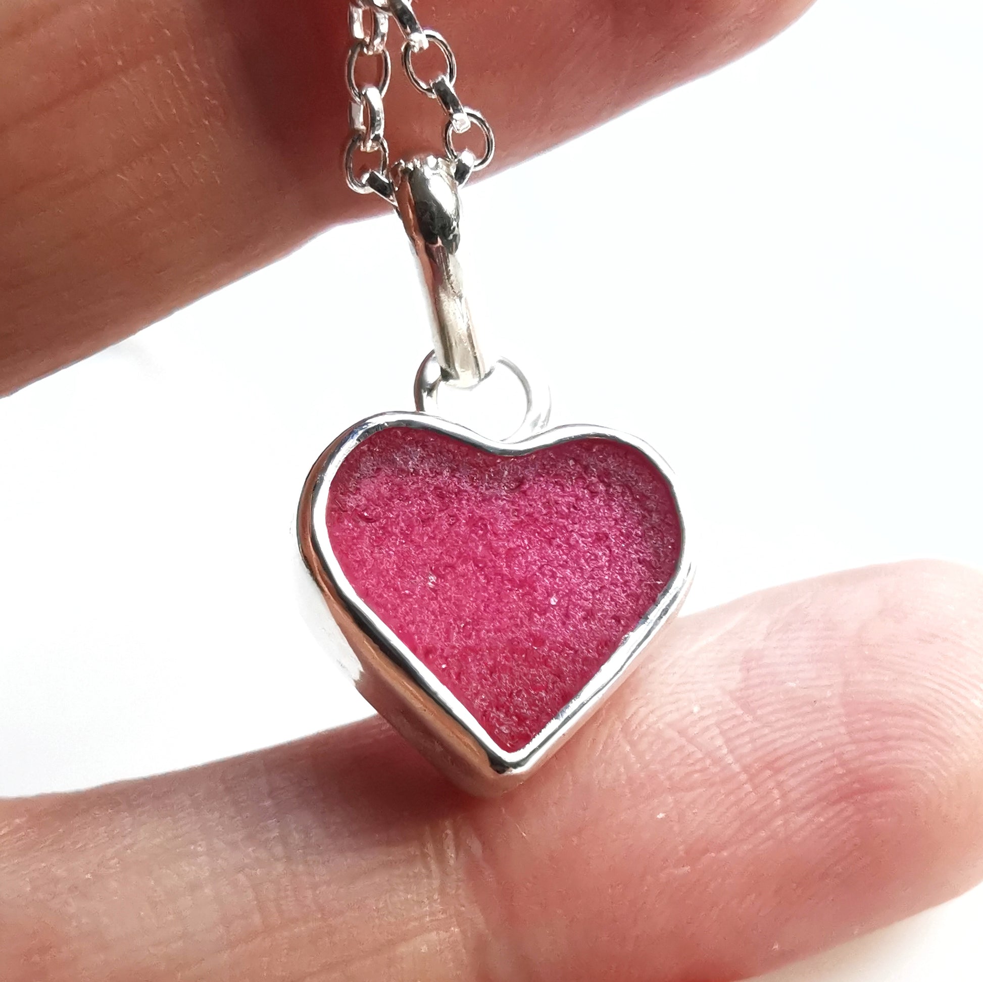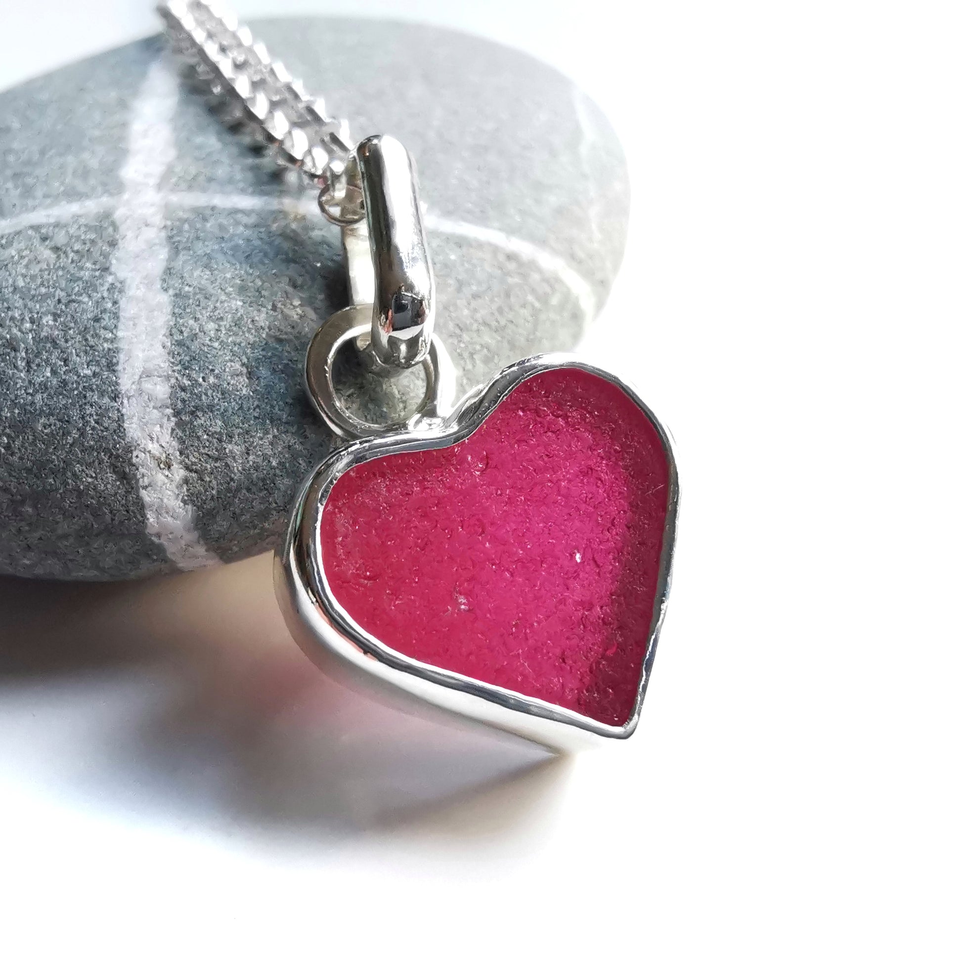 One of a kind pendant composed with genuine pink sea glass found by me on Edinburgh's beach. The sea glass is set in backless silver bezel, the chain is sterling silver. I've shaped this sea glass piece myself, you can see how it looked before on the last photo.