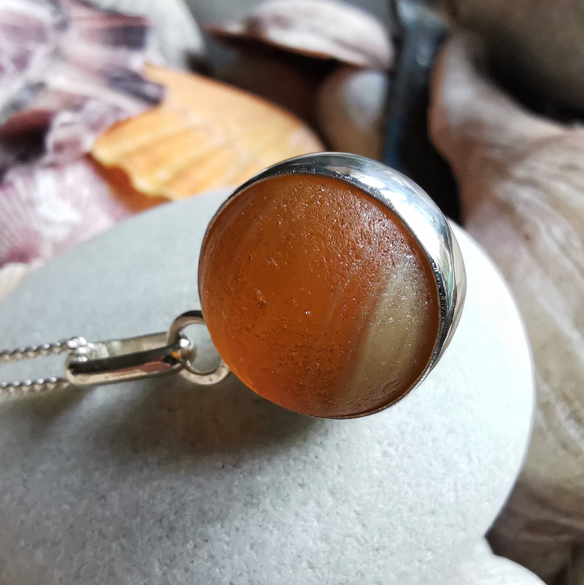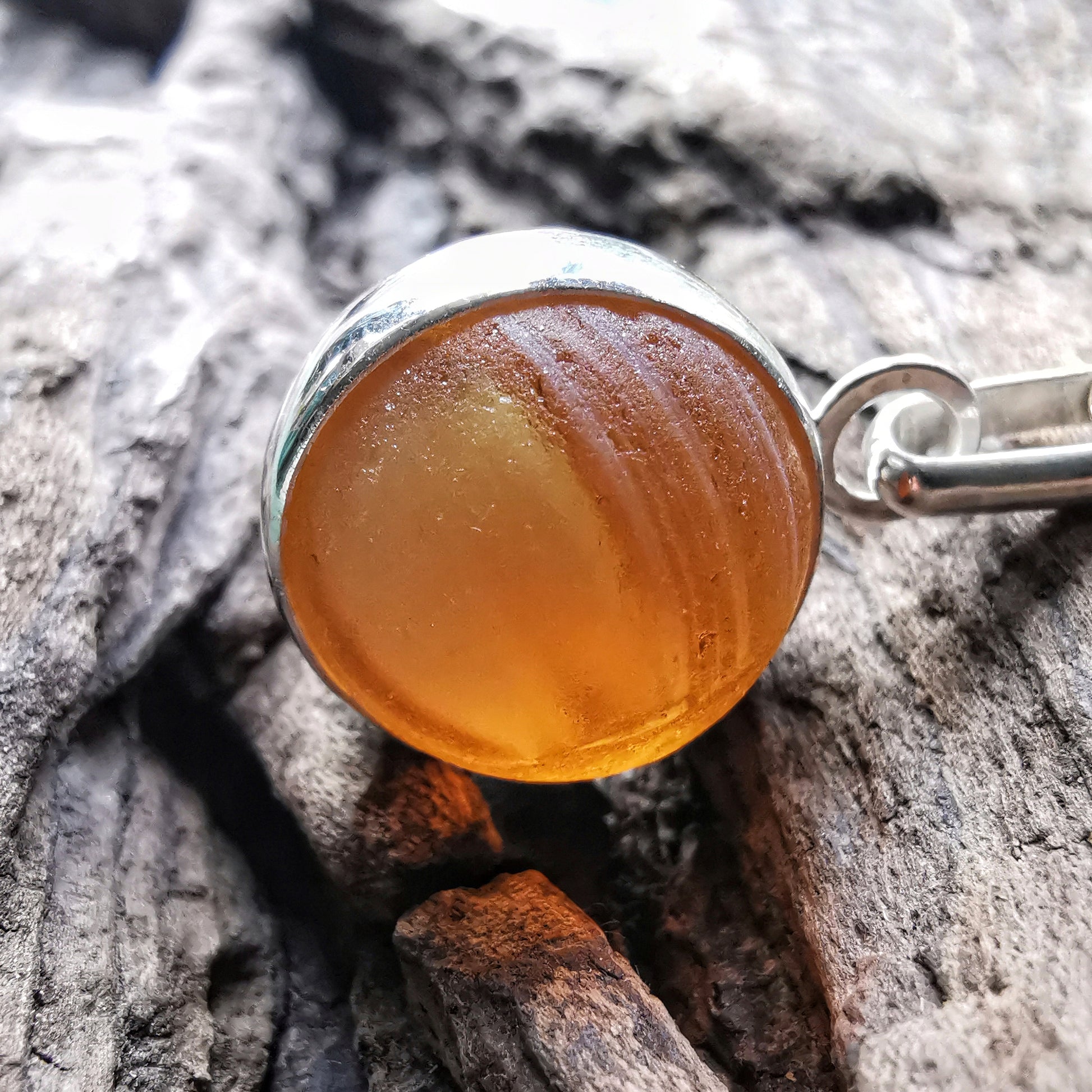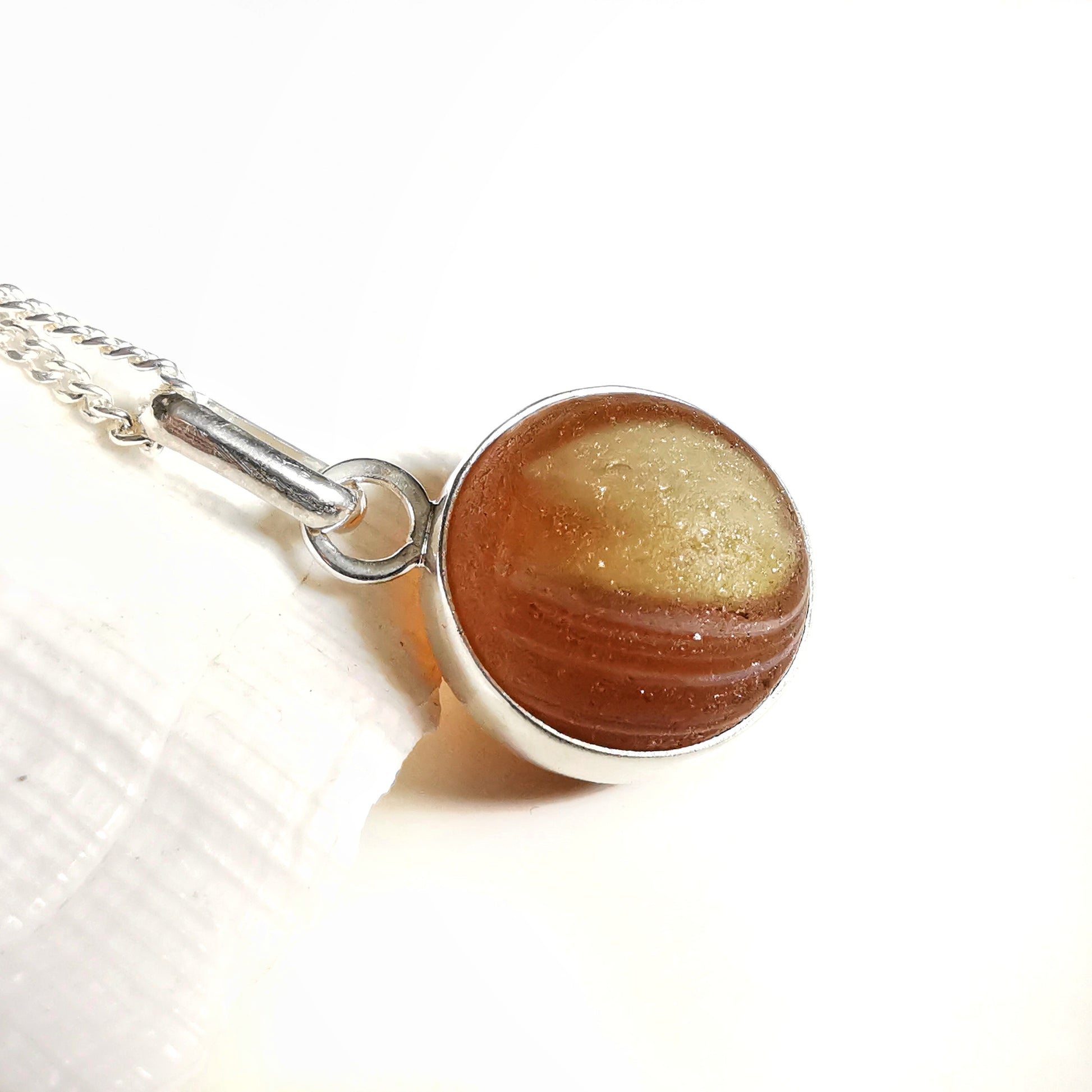 Genuine Scottish brown sea glass marble & sterling silver pendant.