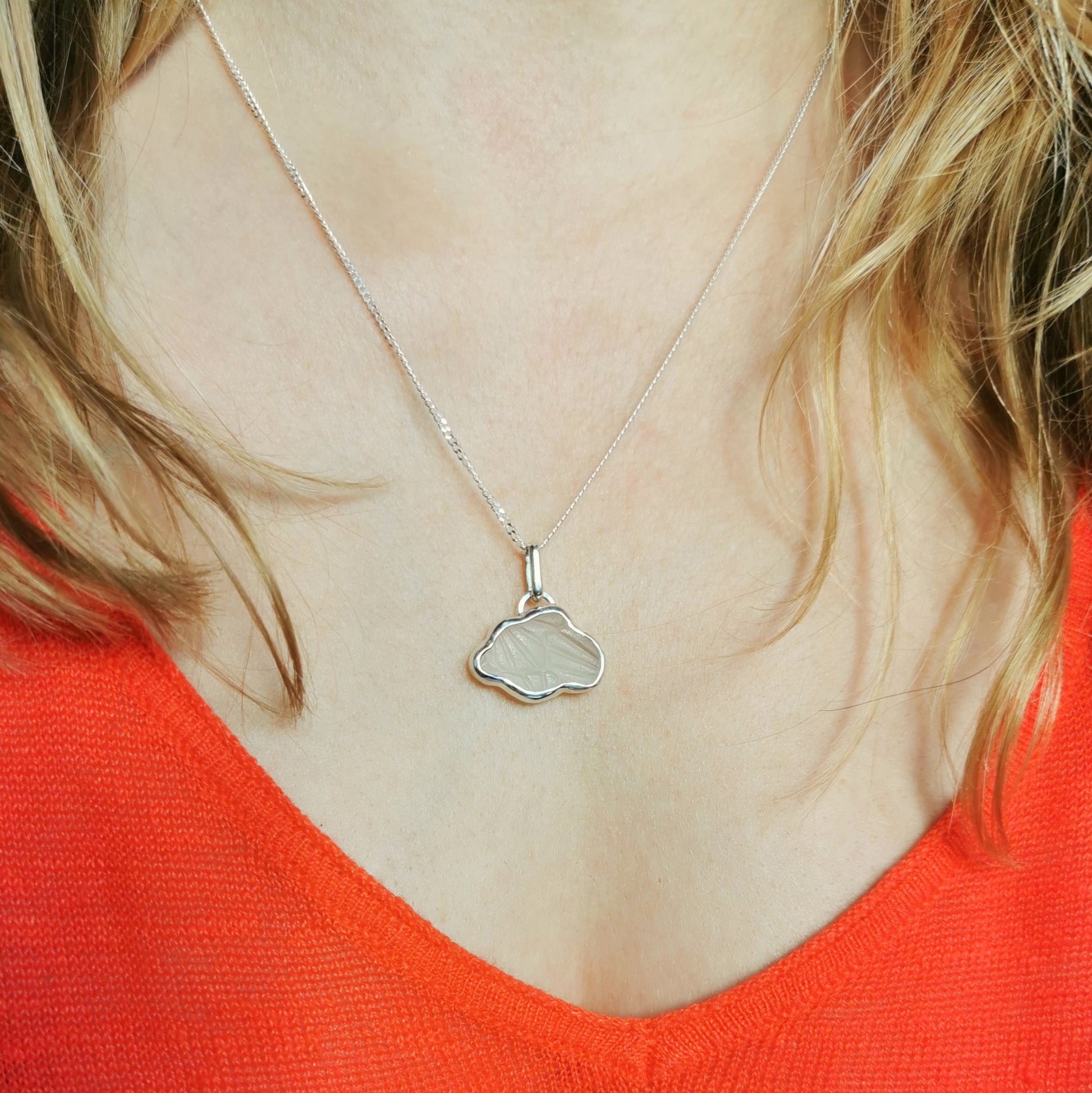 Genuine Scottish clear sea glass cloud & sterling silver pendant.