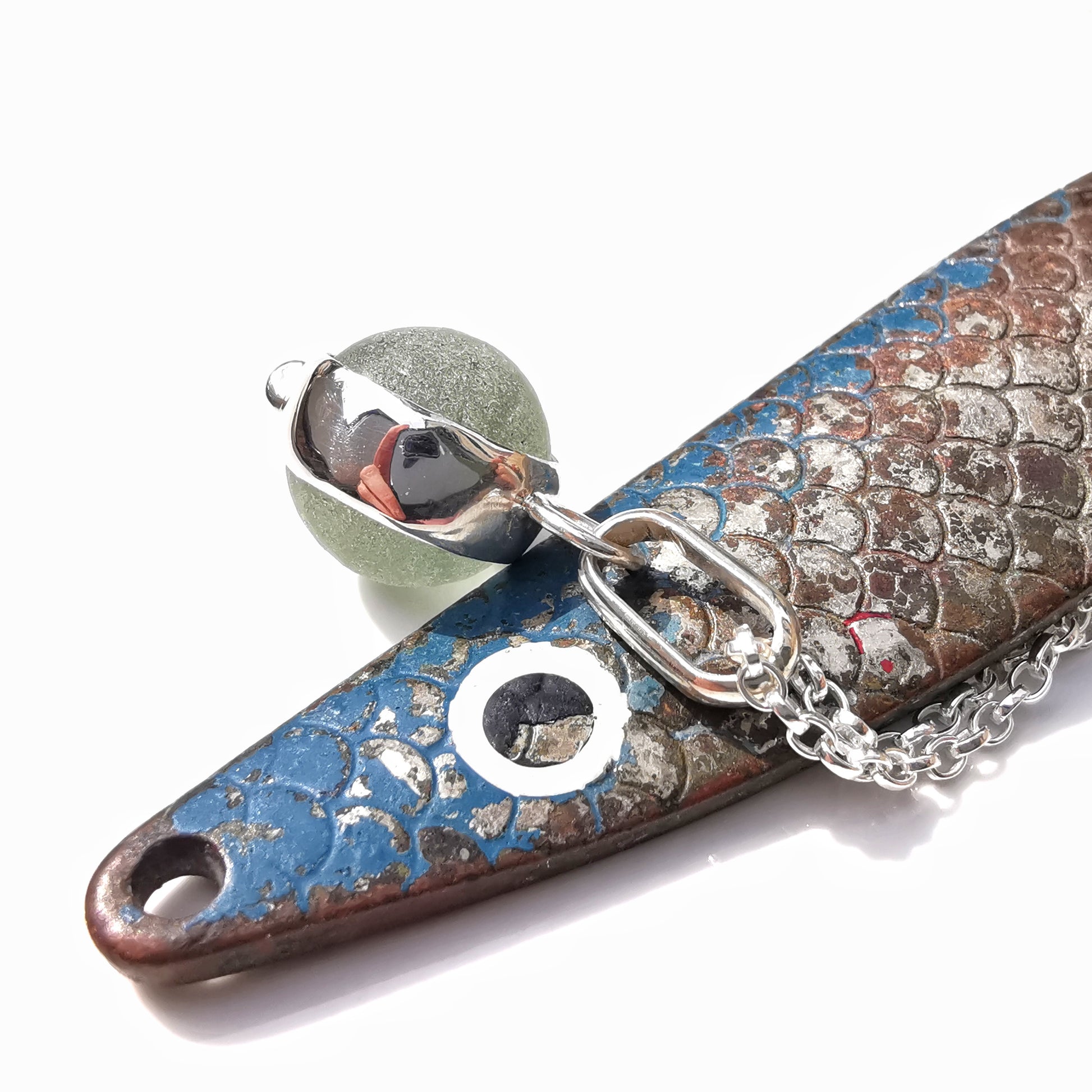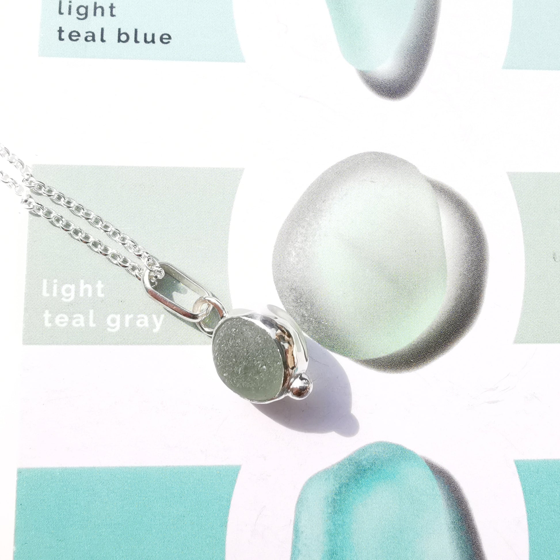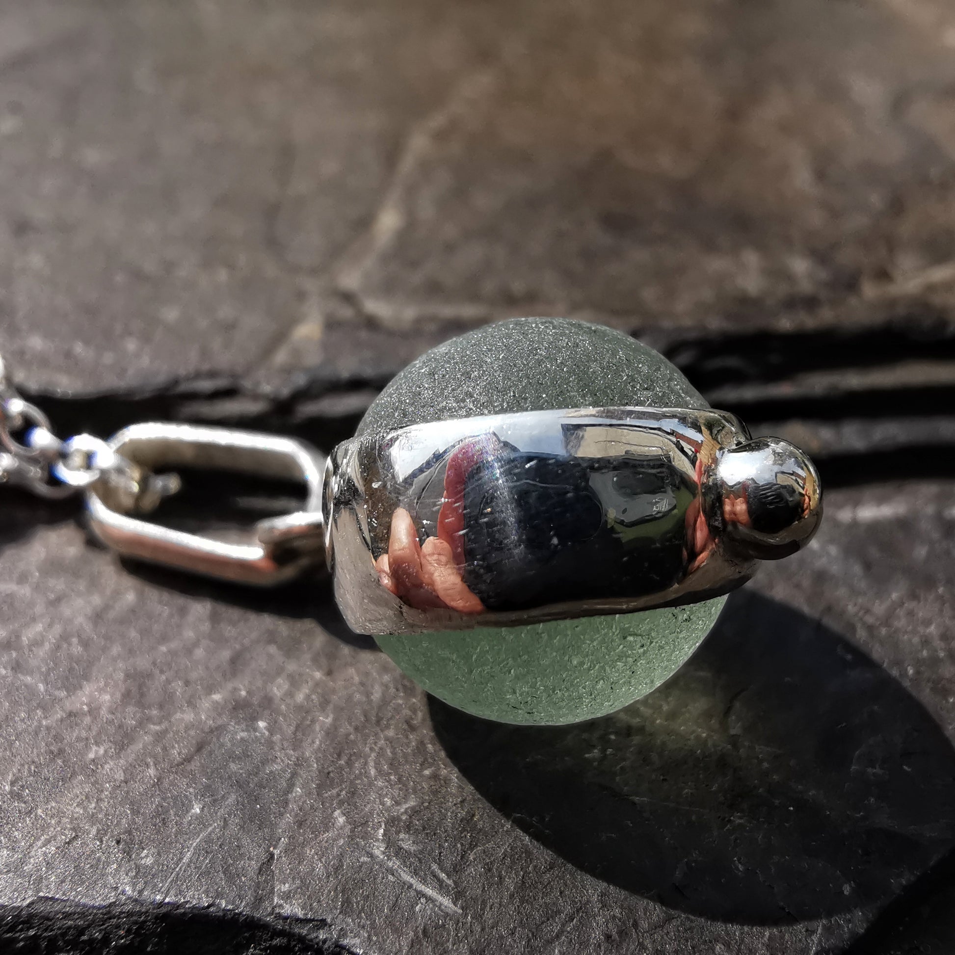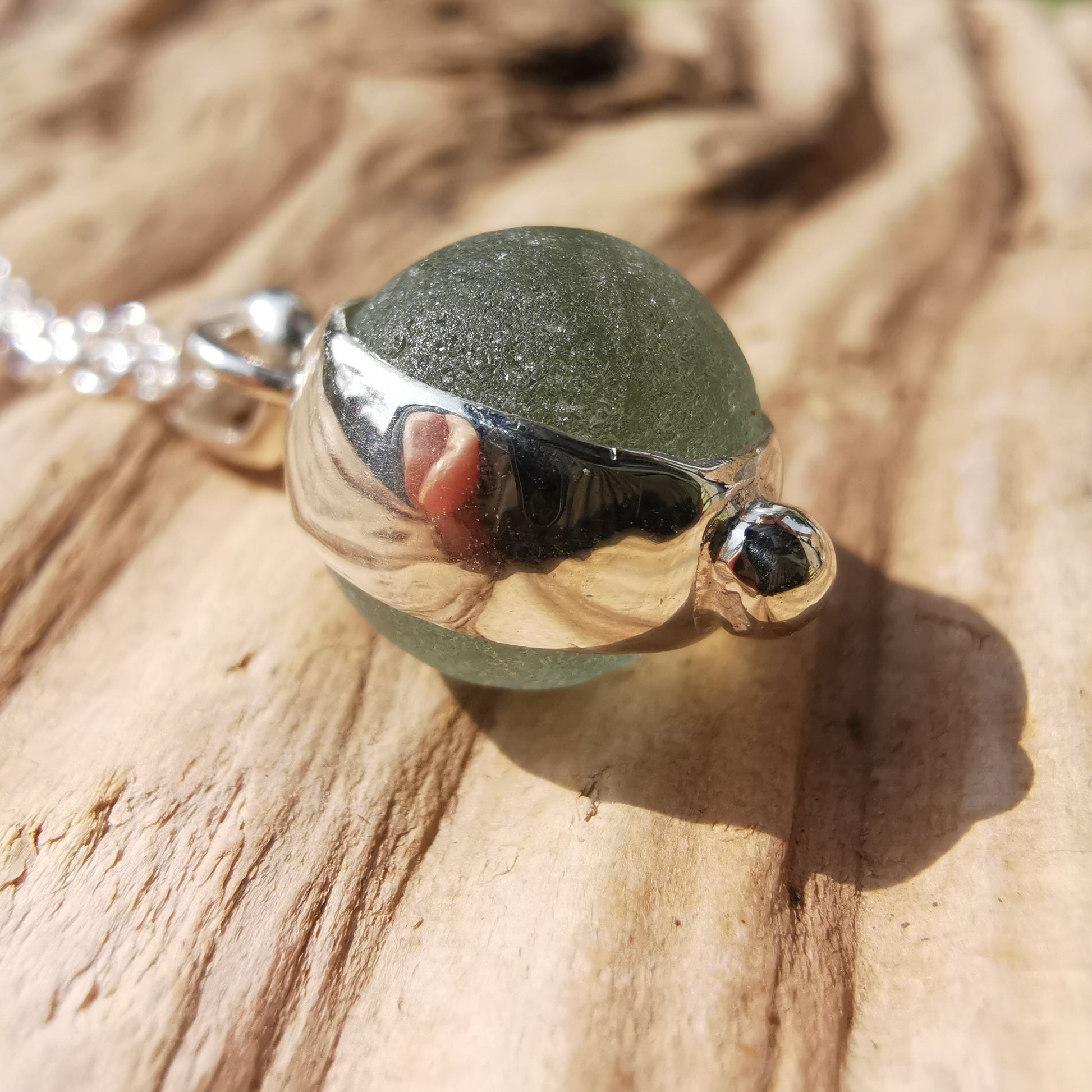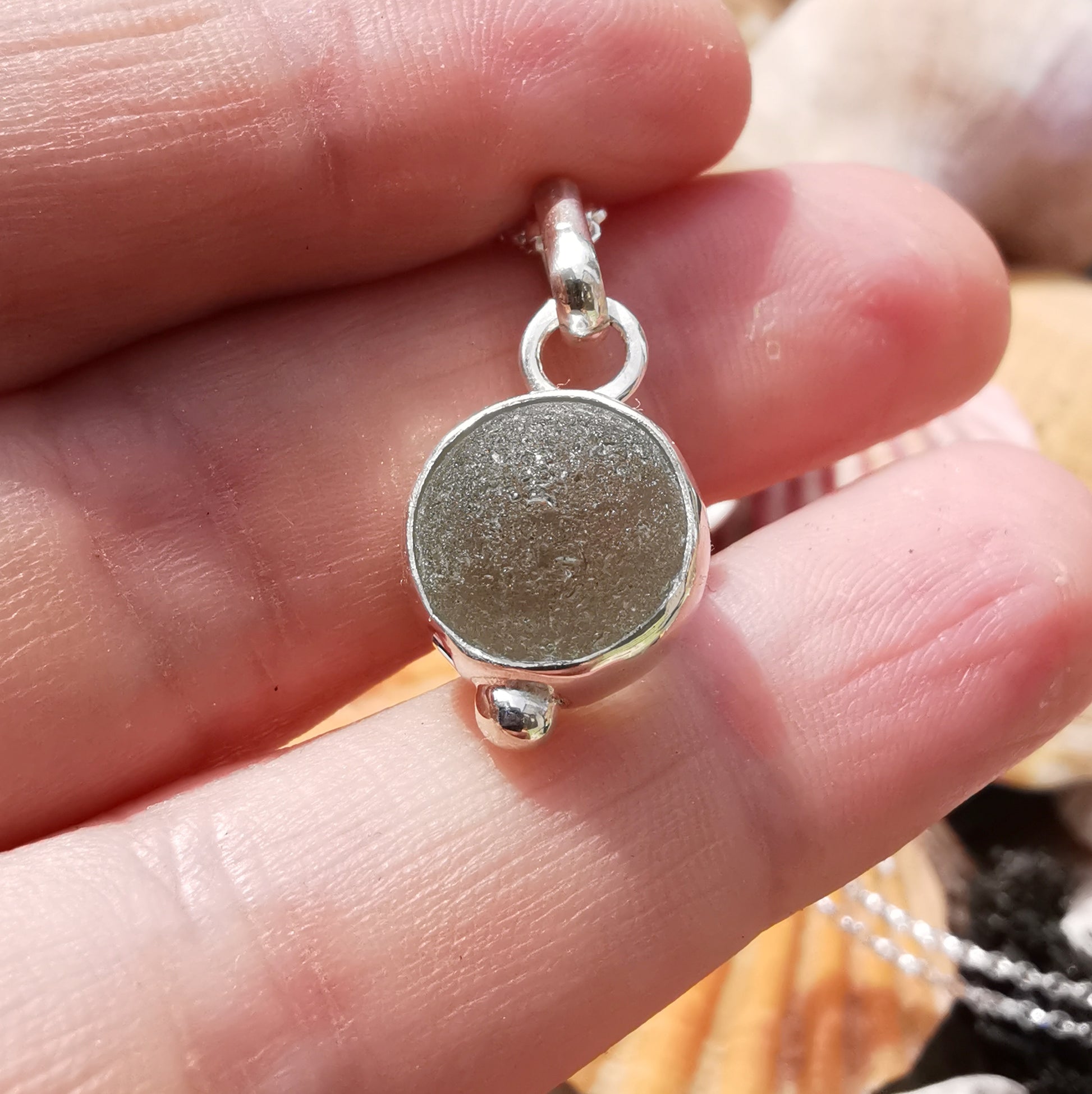 Genuine tiny Scottish Codd sea glass marble & sterling silver pendant.
