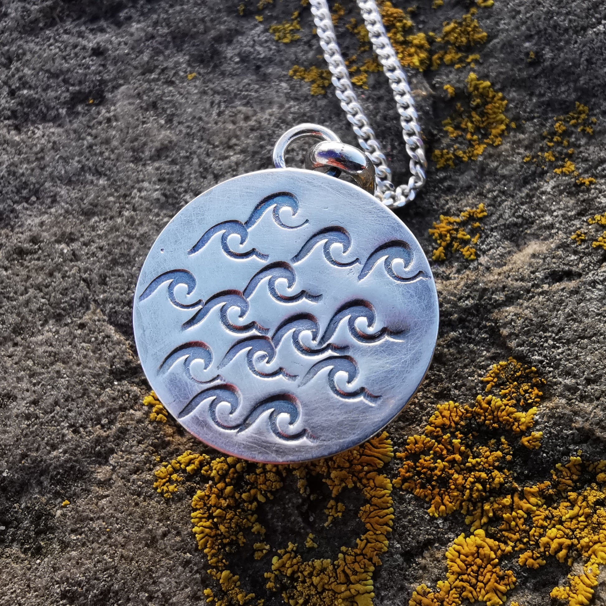 Bezel is made of fine silver, chain is sterling silver.