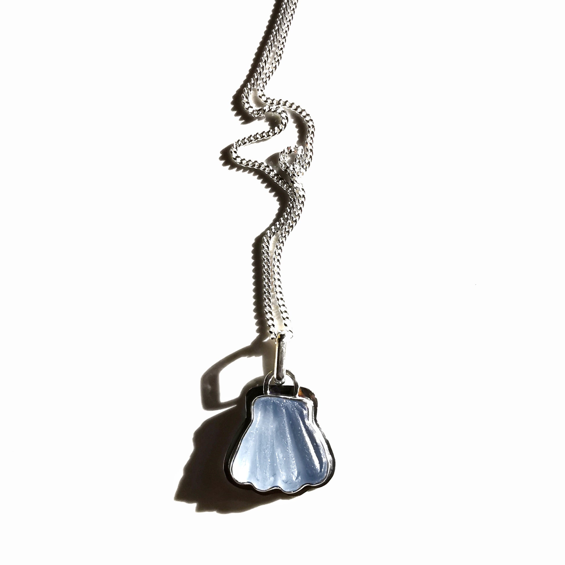 Light blue sea glass shell & sterling silver pendant.
