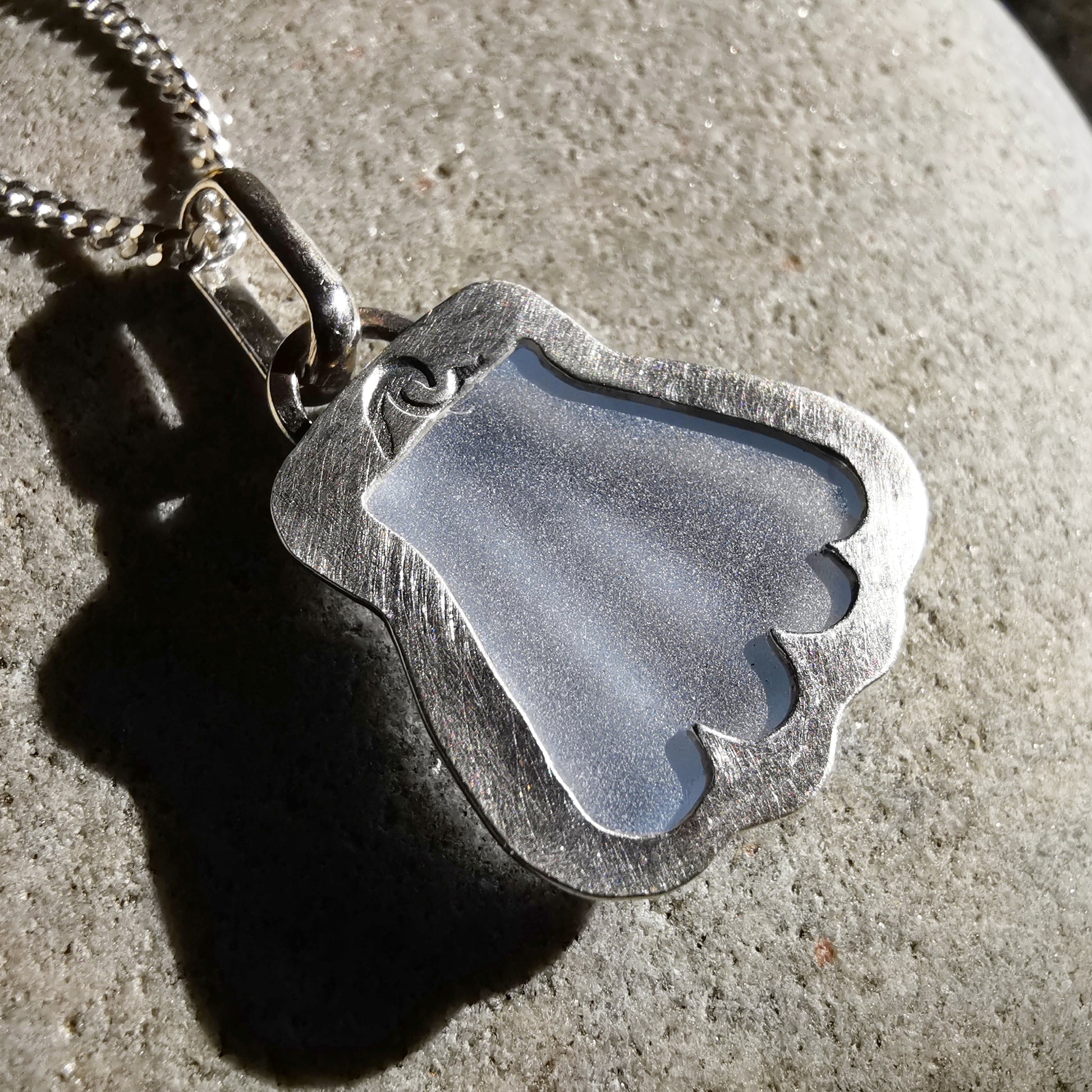 Bezel is made of fine silver, chain is sterling silver.