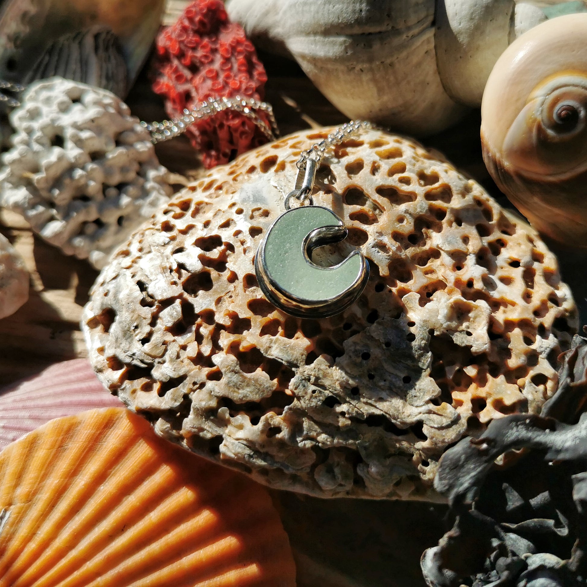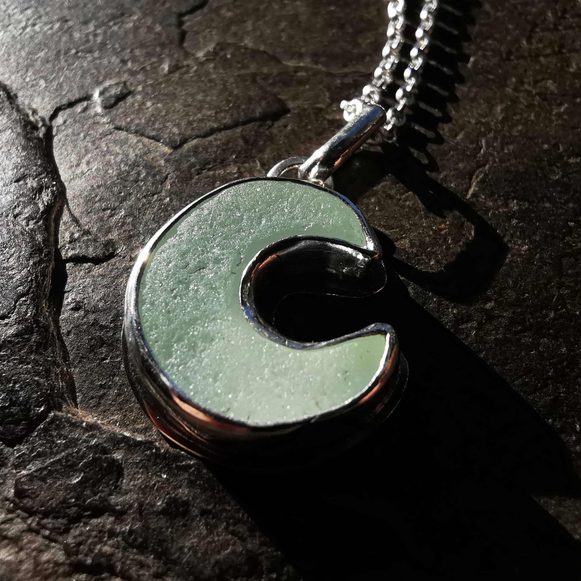 One of a kind pendant composed with opalescent sea glass, found by me in Seaham.