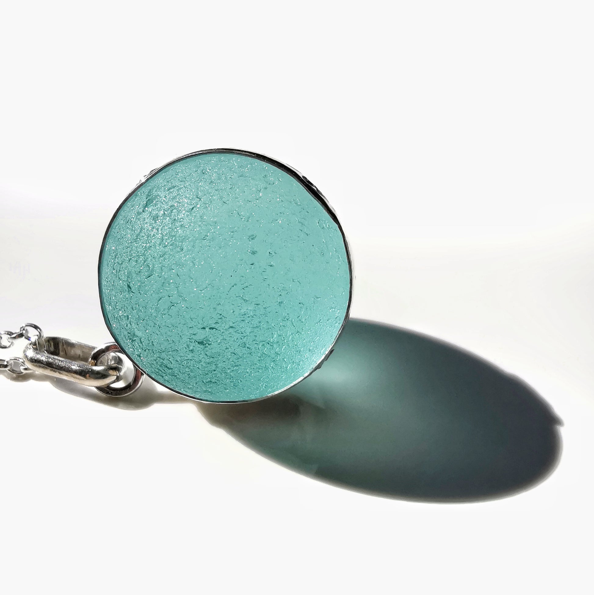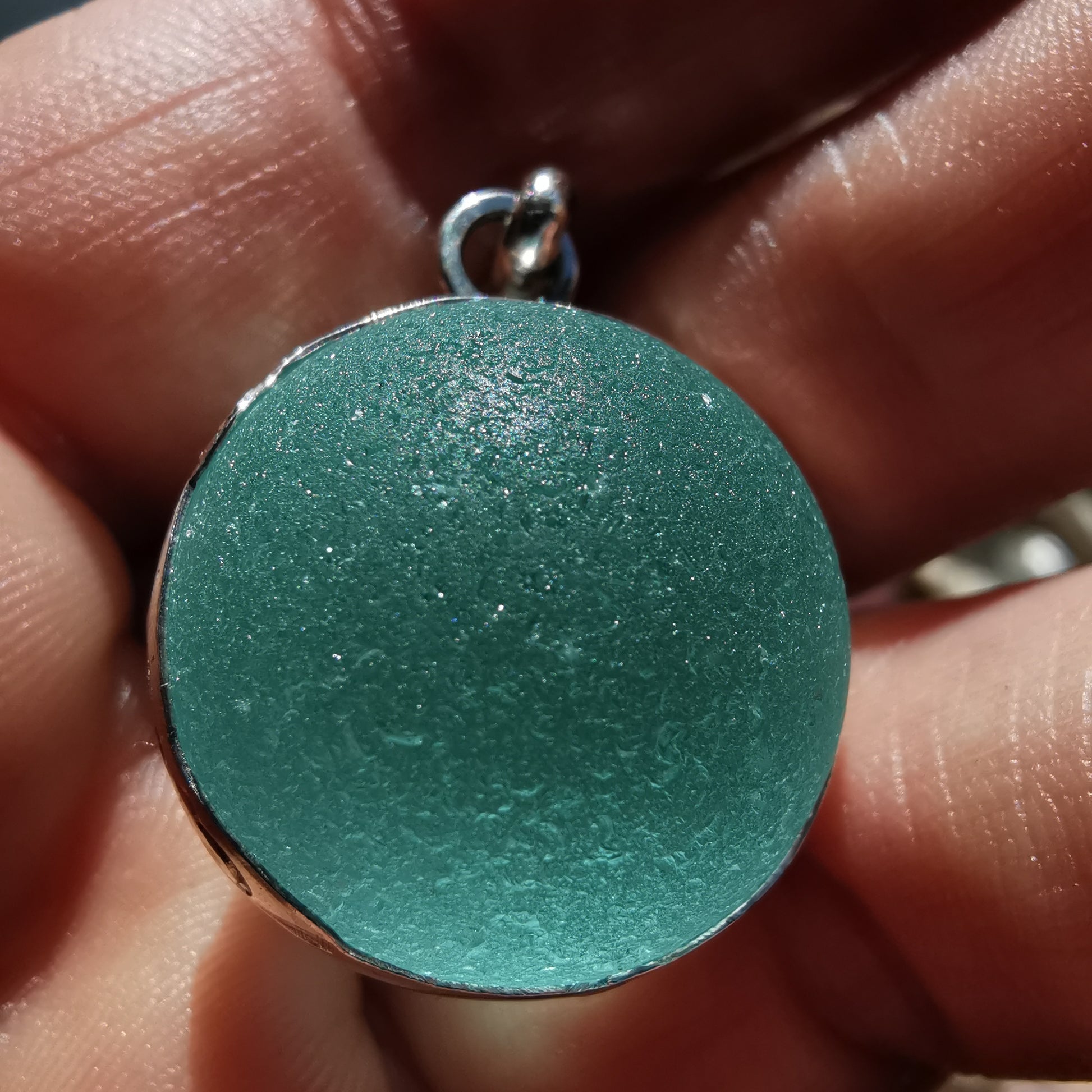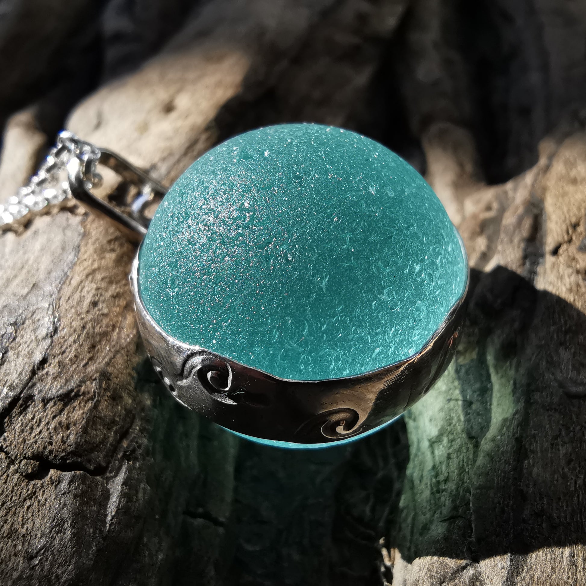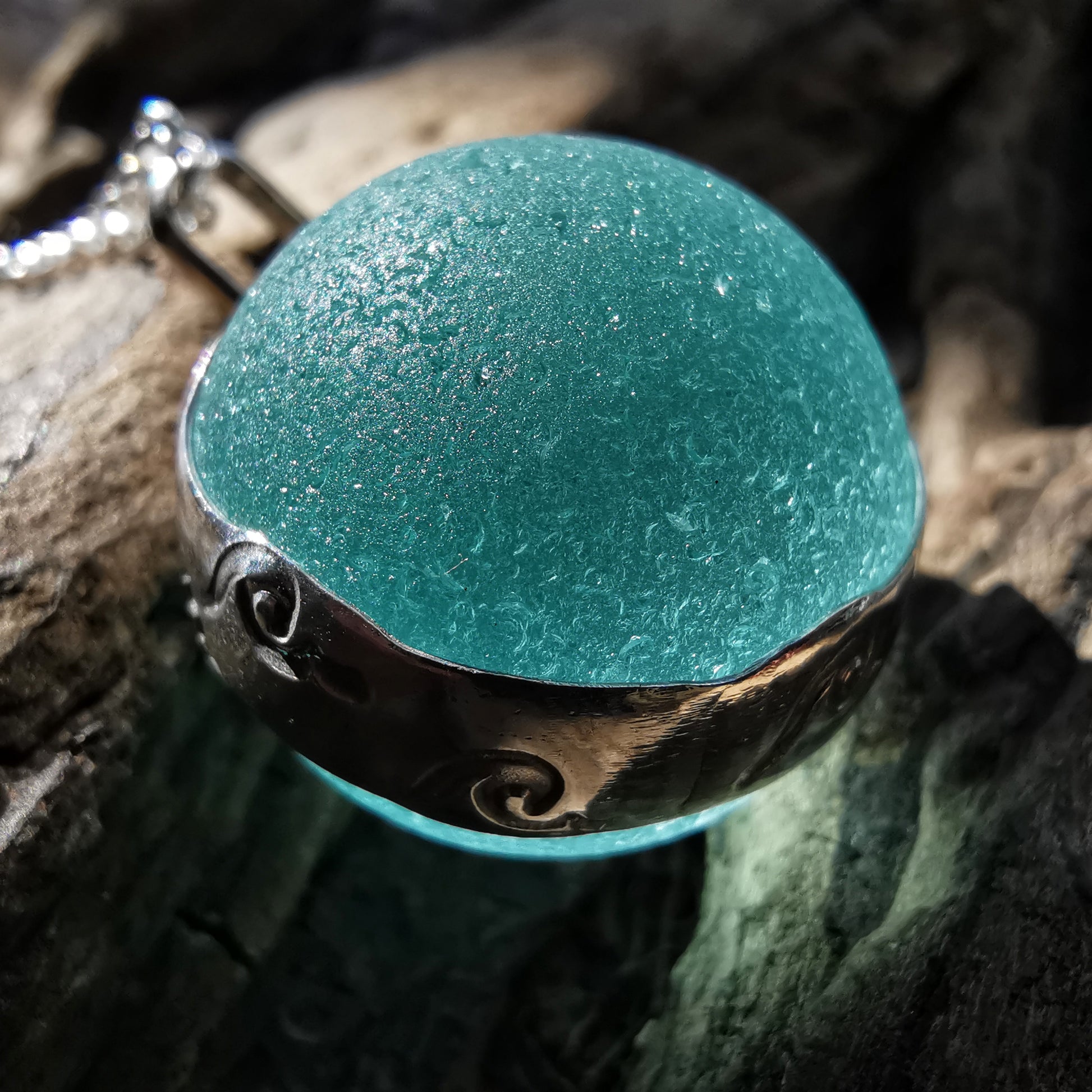 Reserved. Large Scottish turquoise Codd sea glass marble& sterling silver pendant.