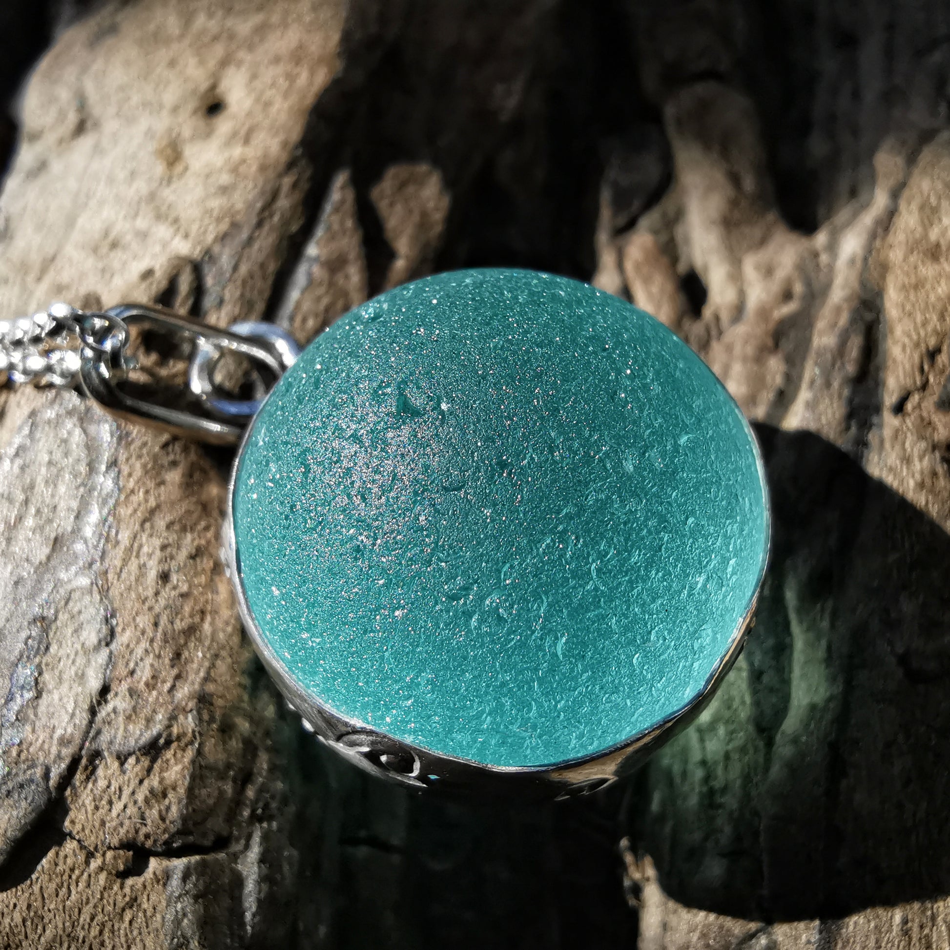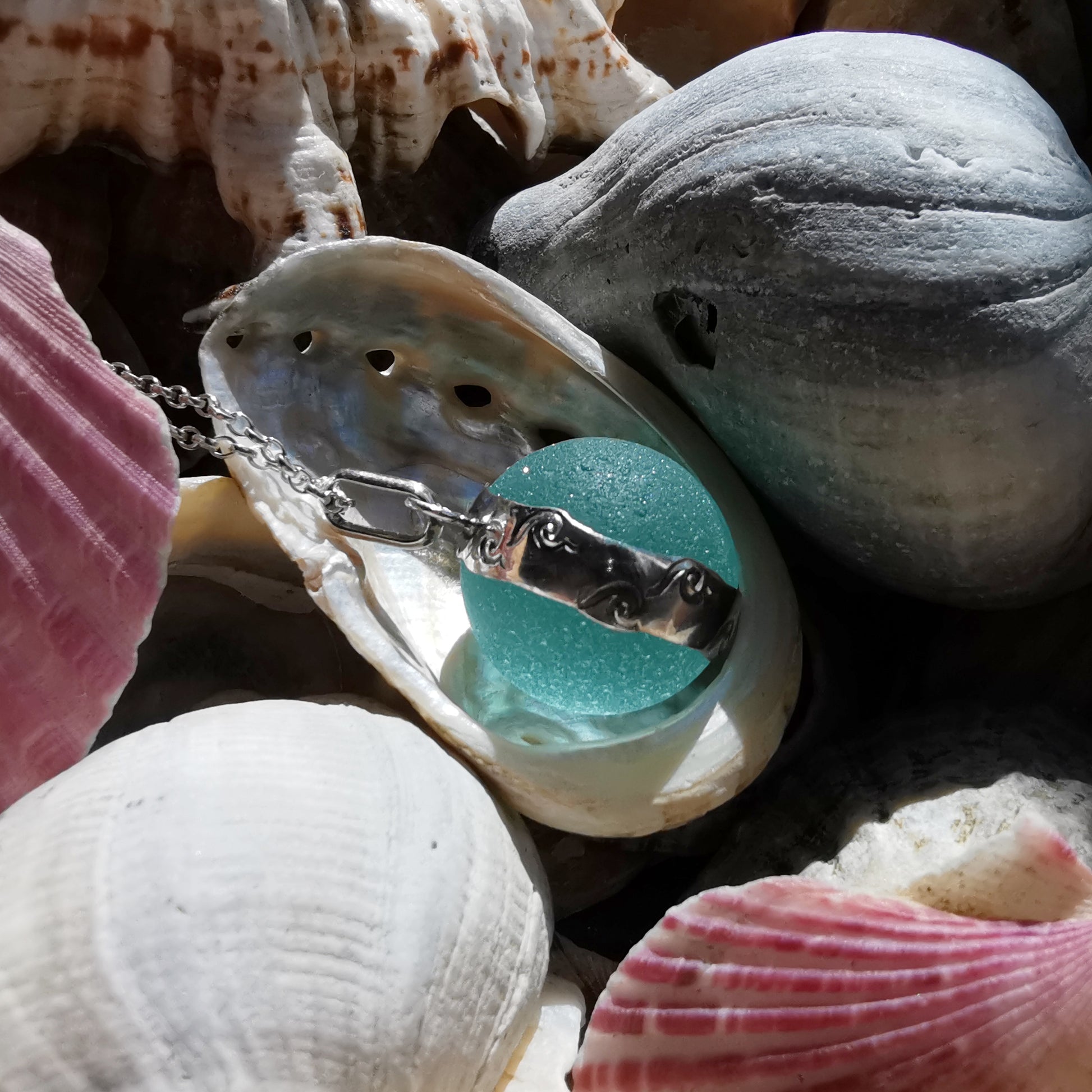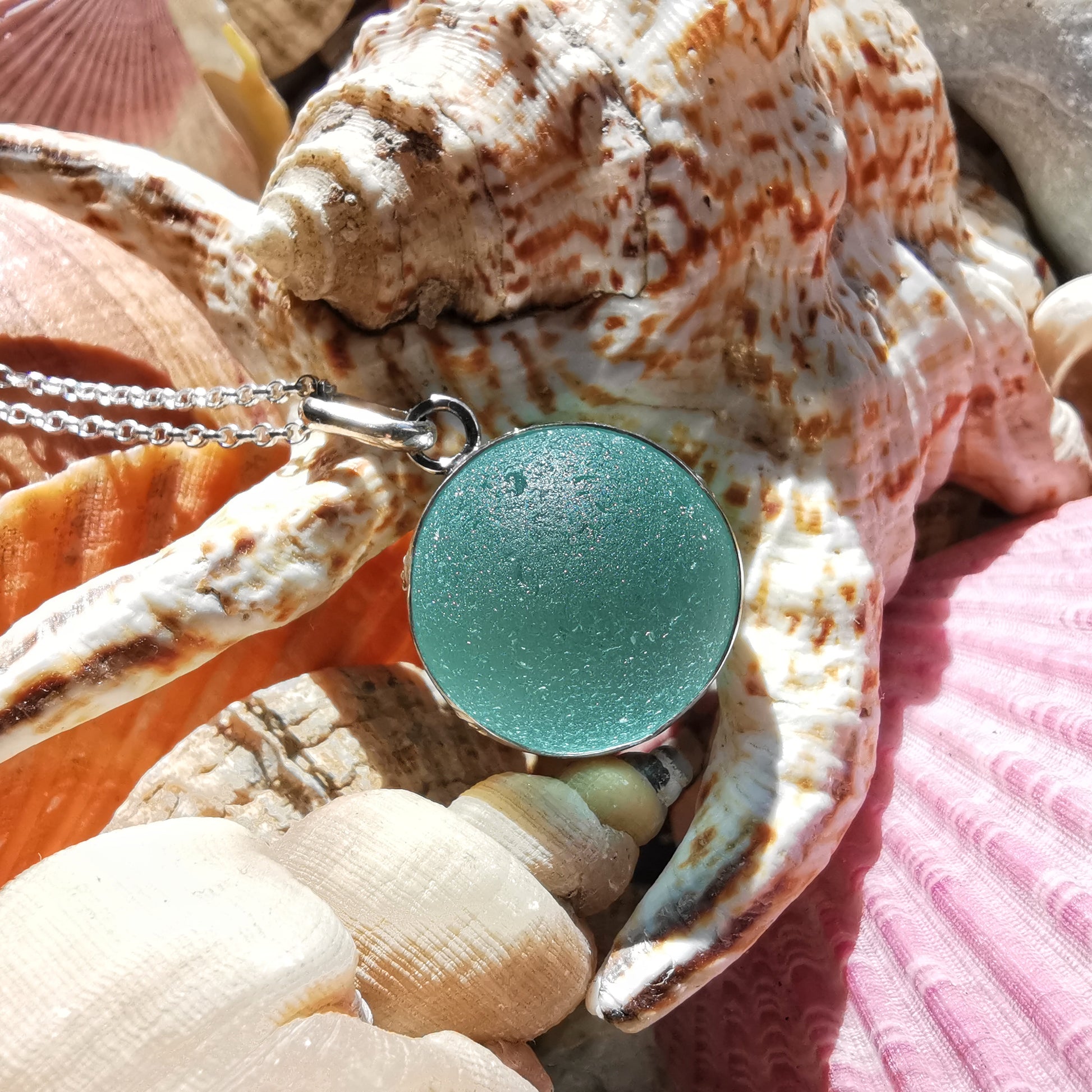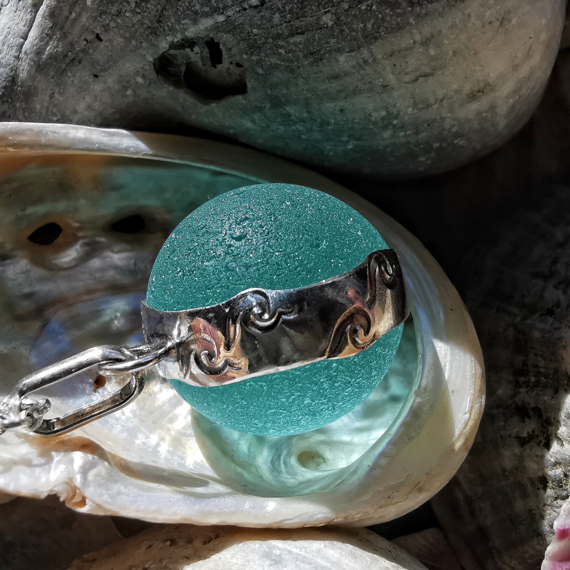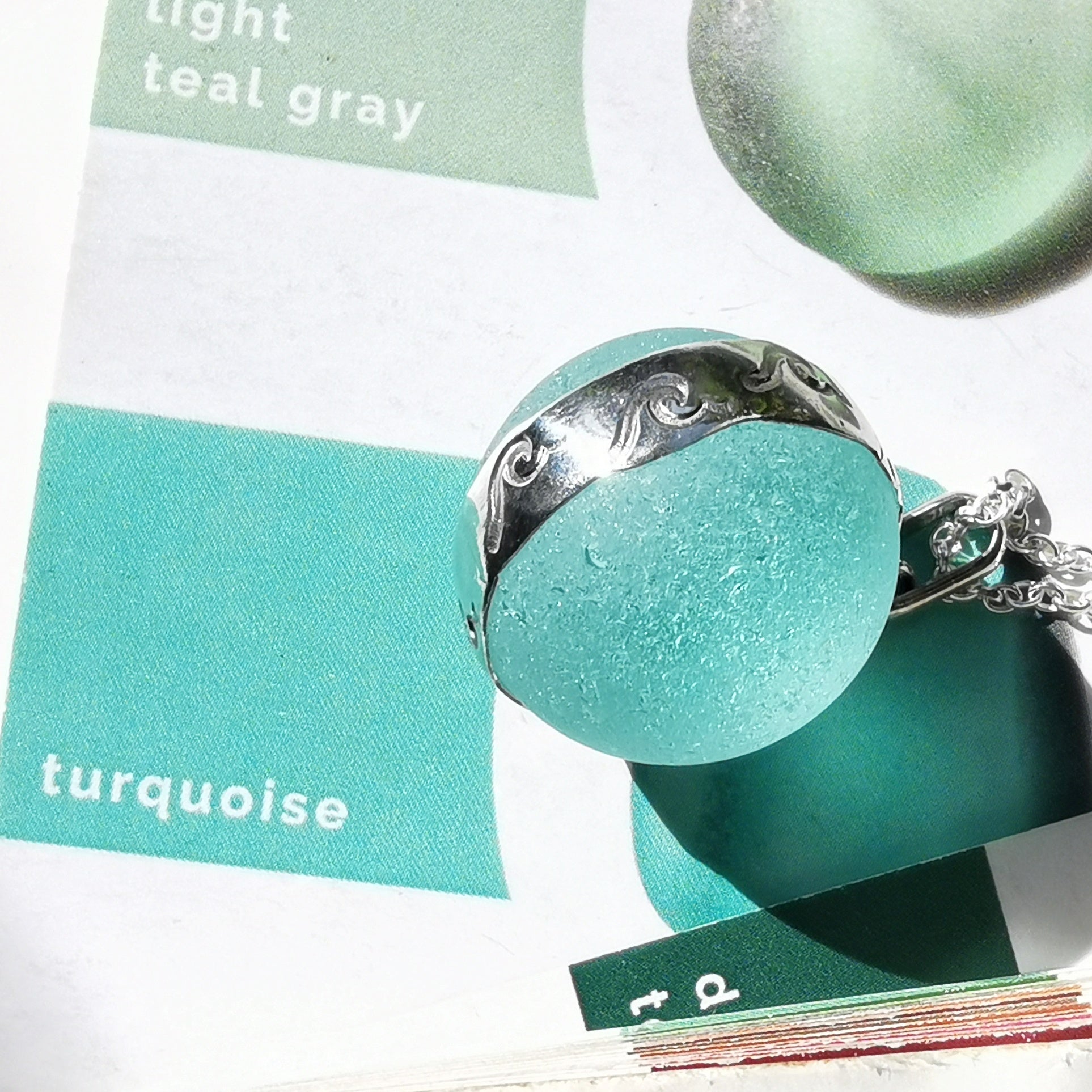 Reserved. Large Scottish turquoise Codd sea glass marble& sterling silver pendant.