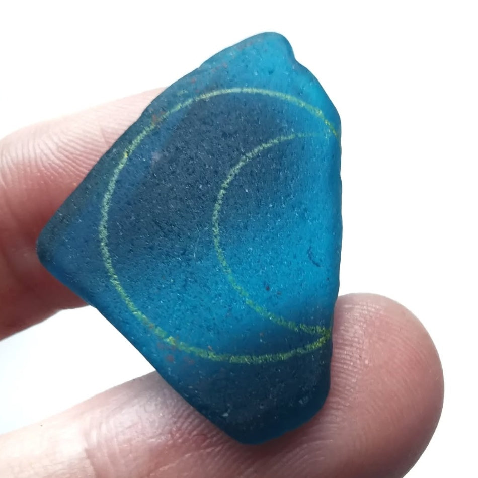 One of a kind pendant composed with Scottish teal blue sea glass found by myself on a beach in Edinburgh.