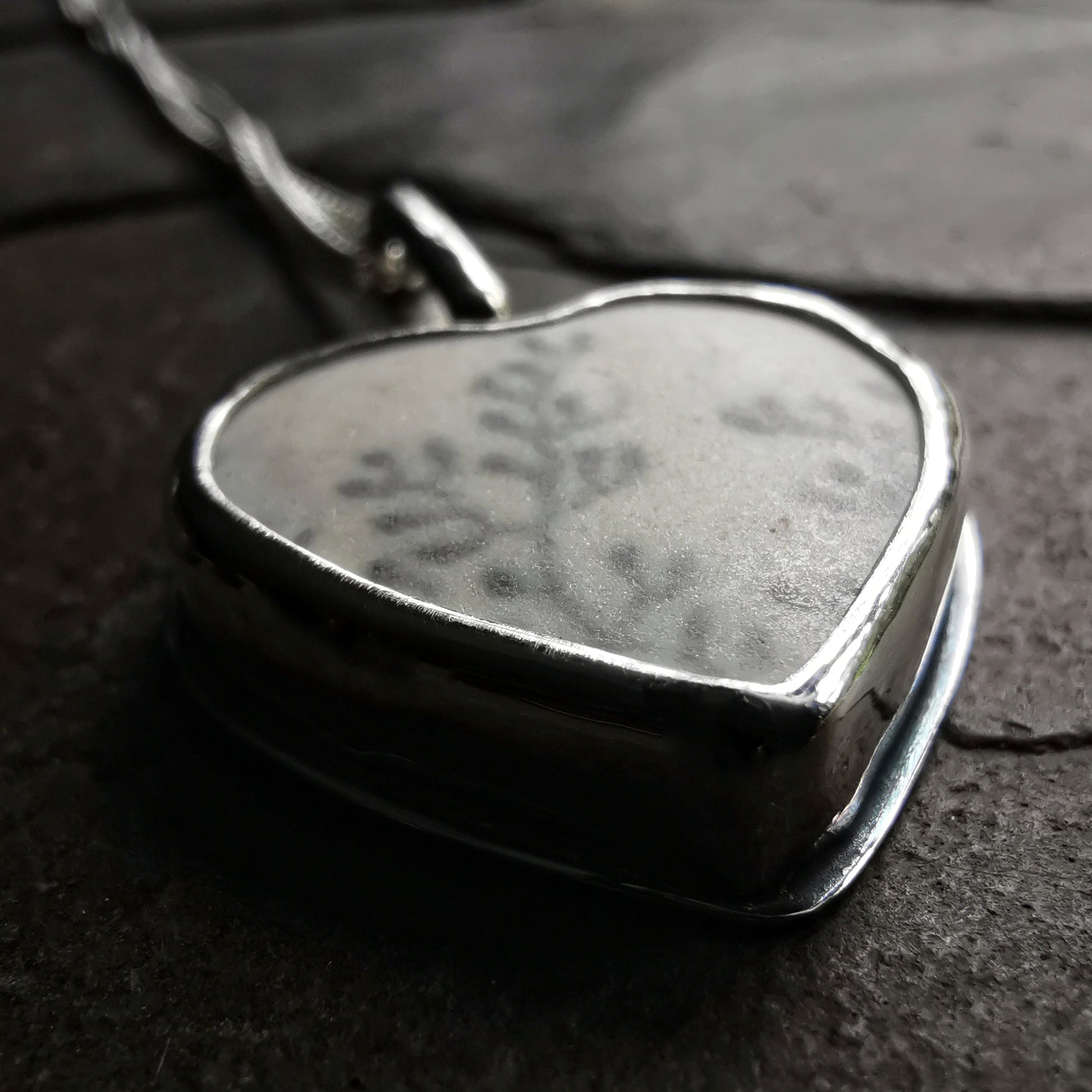 One of a kind pendant composed with genuine beach grey and white pottery piece, found by myself on a beach in Edinburgh. The pottery is set in fine silver bezel, the chain is sterling silver. I shaped the pottery myself.