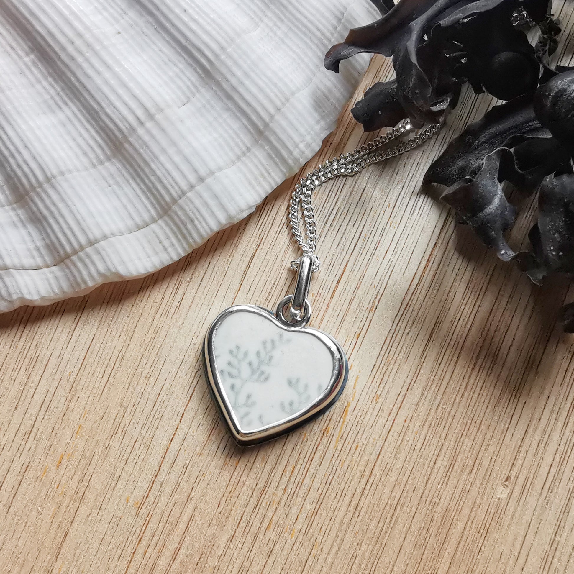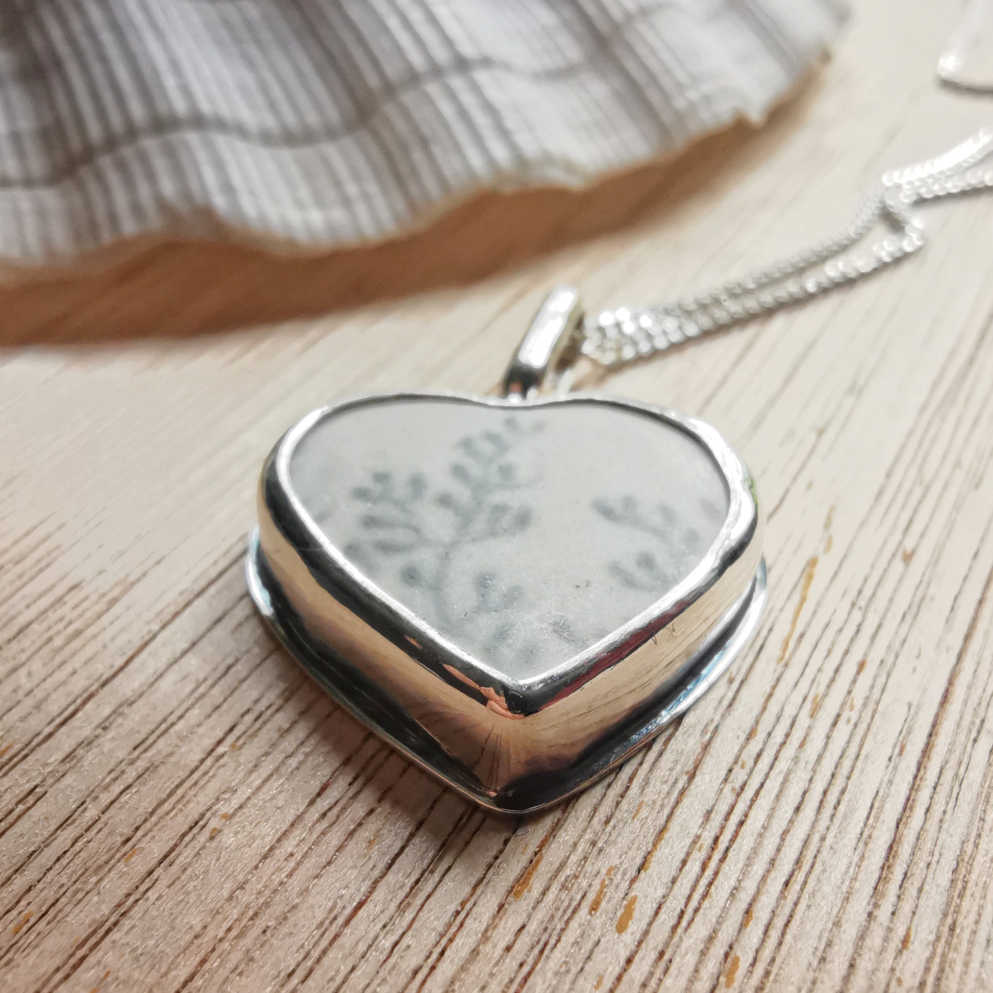 Scottish seaweed pattern beach pottery & sterling silver pendant.
