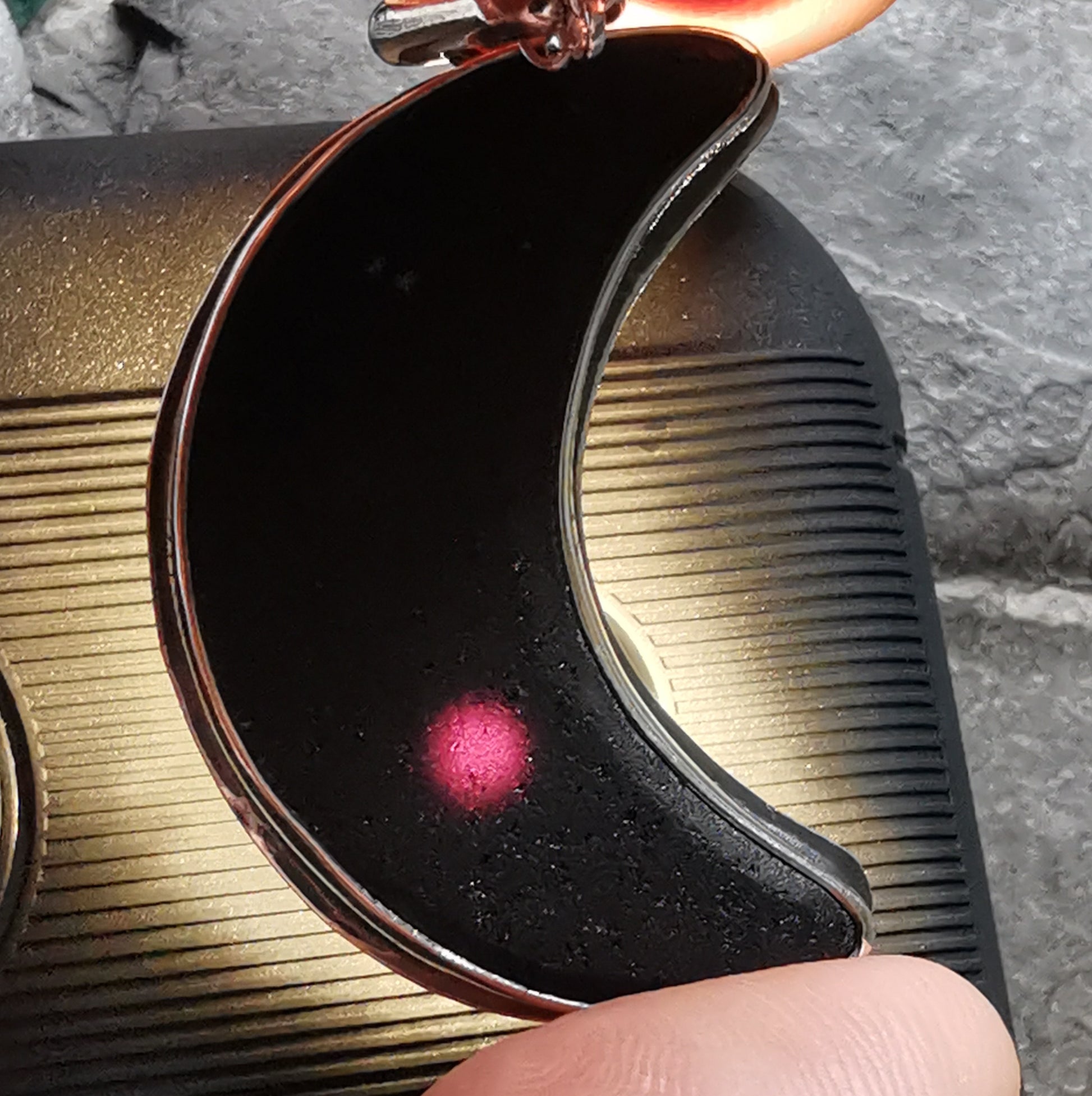 One of a kind pendant composed with Scottish black sea glass with a hidden colour, found on a beach in Edinburgh.