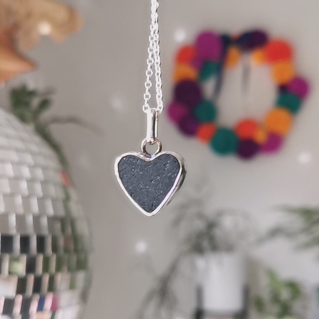 Reserved. Scottish black sea glass heart & sterling silver pendant.