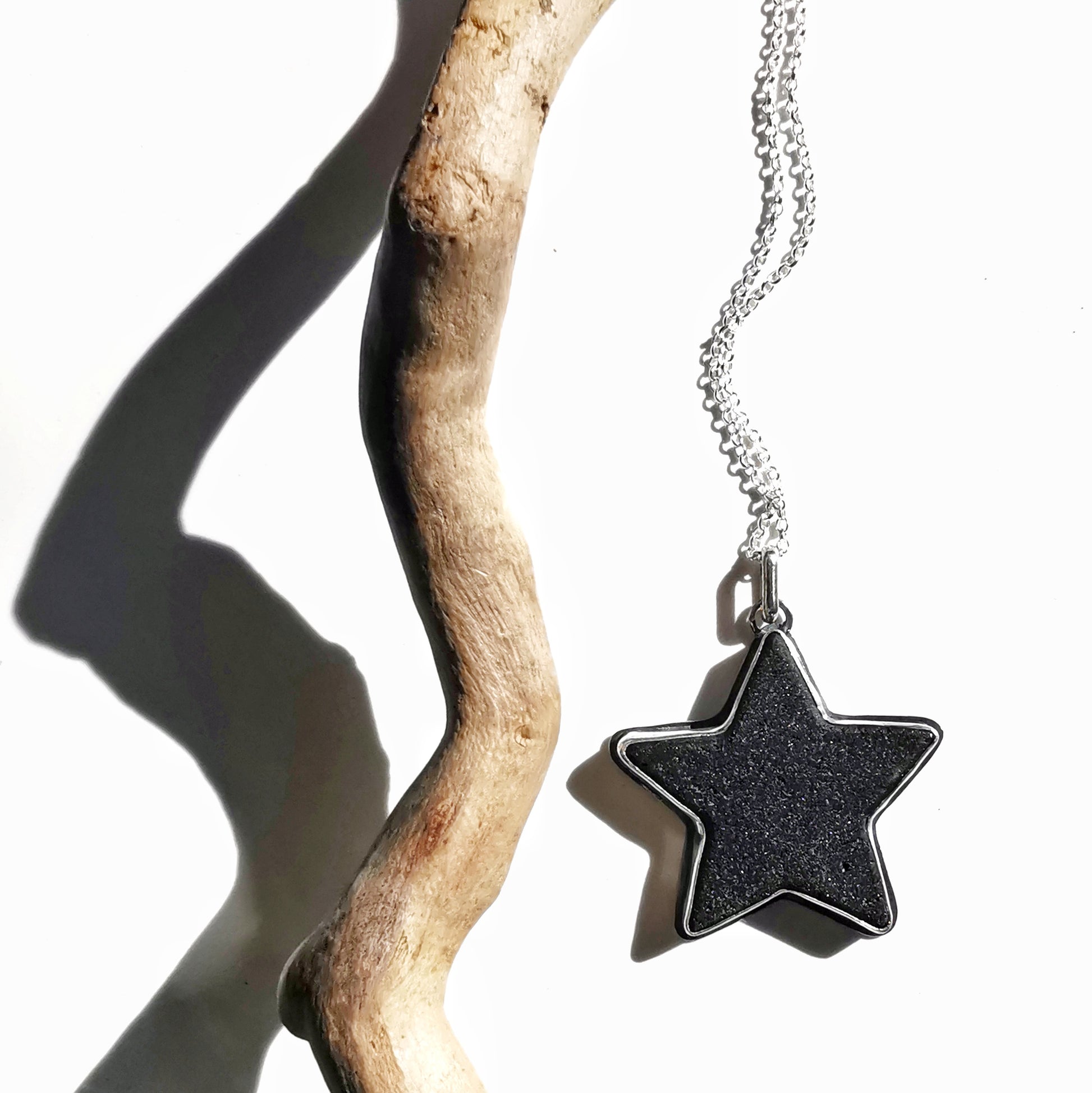 One of a kind pendant composed with genuine Scottish black sea glass found by me on Edinburgh's beach. The sea glass is set in fine silver bezel, the chain is sterling silver. I've shaped this piece myself., you can see how it looked preciously on the last photo.