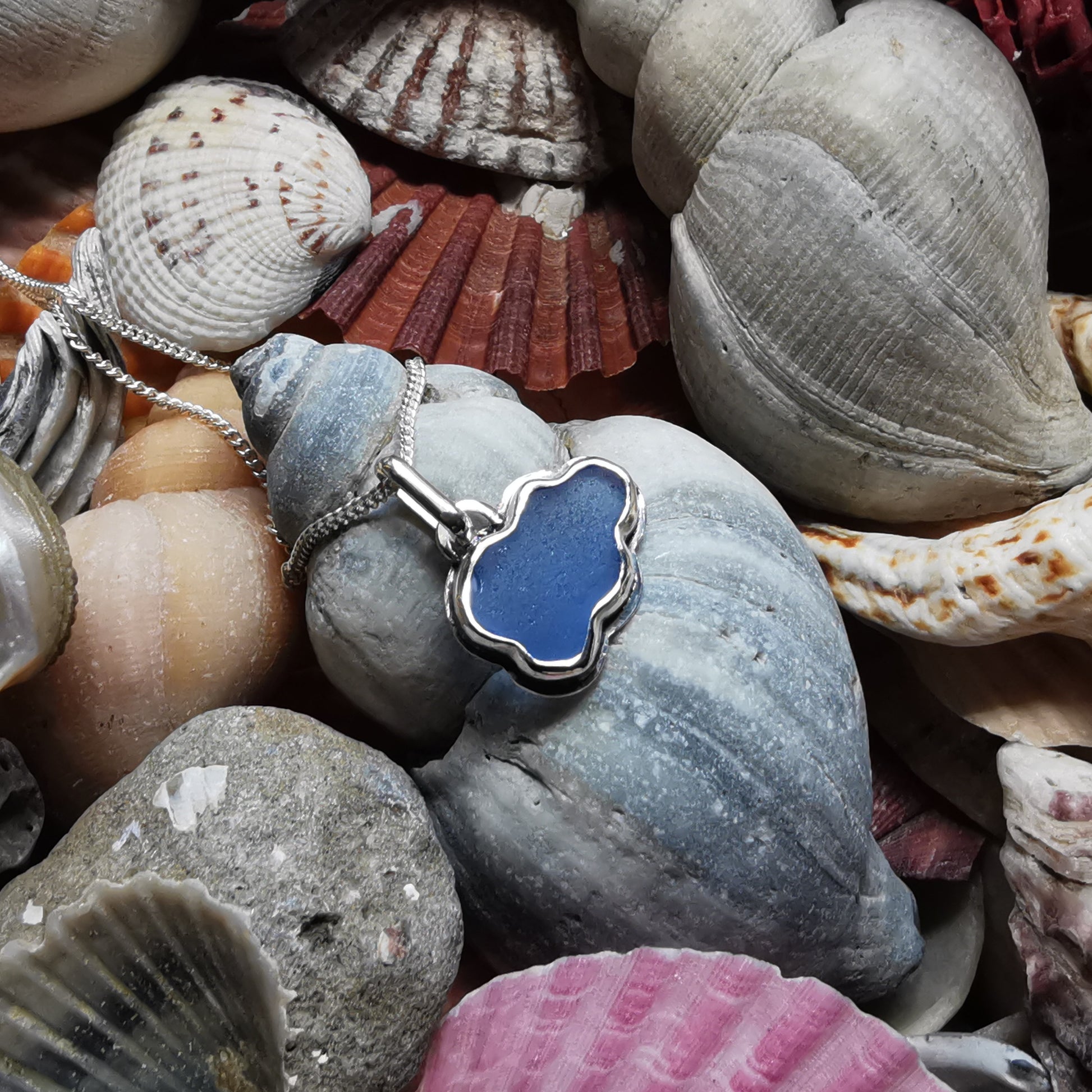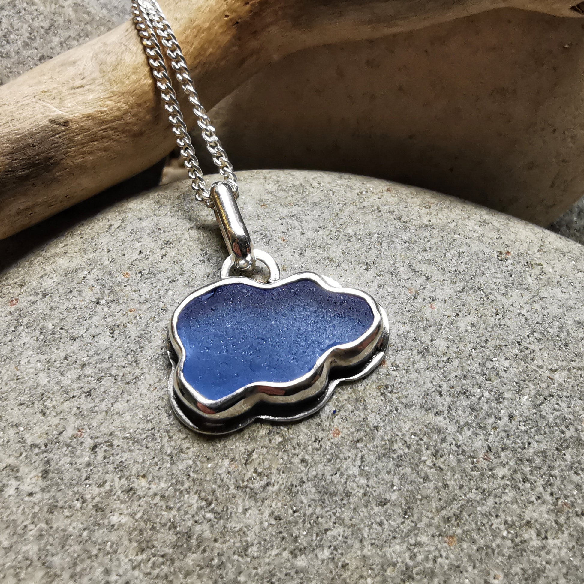 Scottish blue sea glass cloud & sterling silver pendant.