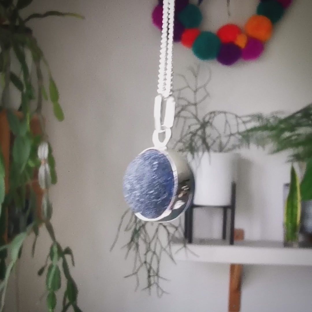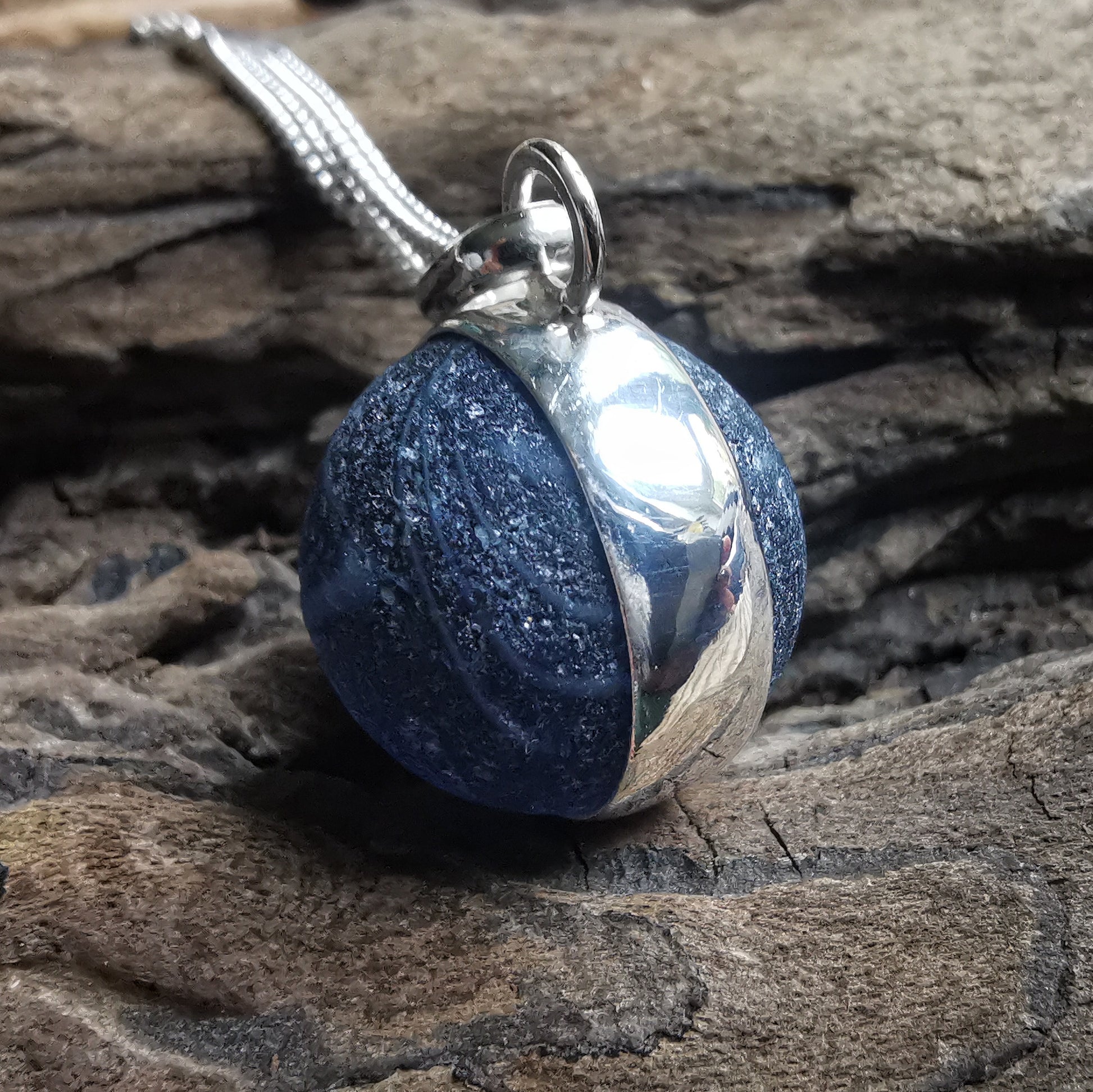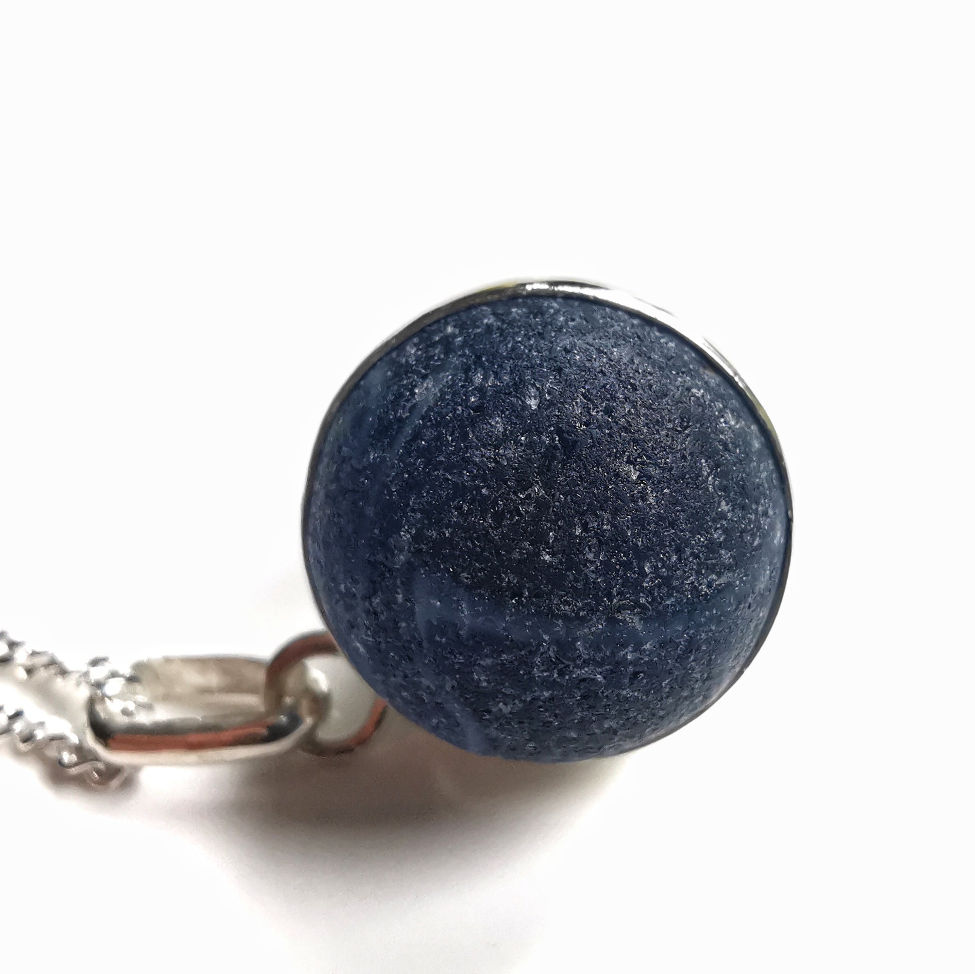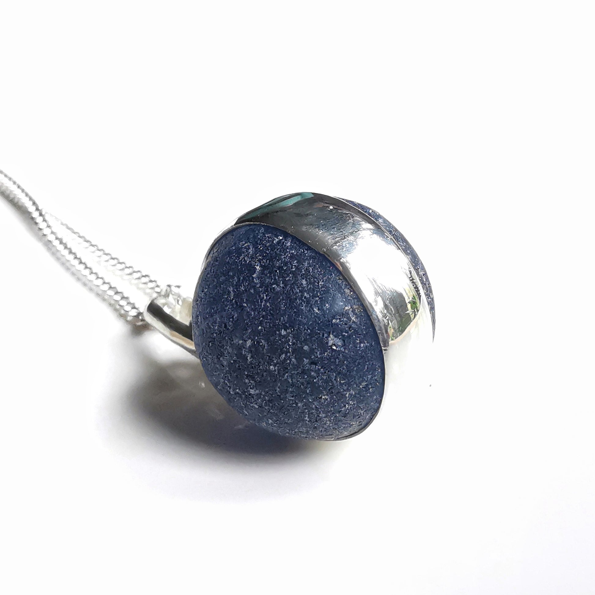 Scottish dark blue sea glass marble & sterling silver pendant.