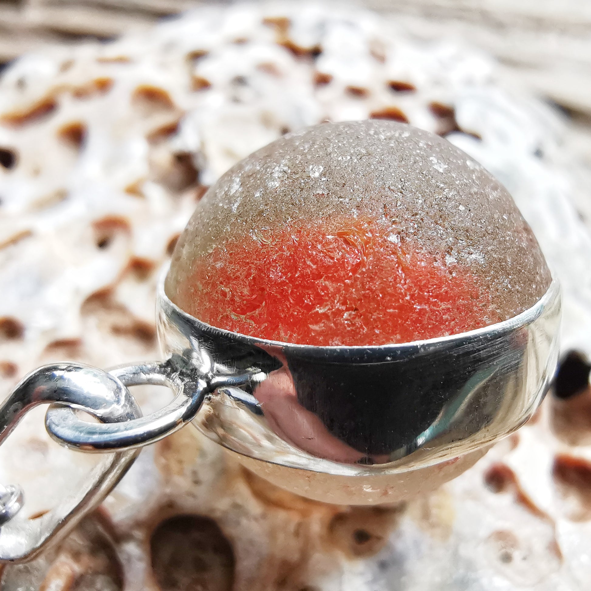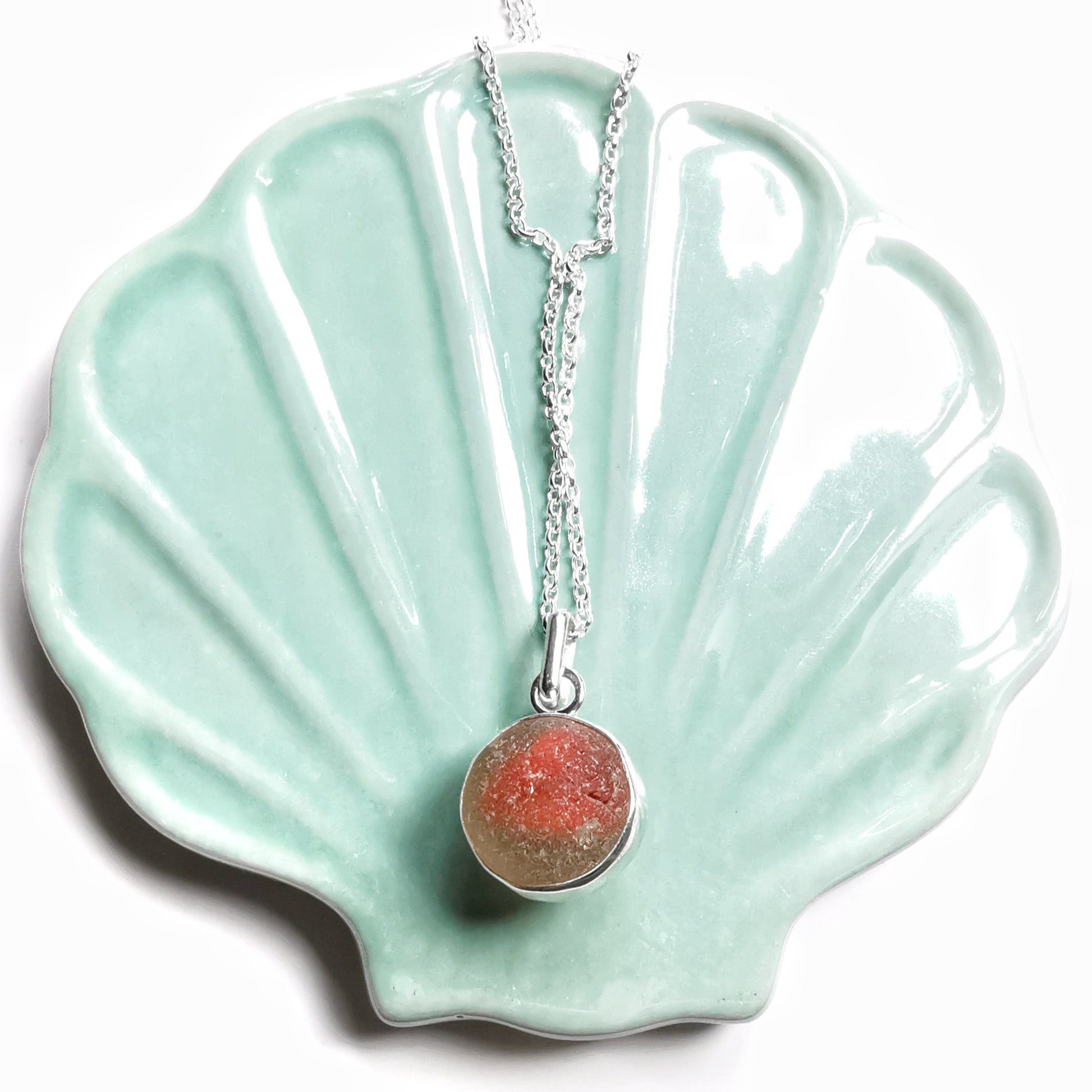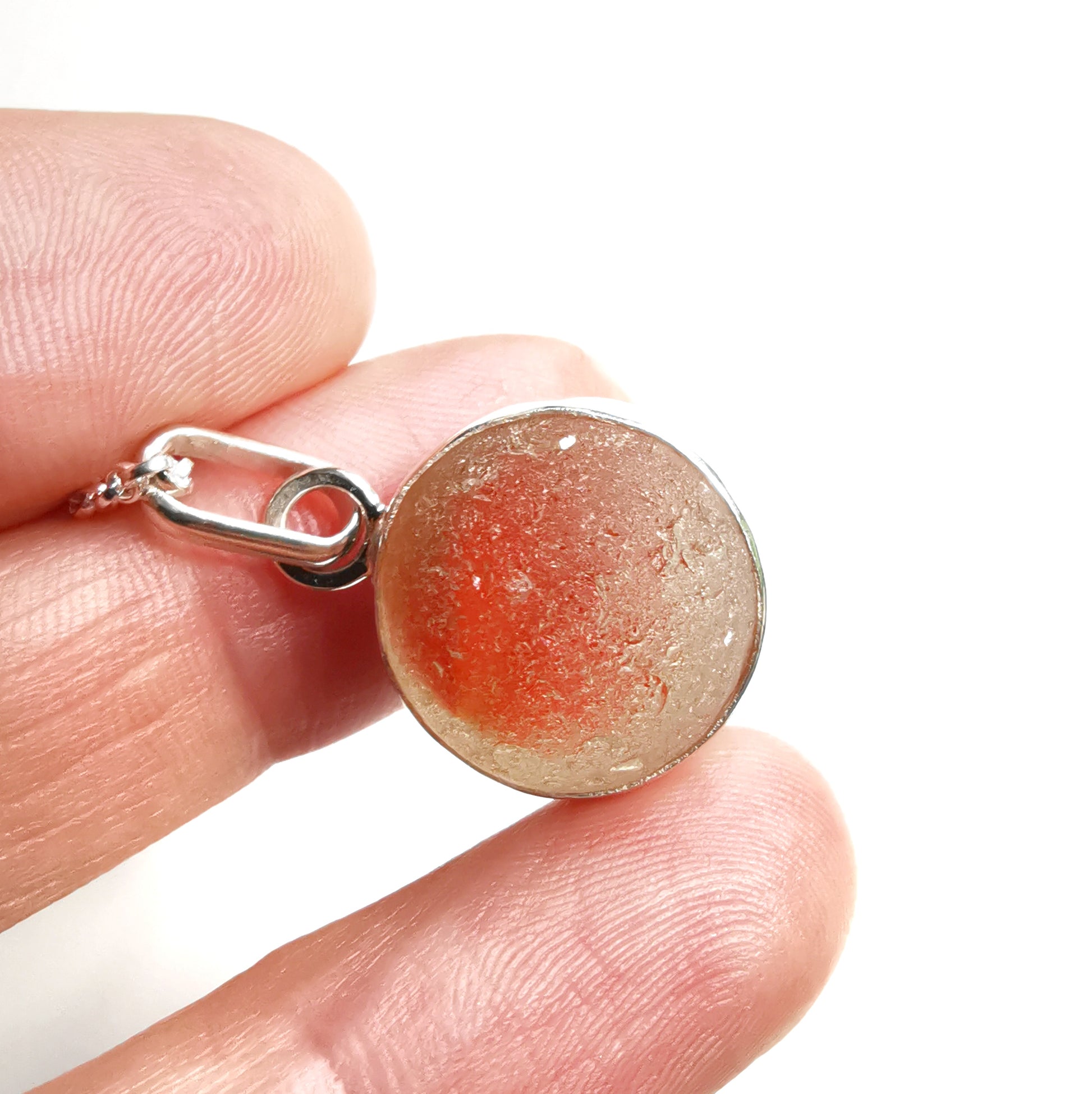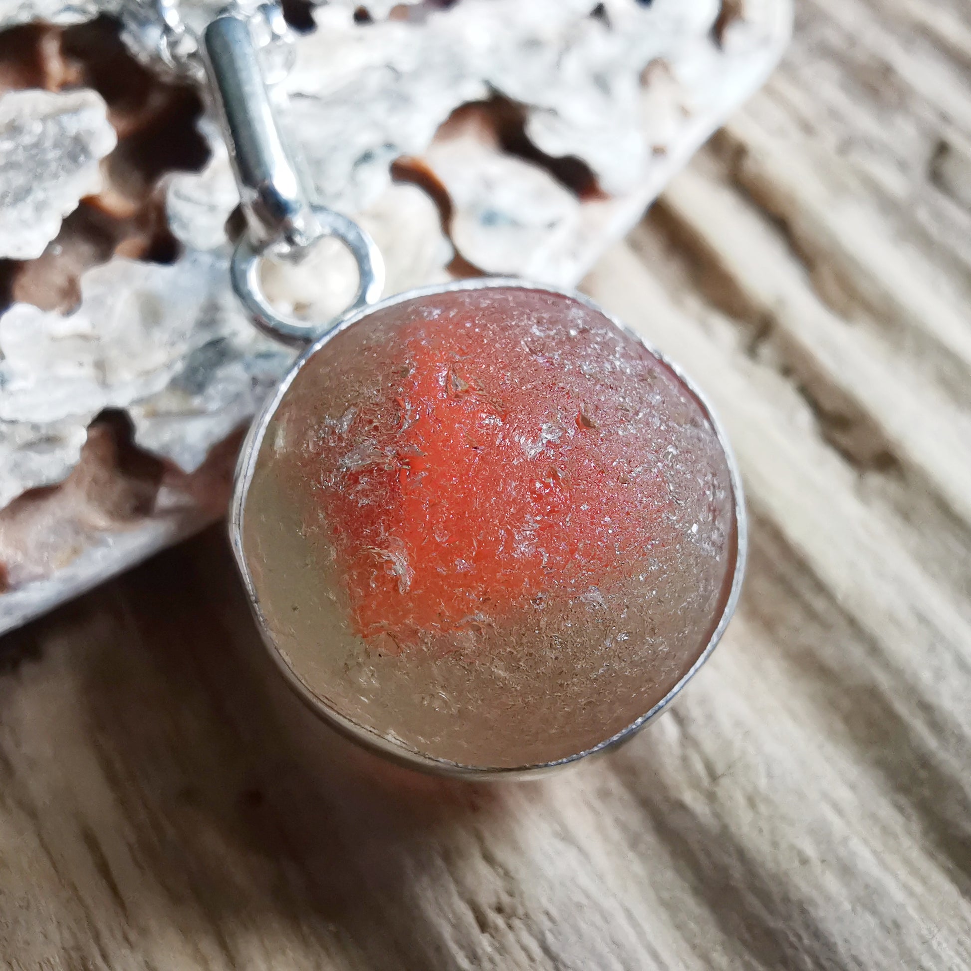 Scottish genuine orange sea glass marble & sterling silver pendant.
