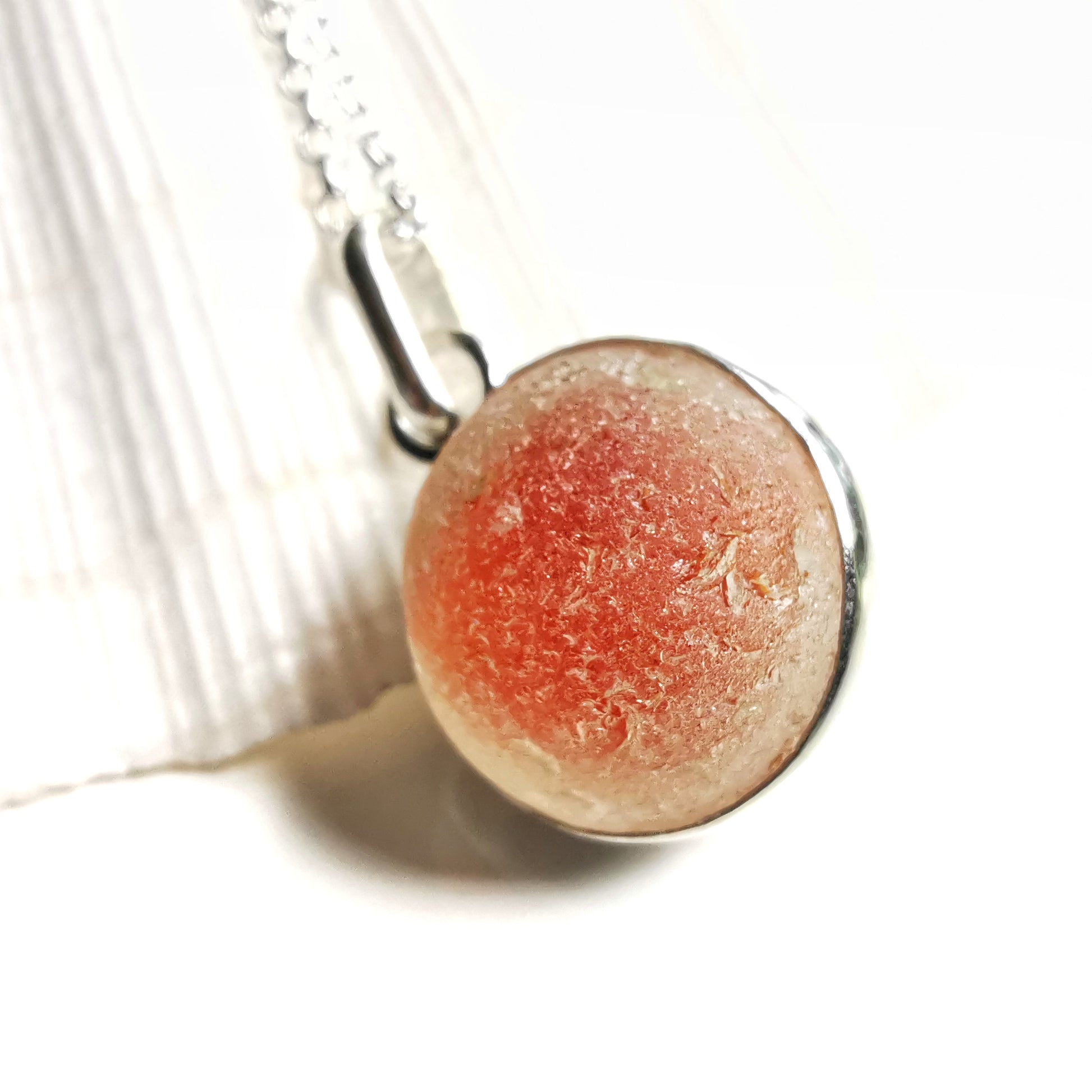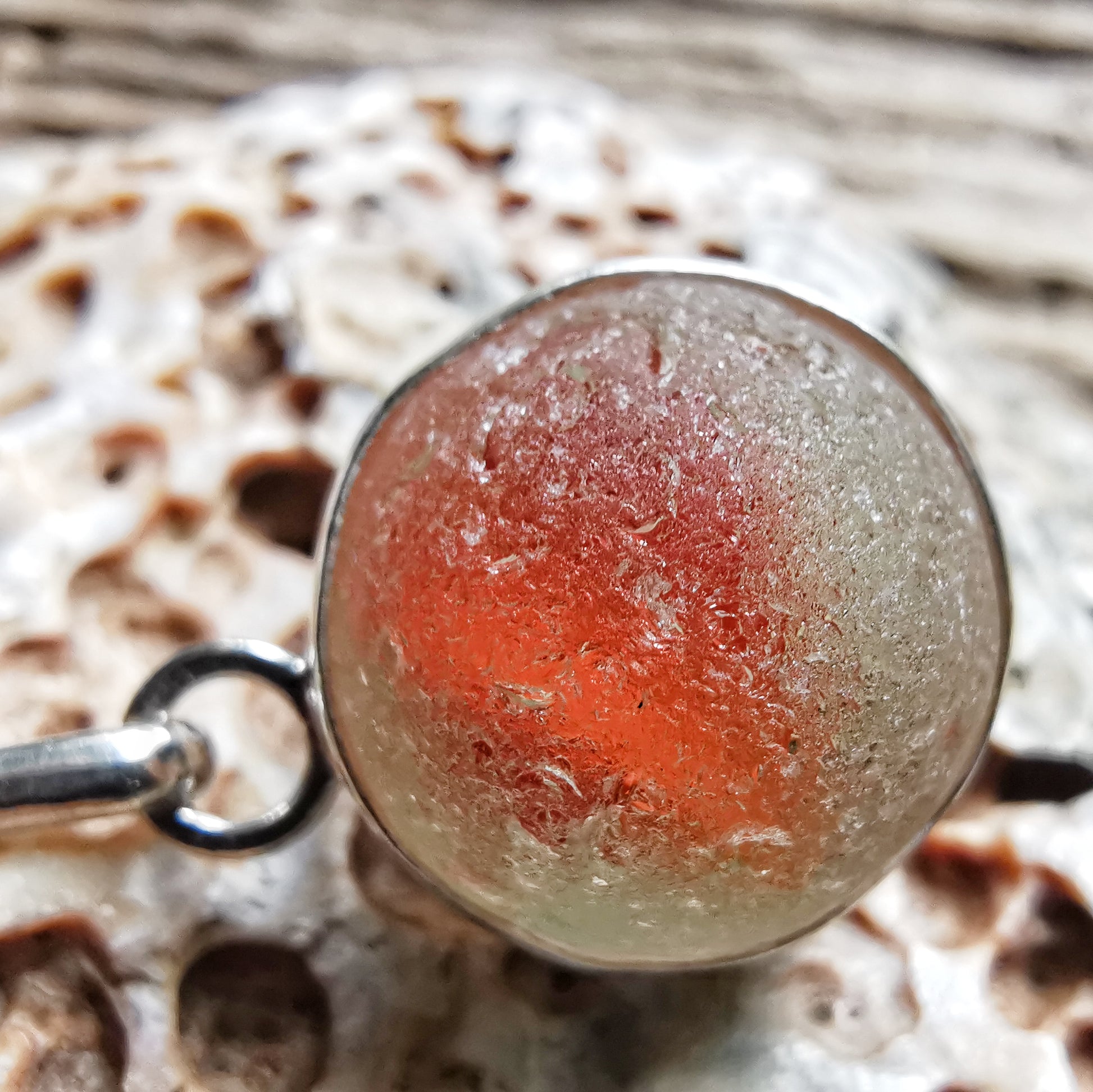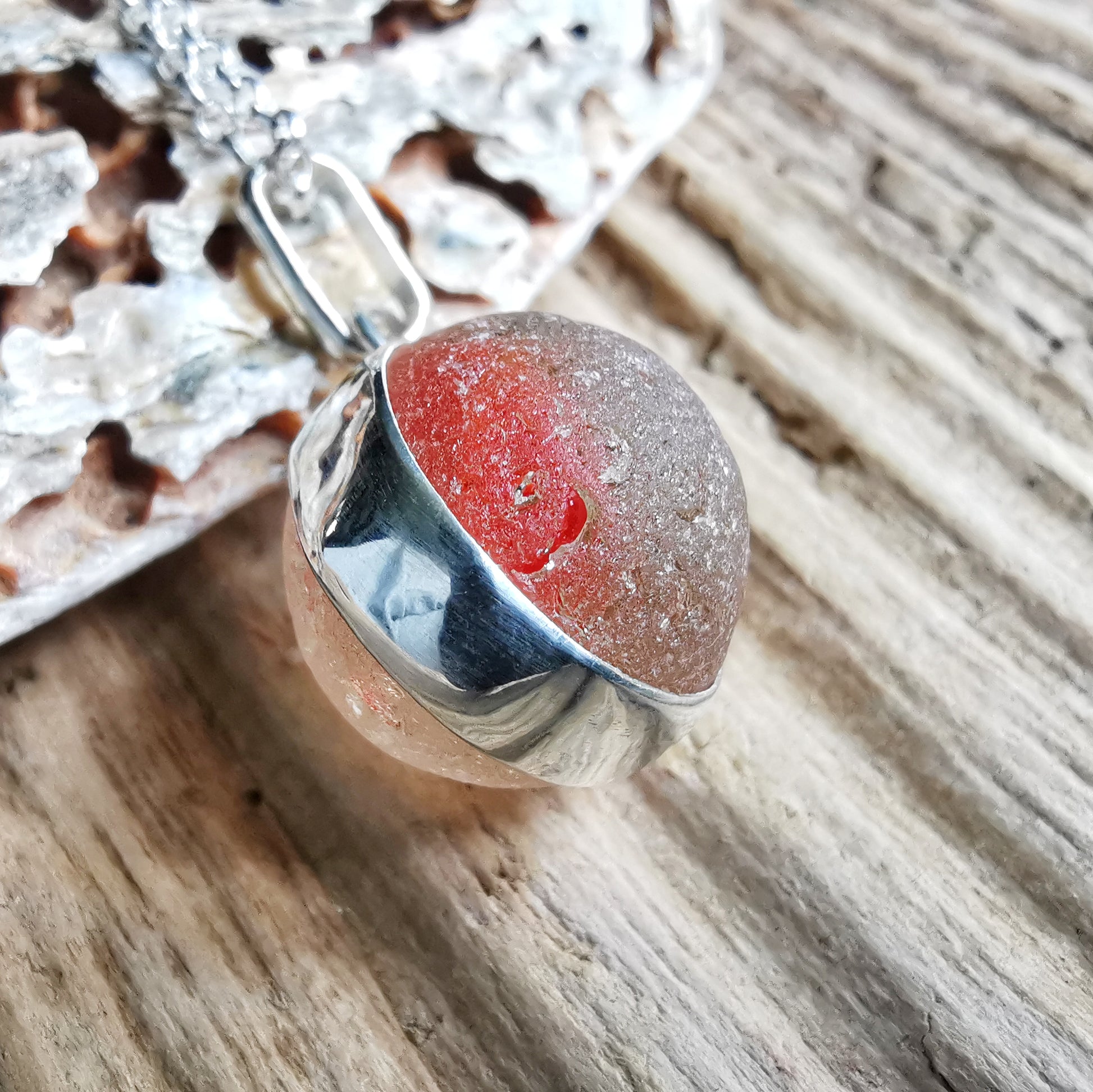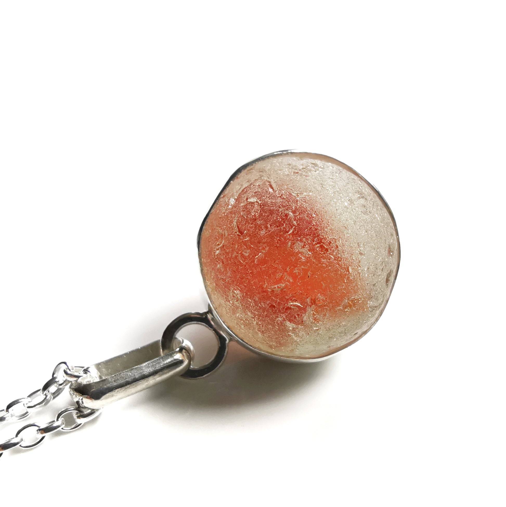Scottish genuine orange sea glass marble & sterling silver pendant.