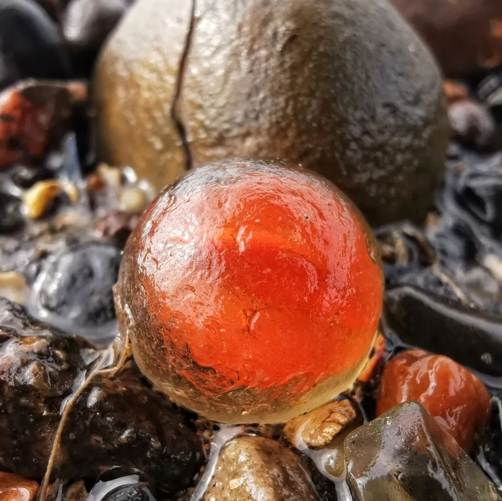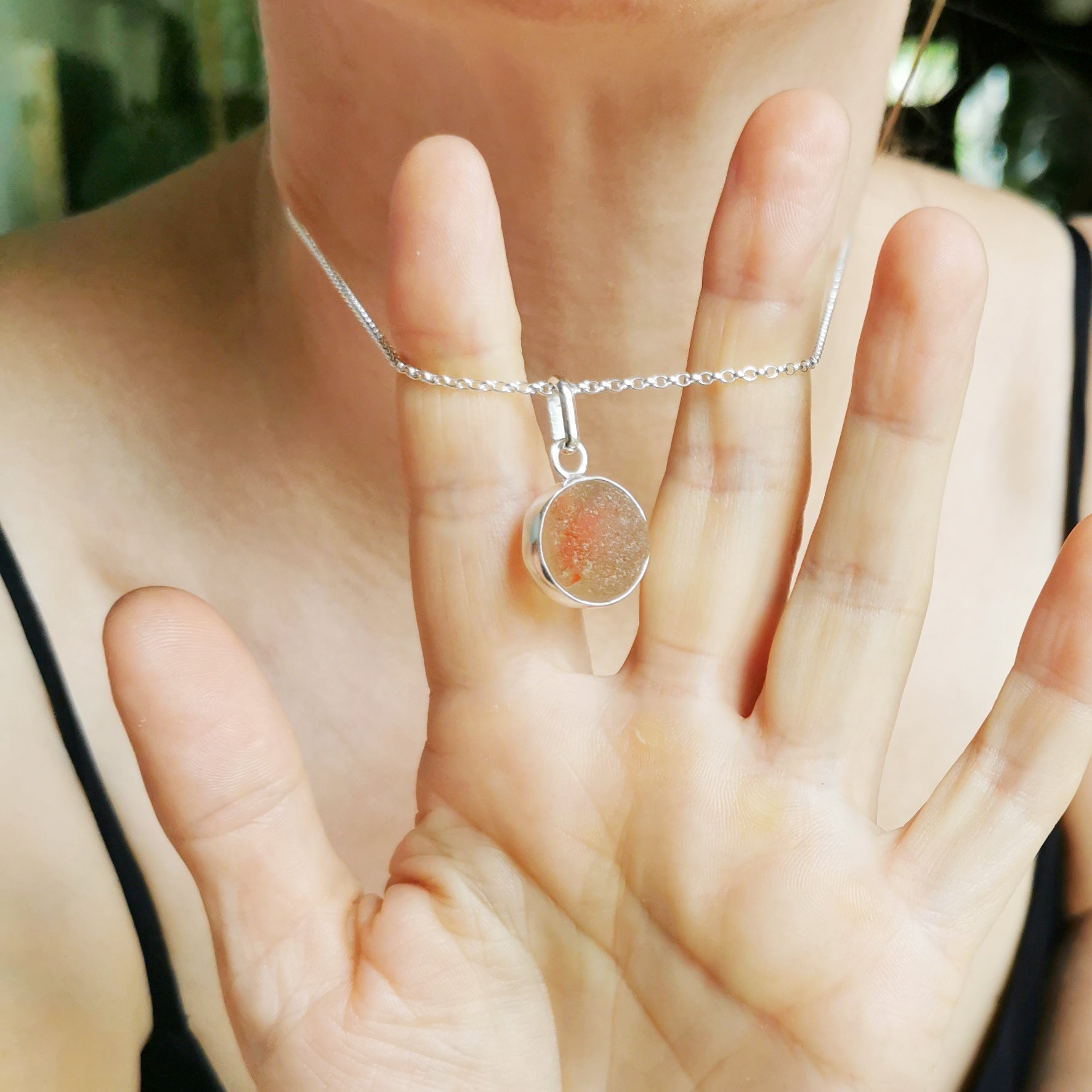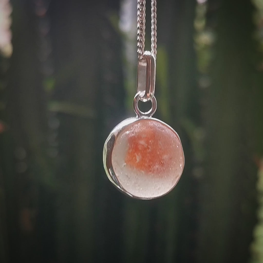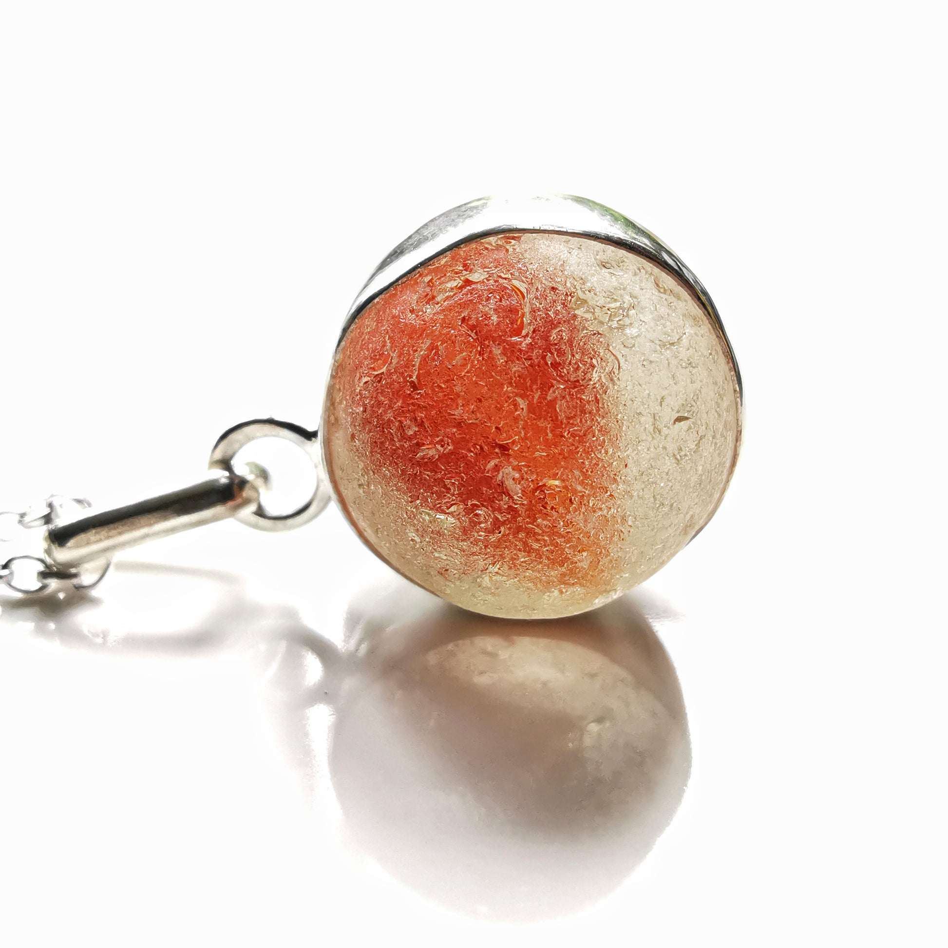 Scottish genuine orange sea glass marble & sterling silver pendant.