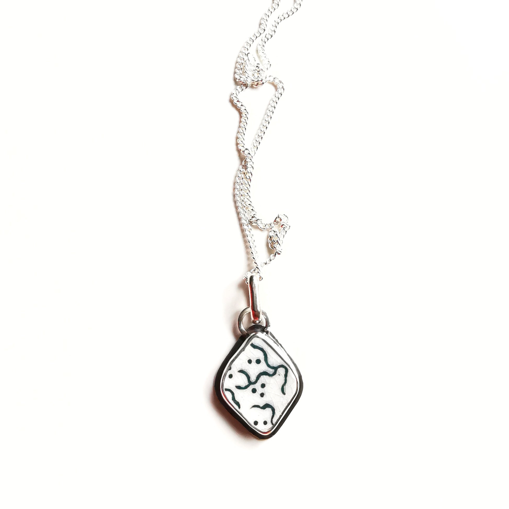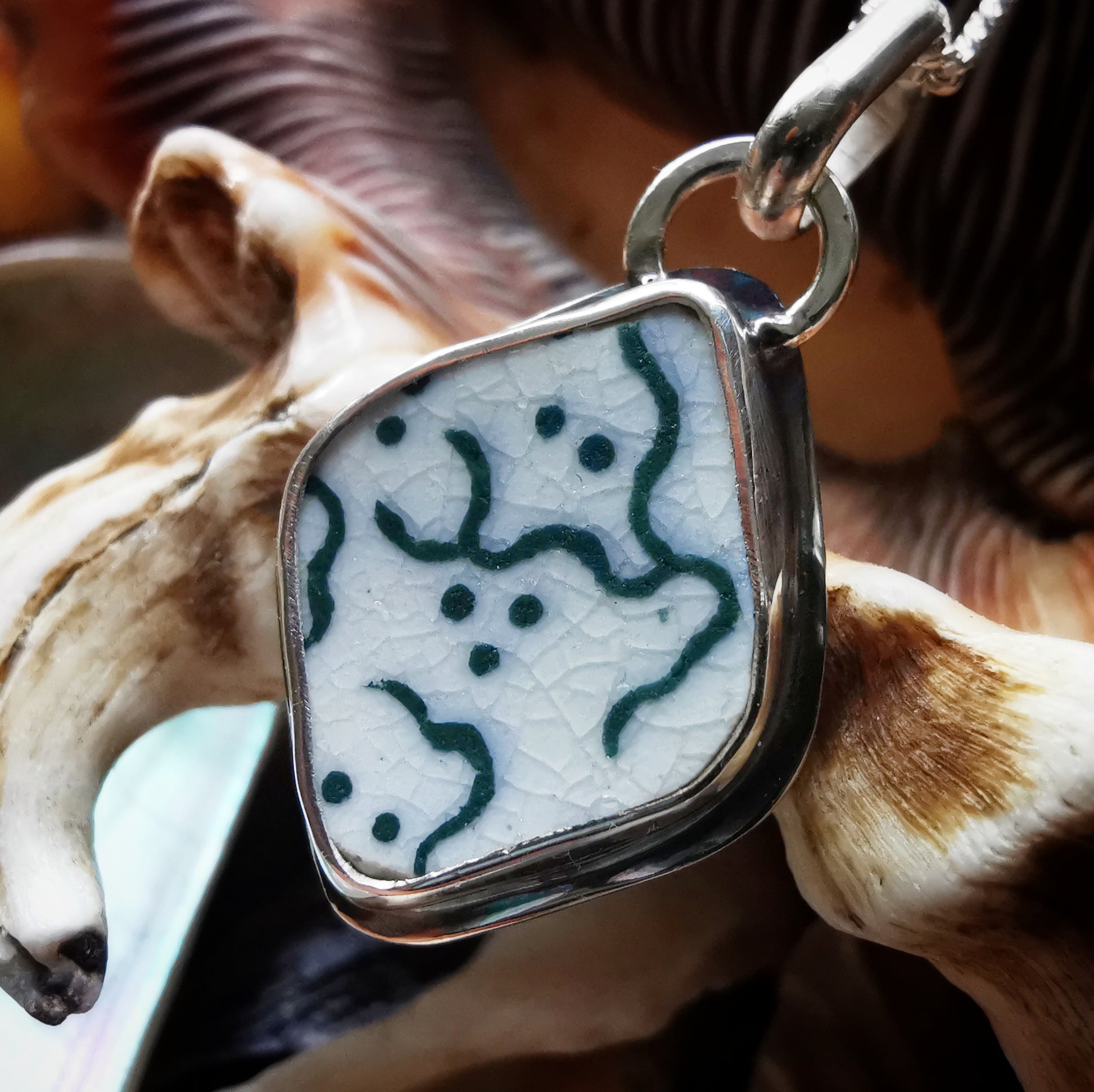 Scottish green and white "little ghosts" sea pottery & sterling silver pendant.
