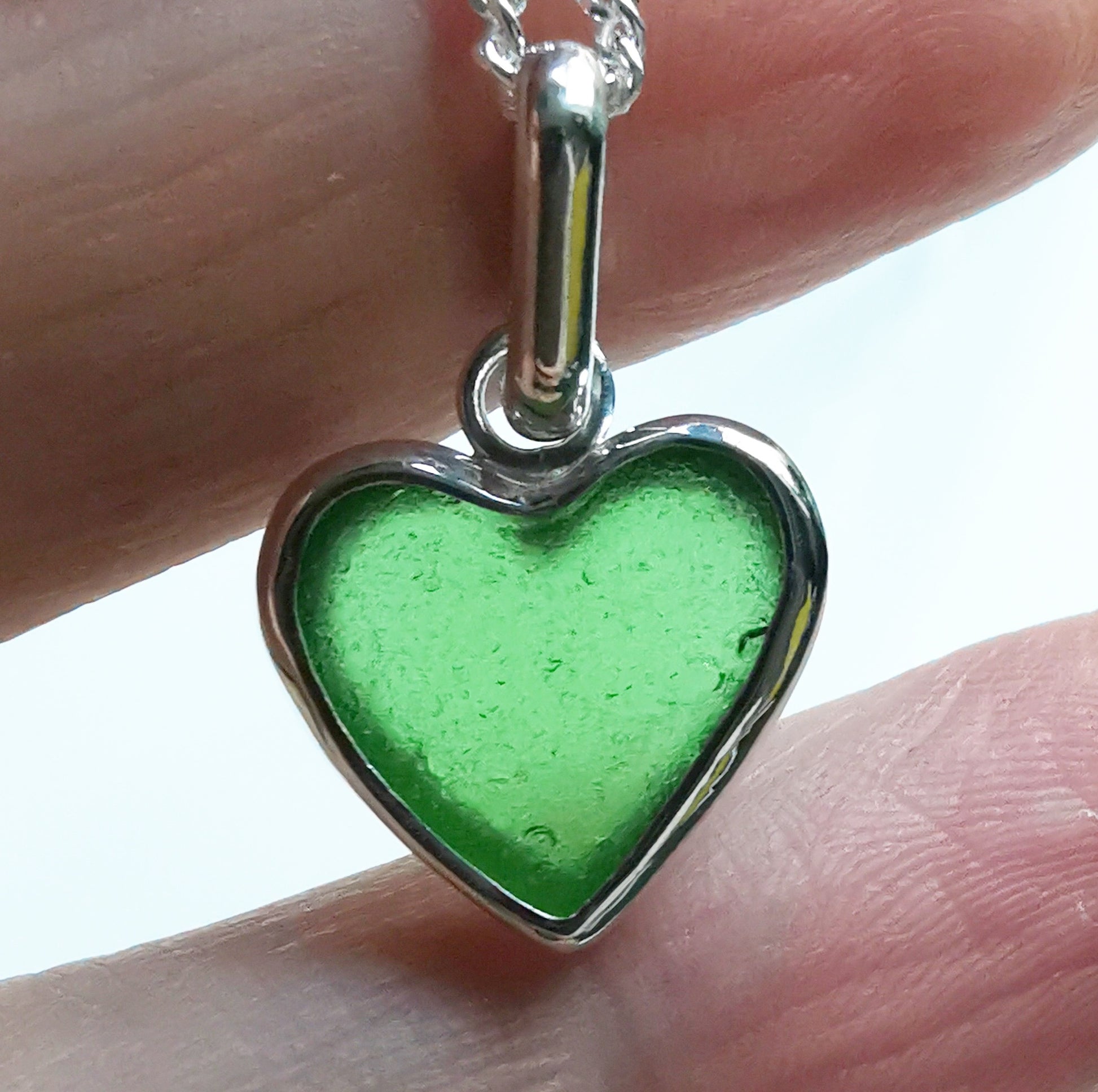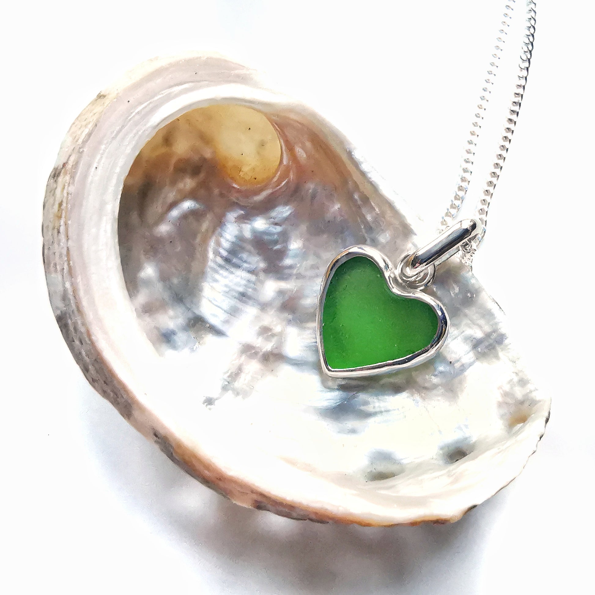 One of a kind pendant composed with green sea glass, found by myself on one of Edinburgh's beaches.
