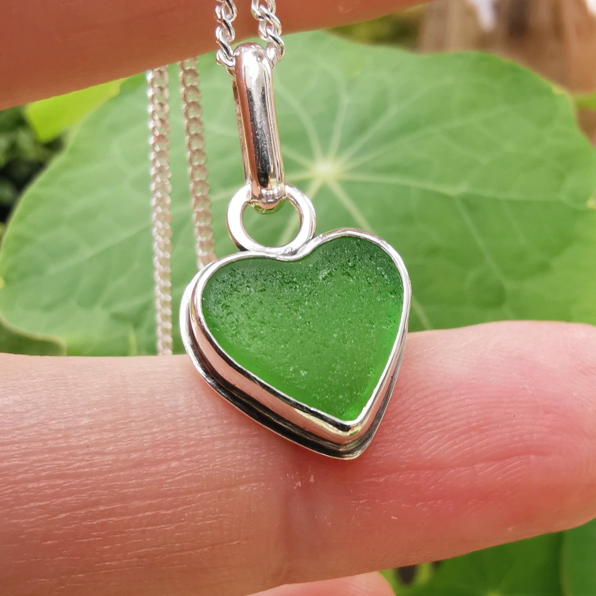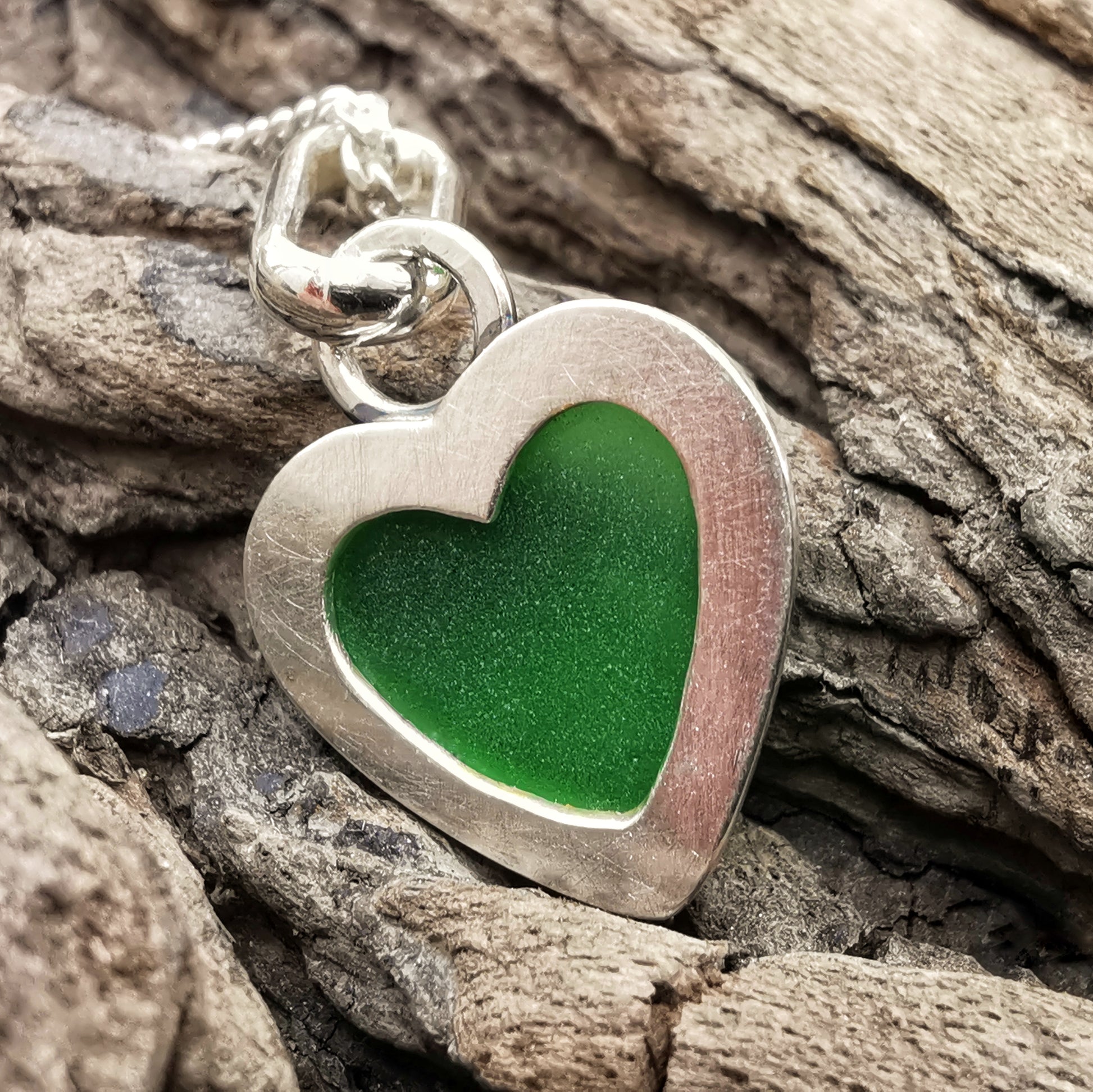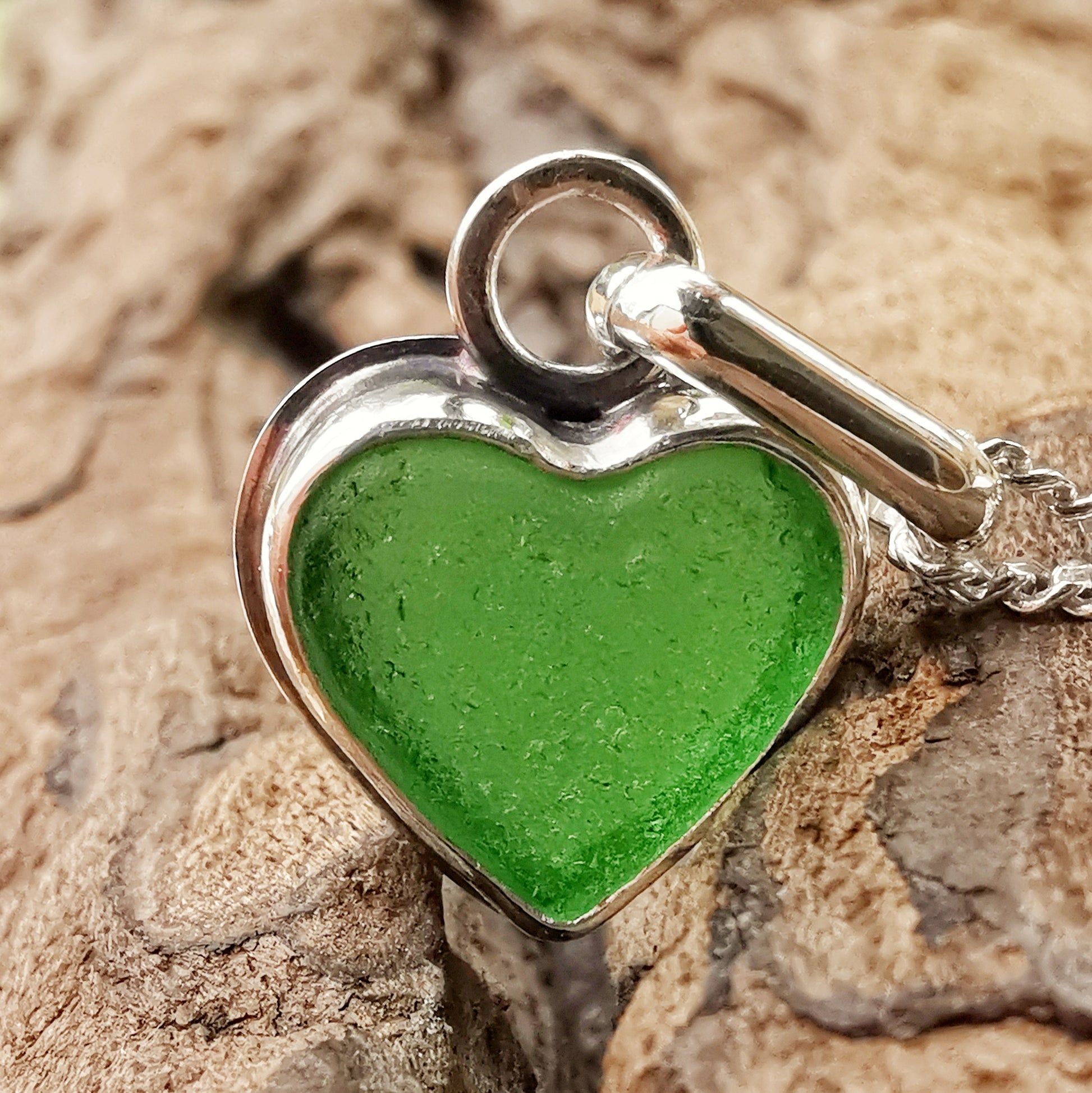 One of a kind pendant composed with green sea glass, found by myself on one of Edinburgh's beaches.