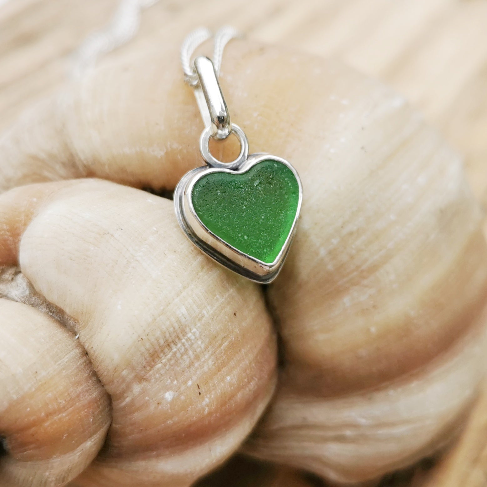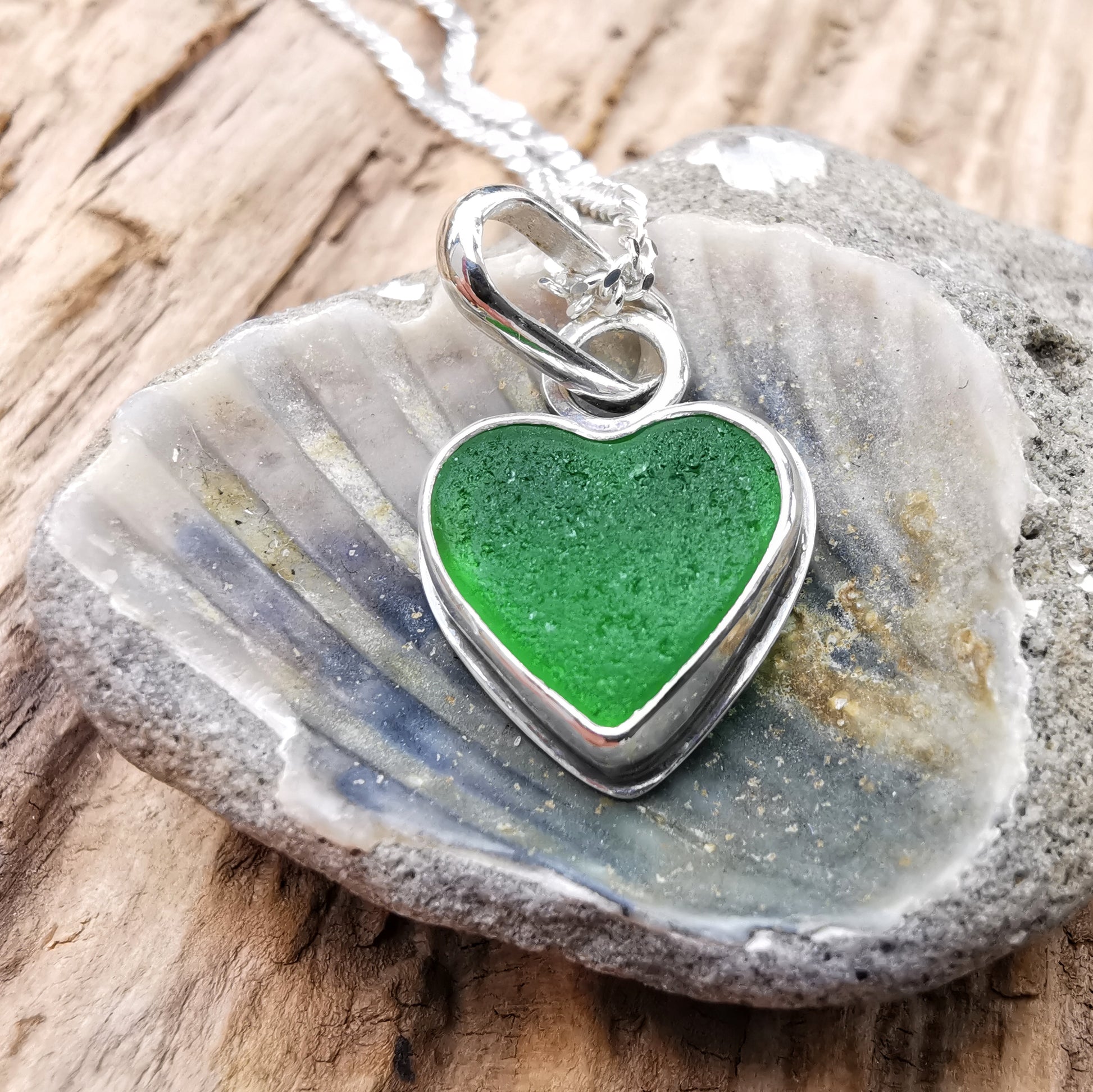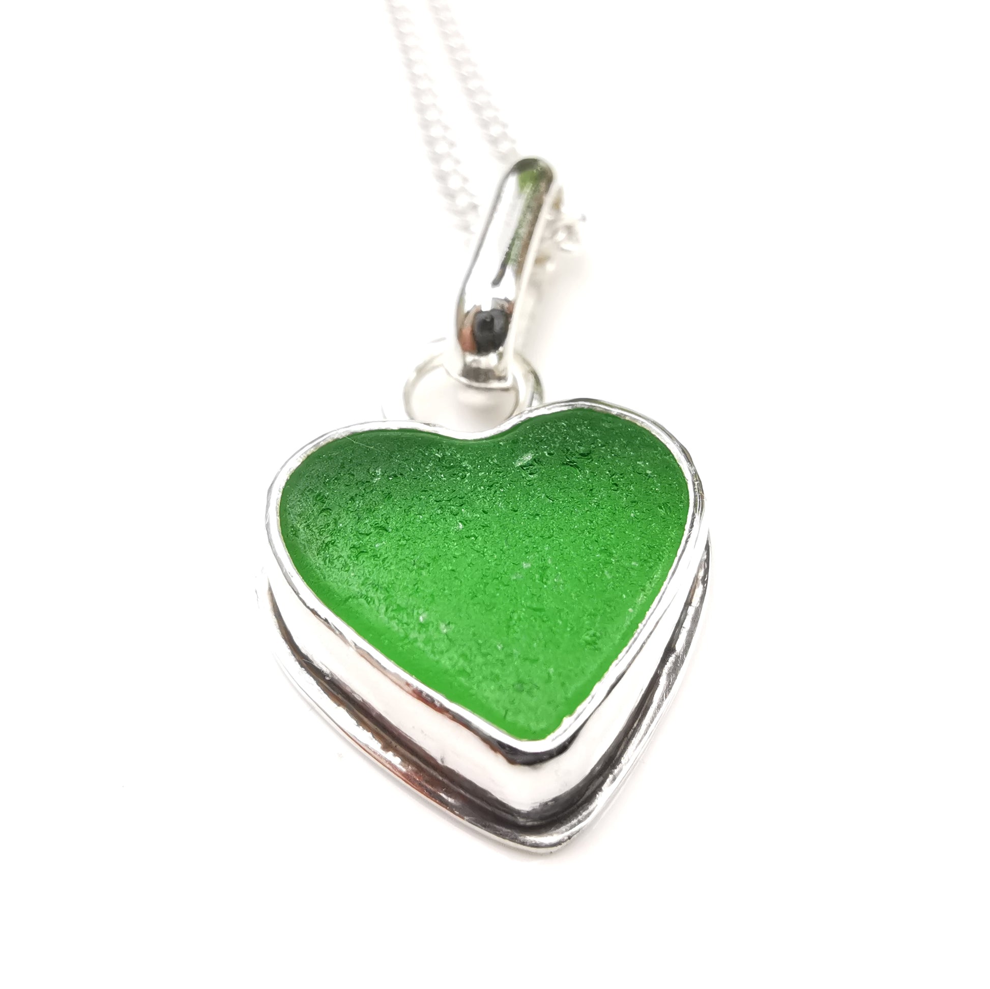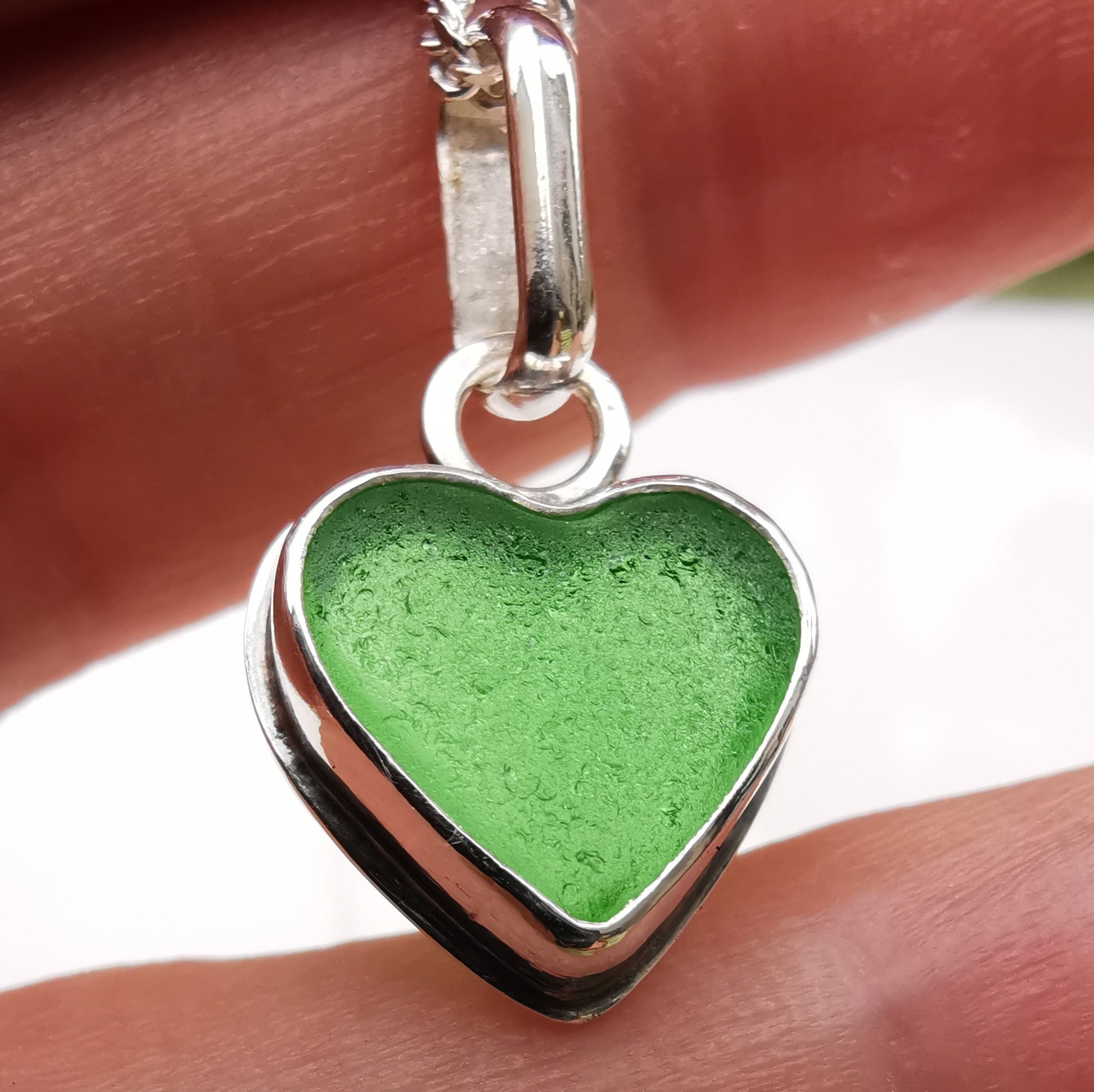 One of a kind pendant composed with green sea glass, found by myself on one of Edinburgh's beaches.