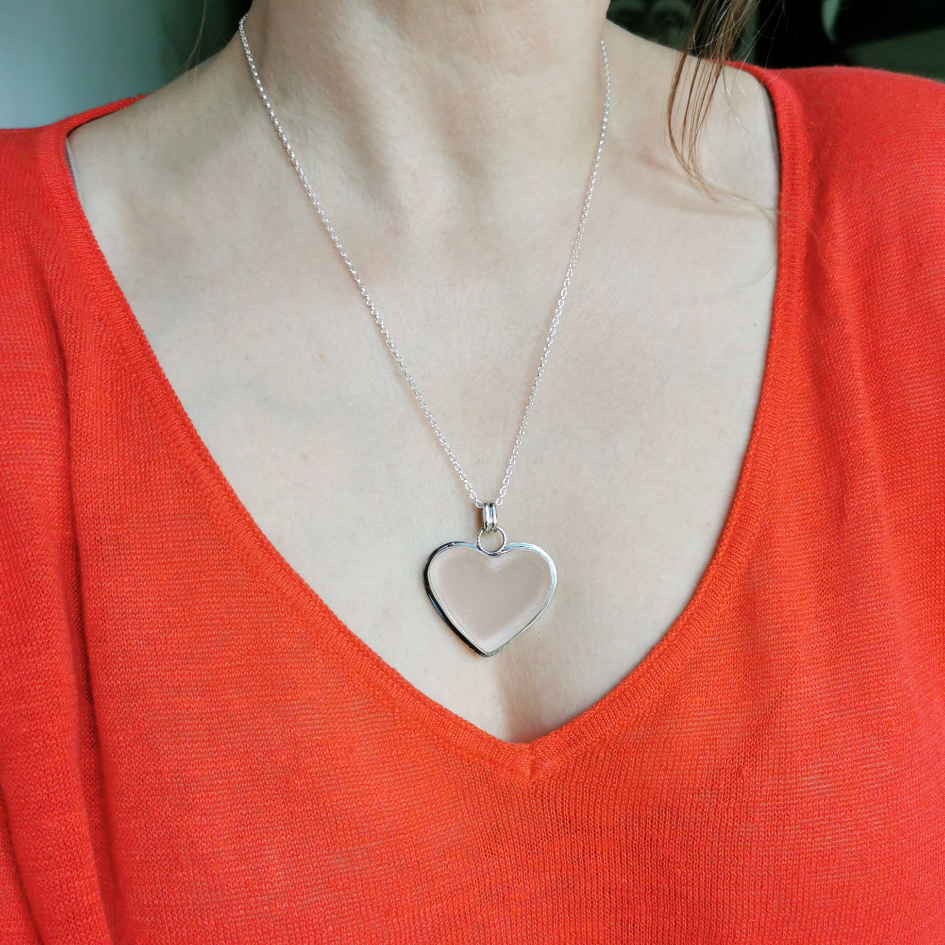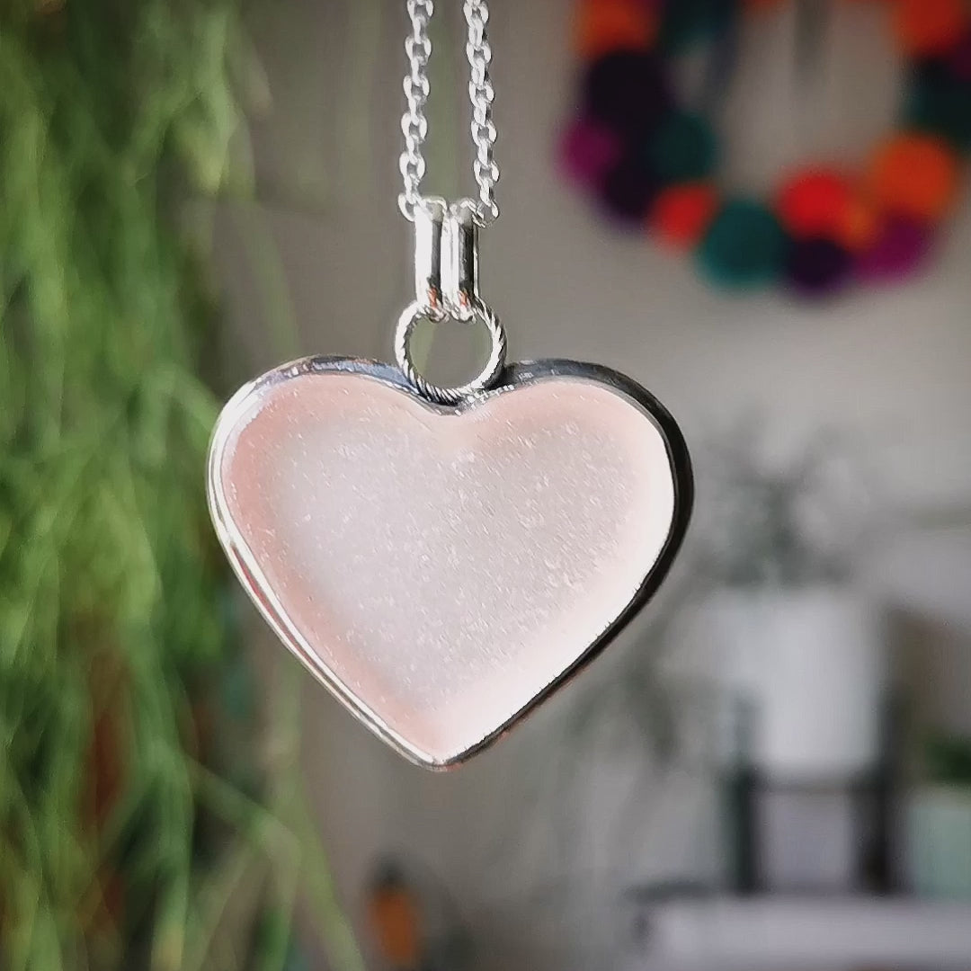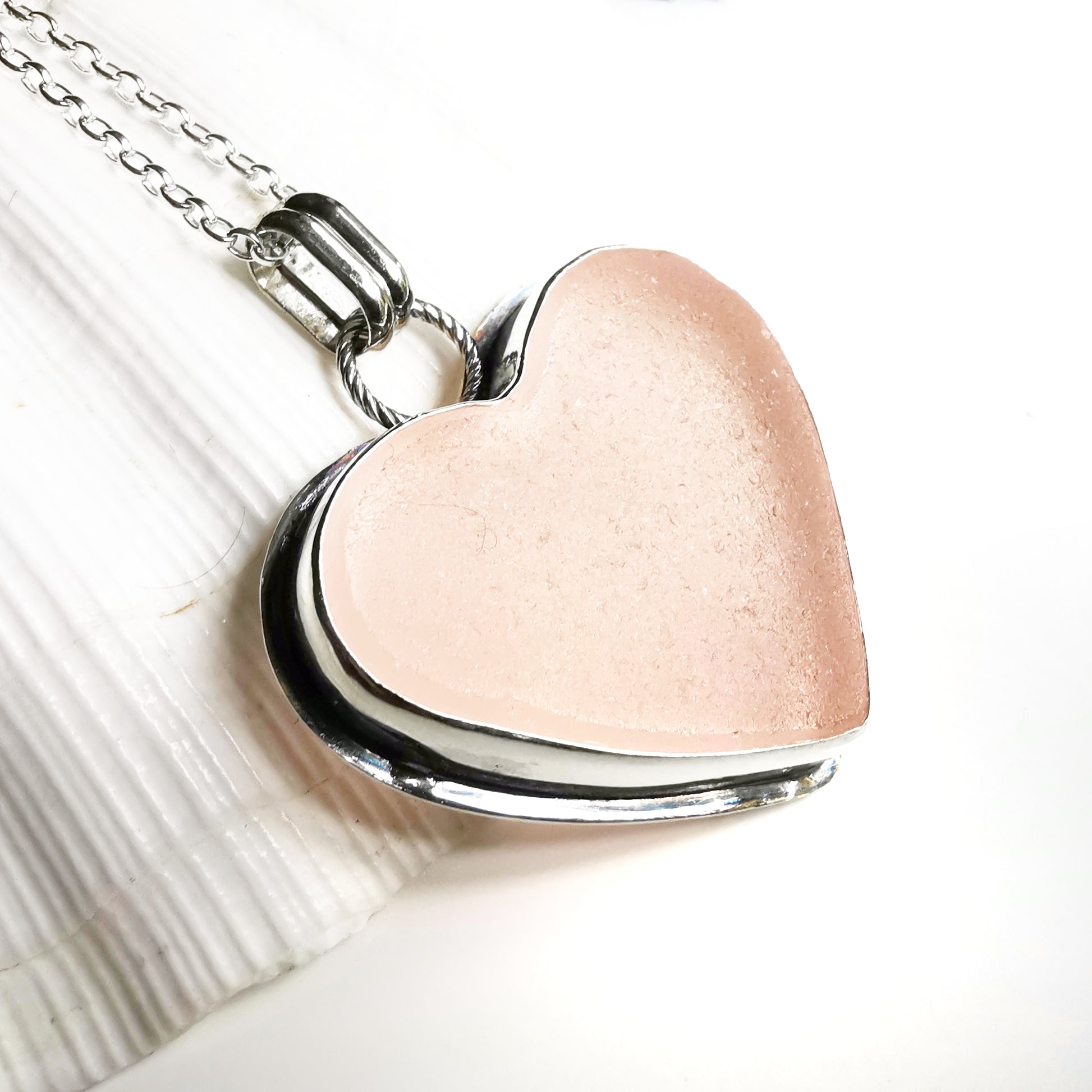 Scottish large soft pink sea glass heart & sterling silver pendant.