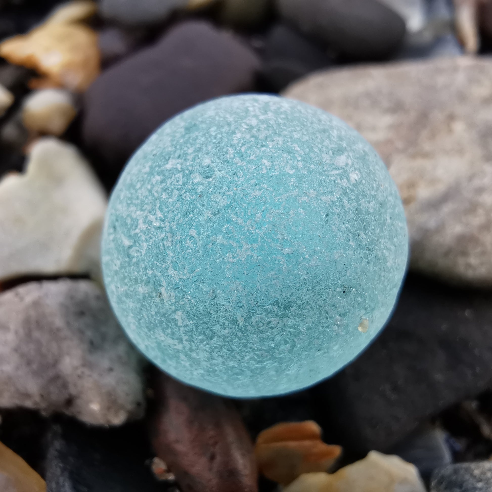 One of a kind pendant composed with genuine frosted aqua blue sea glass marble, found by myself on a beach in Edinburgh. The marble is set in fine silver bezel, the chain is sterling silver. The marble can spin in the bezel, this is normal and it is not a fault, marble is secure and won't fall of the bezel.