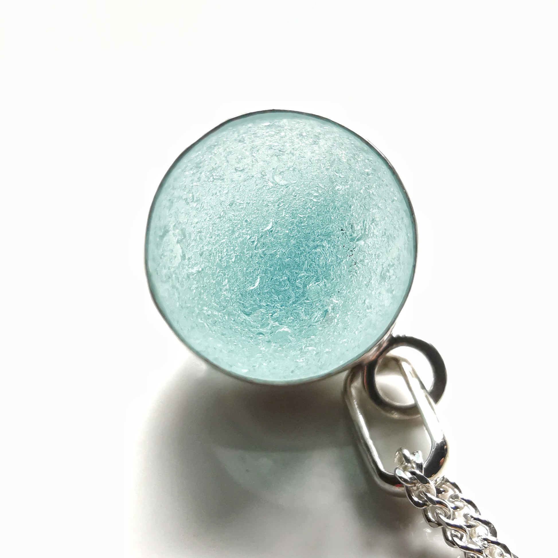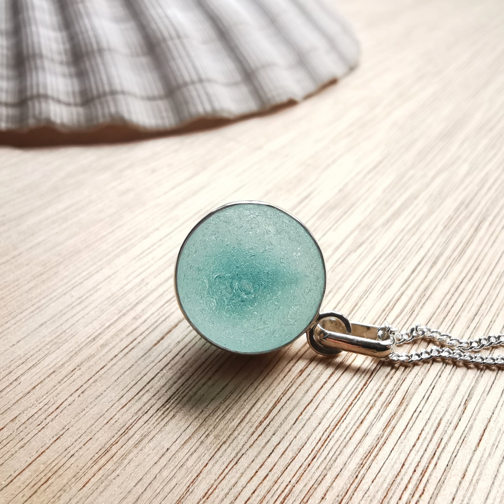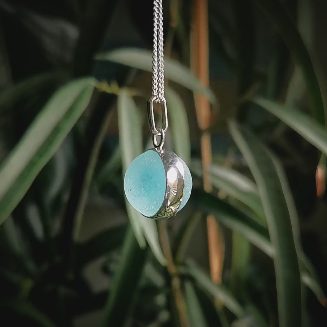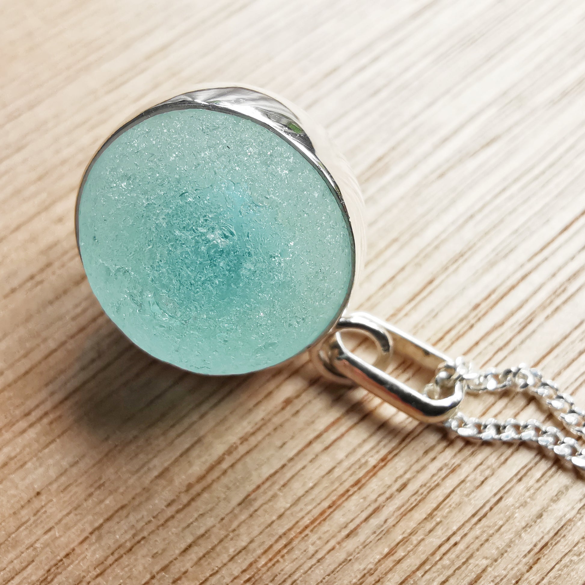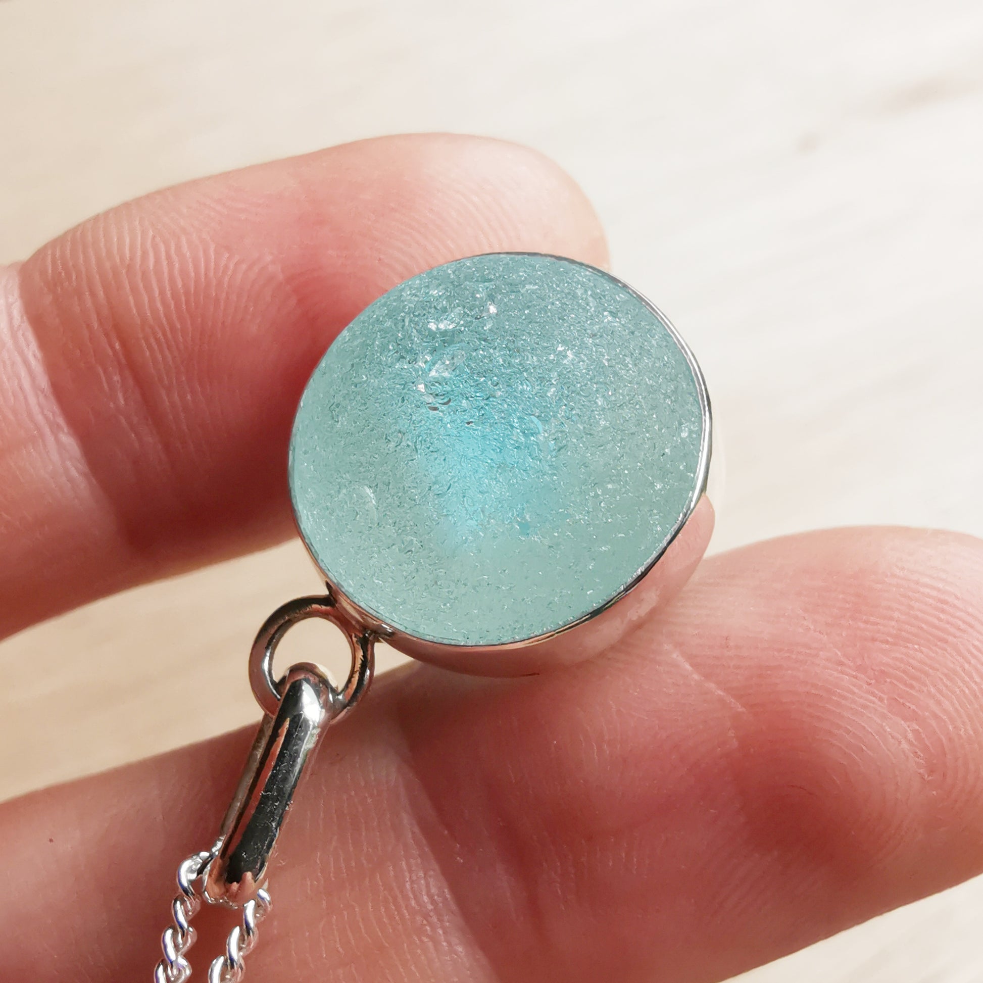 Scottish light aqua blue sea glass marble & sterling silver pendant.