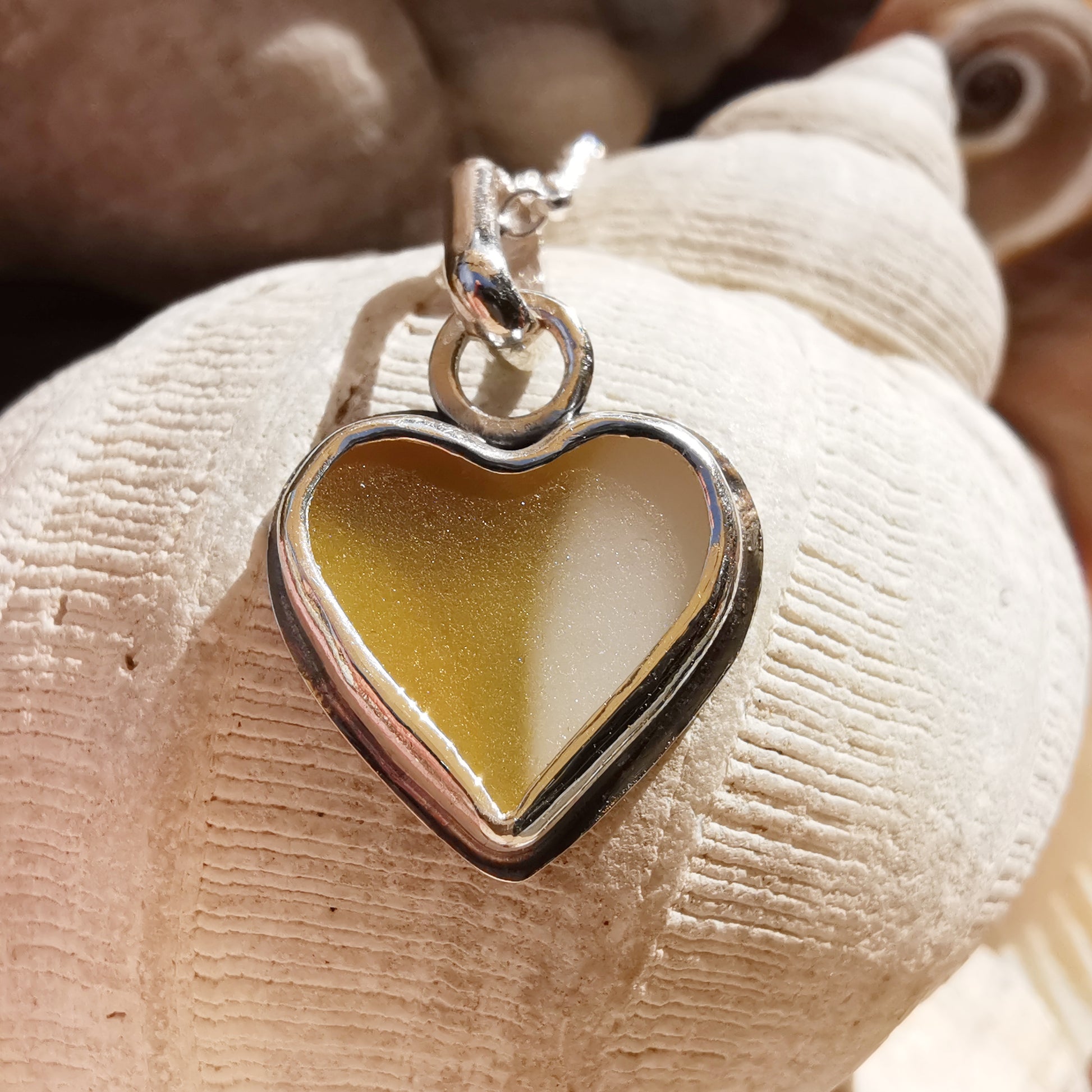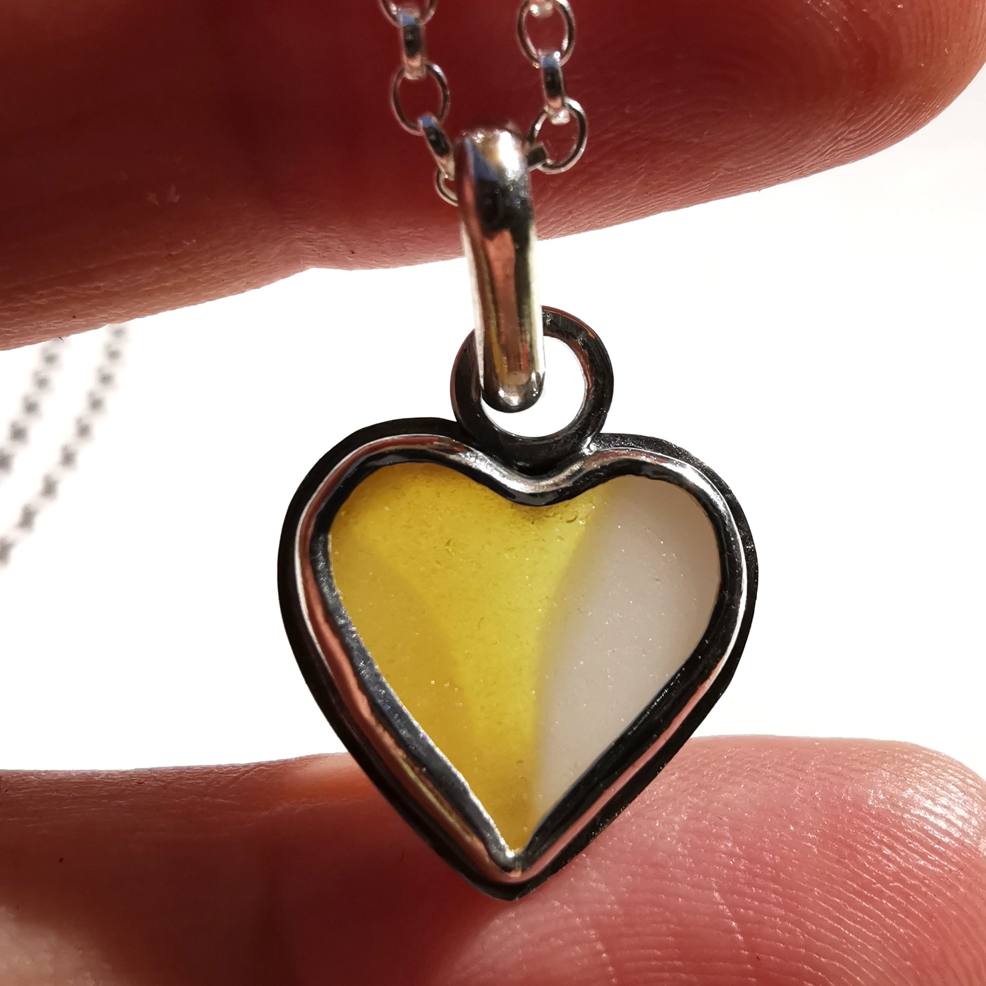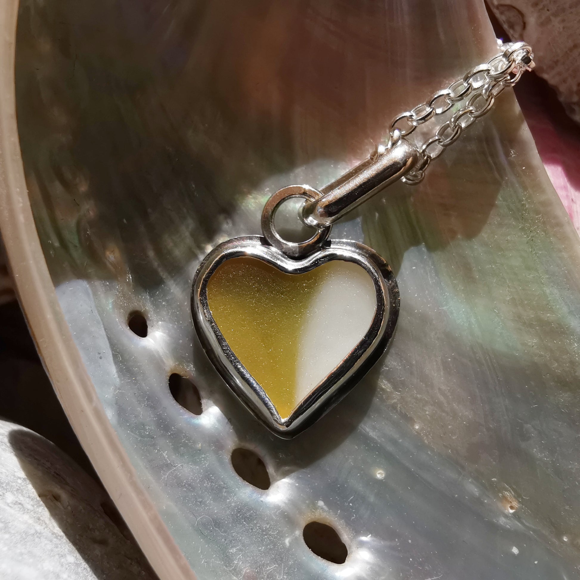 Scottish multi coloured sea glass heart & sterling silver pendant.