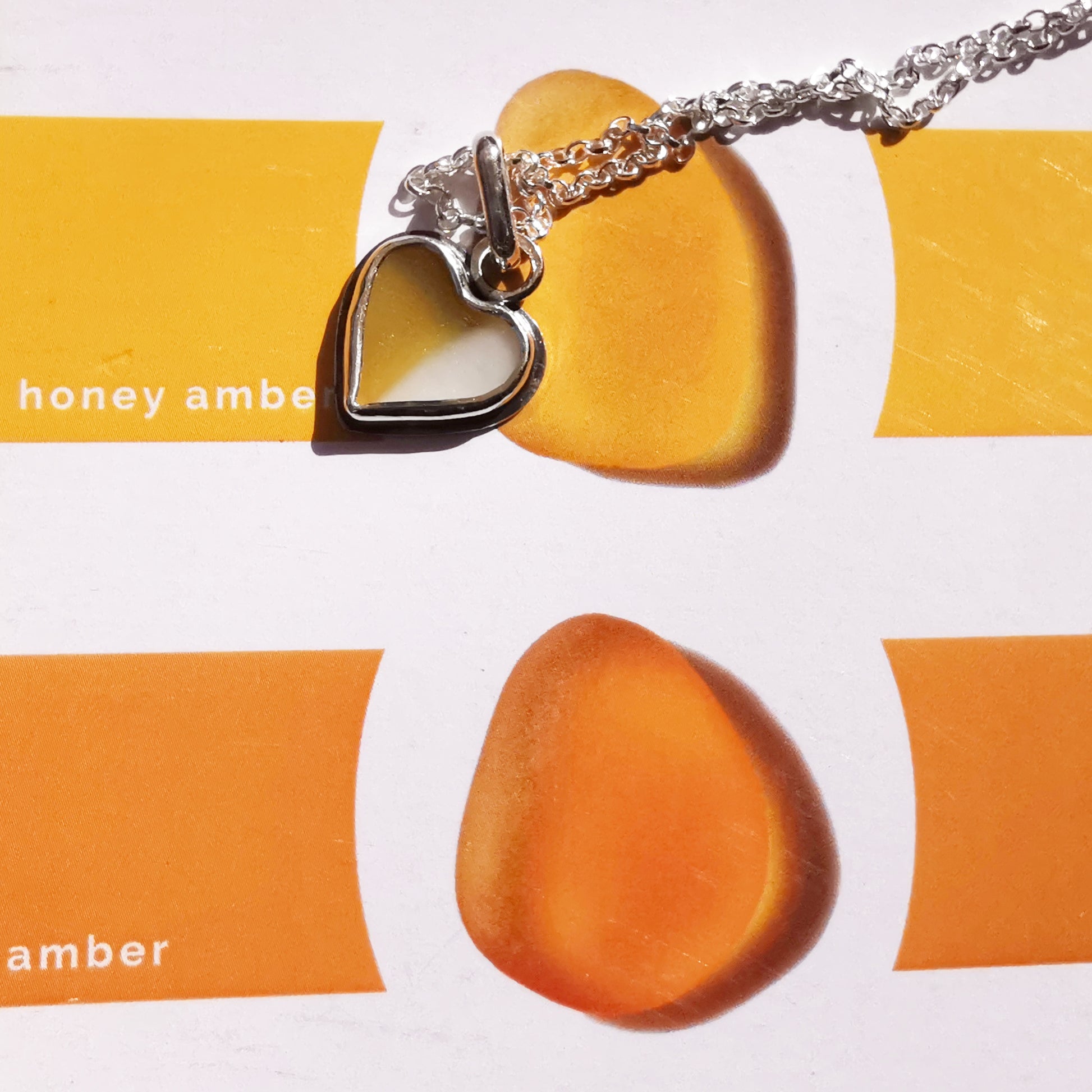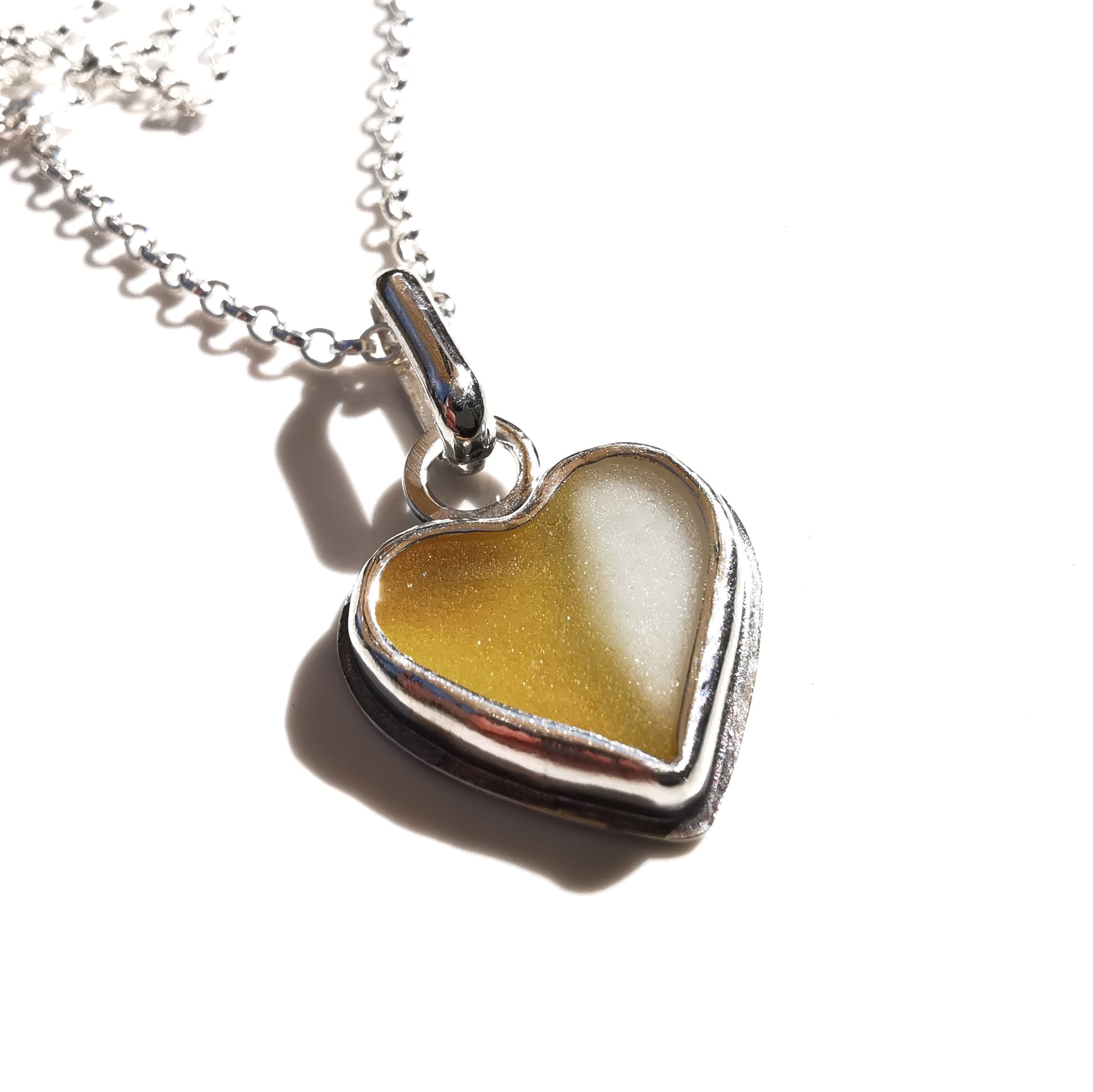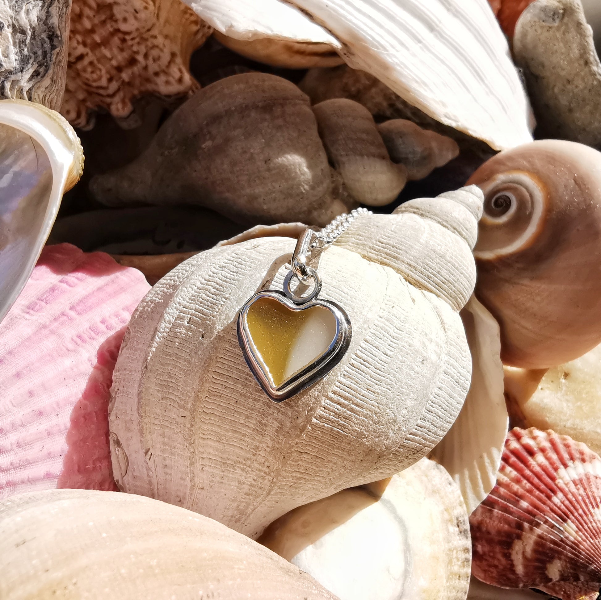 Scottish multi coloured sea glass heart & sterling silver pendant.