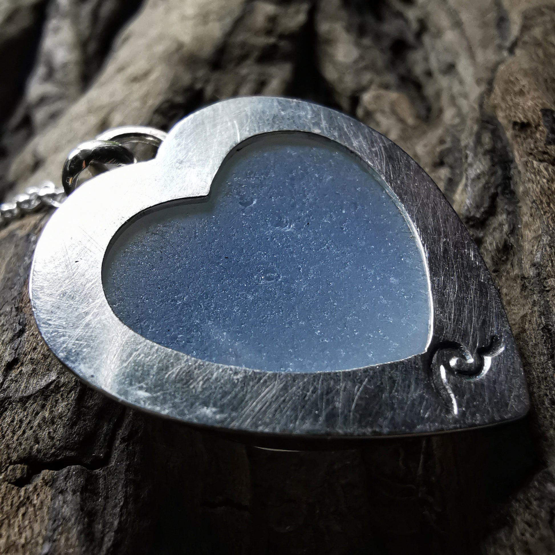 Reserved for Gatia. Scottish opalescent sea glass heart & sterling silver pendant.