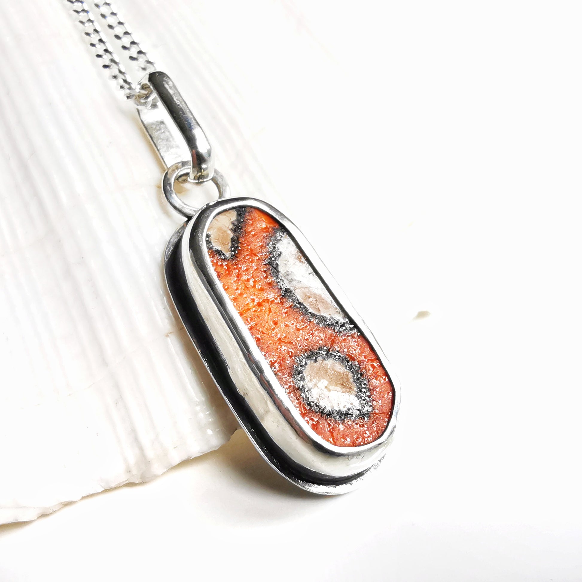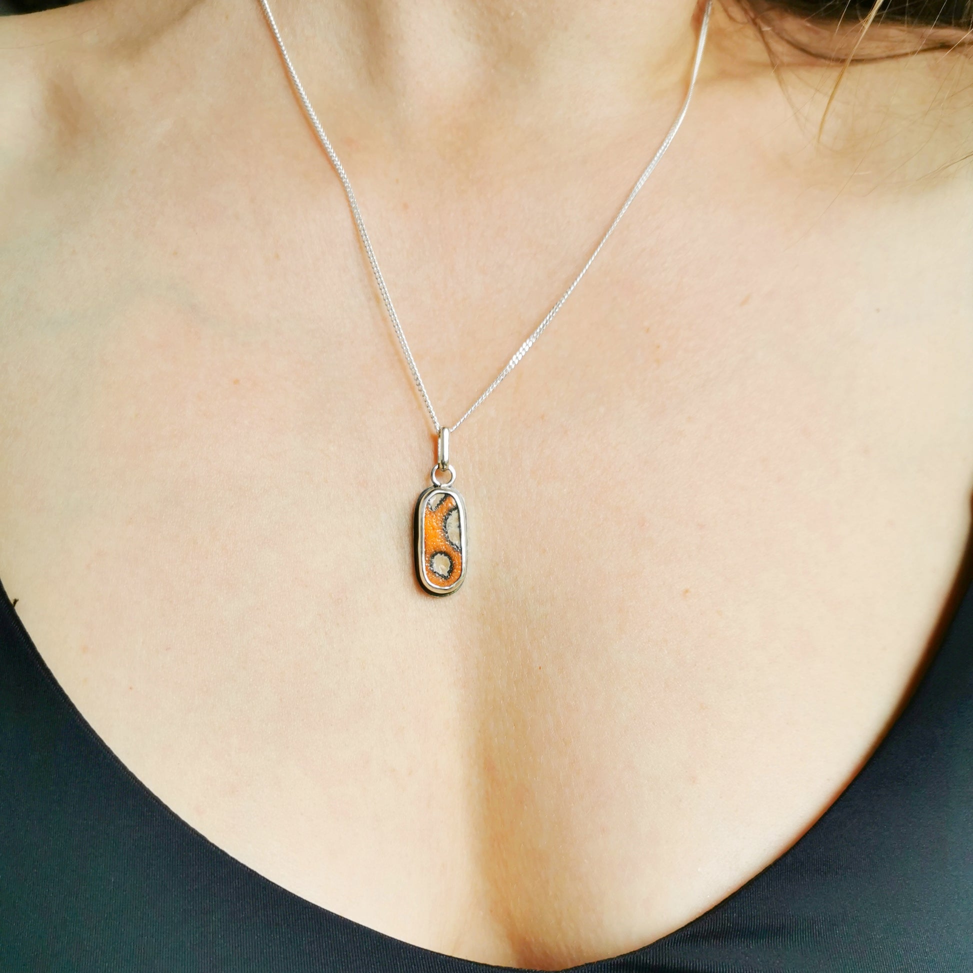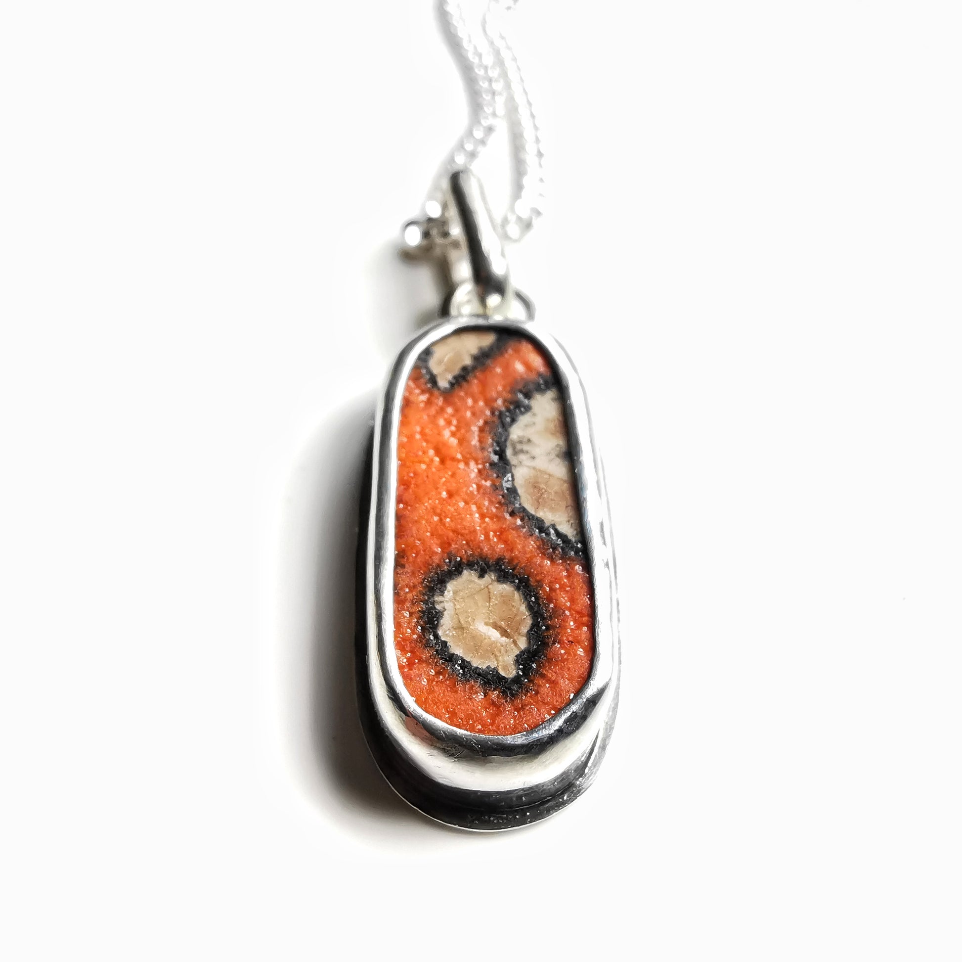 Scottish orange 'vitamin sea' sea pottery & sterling silver pendant.