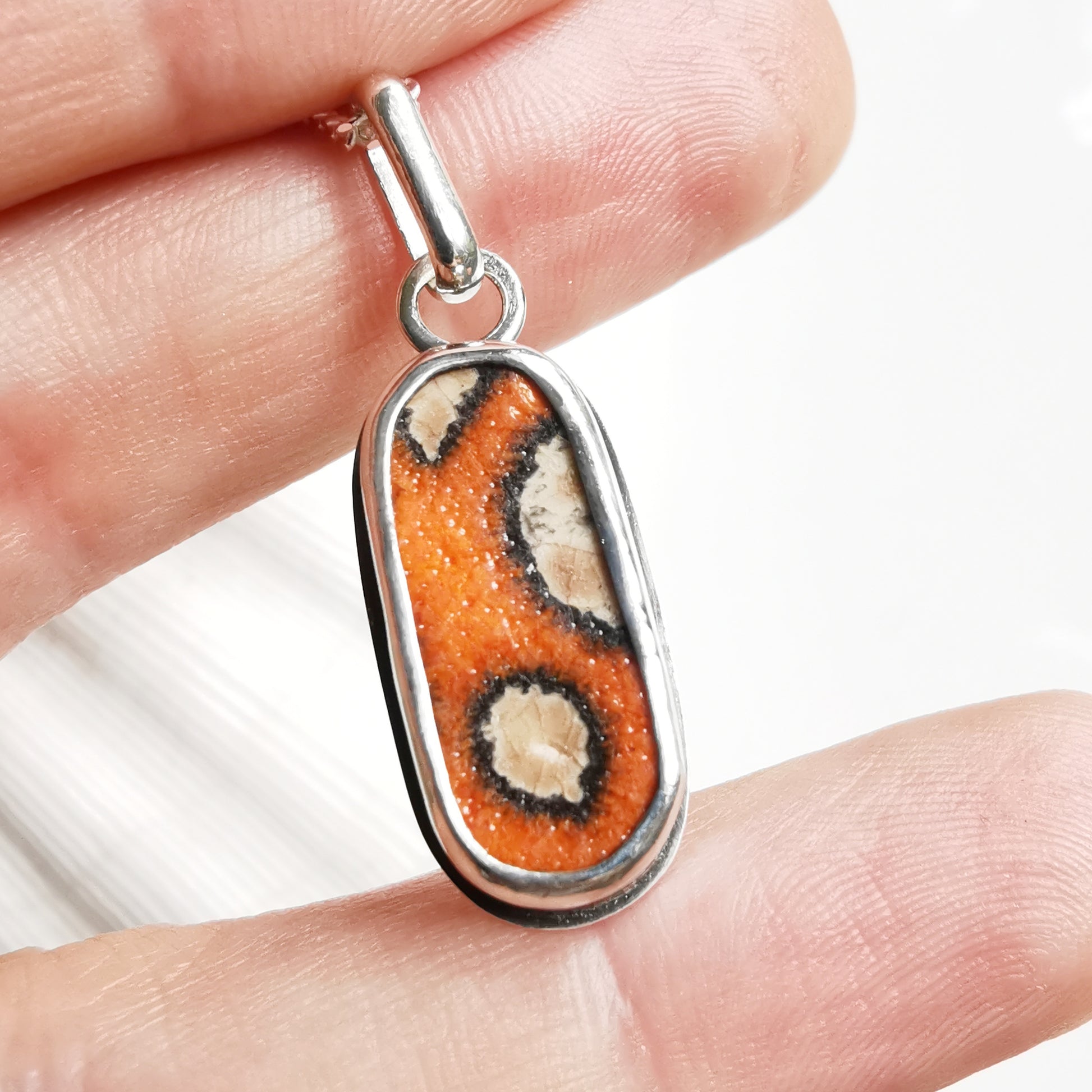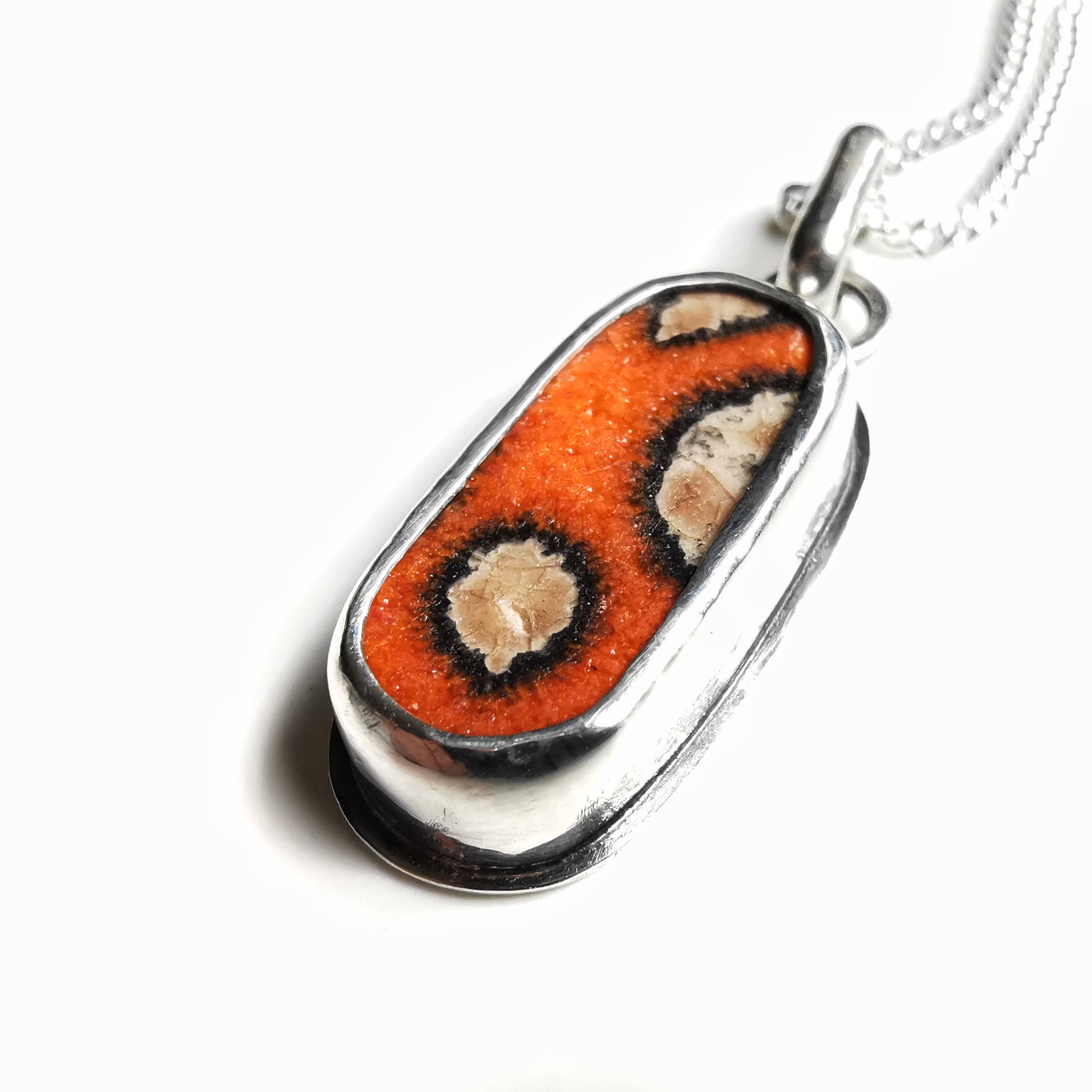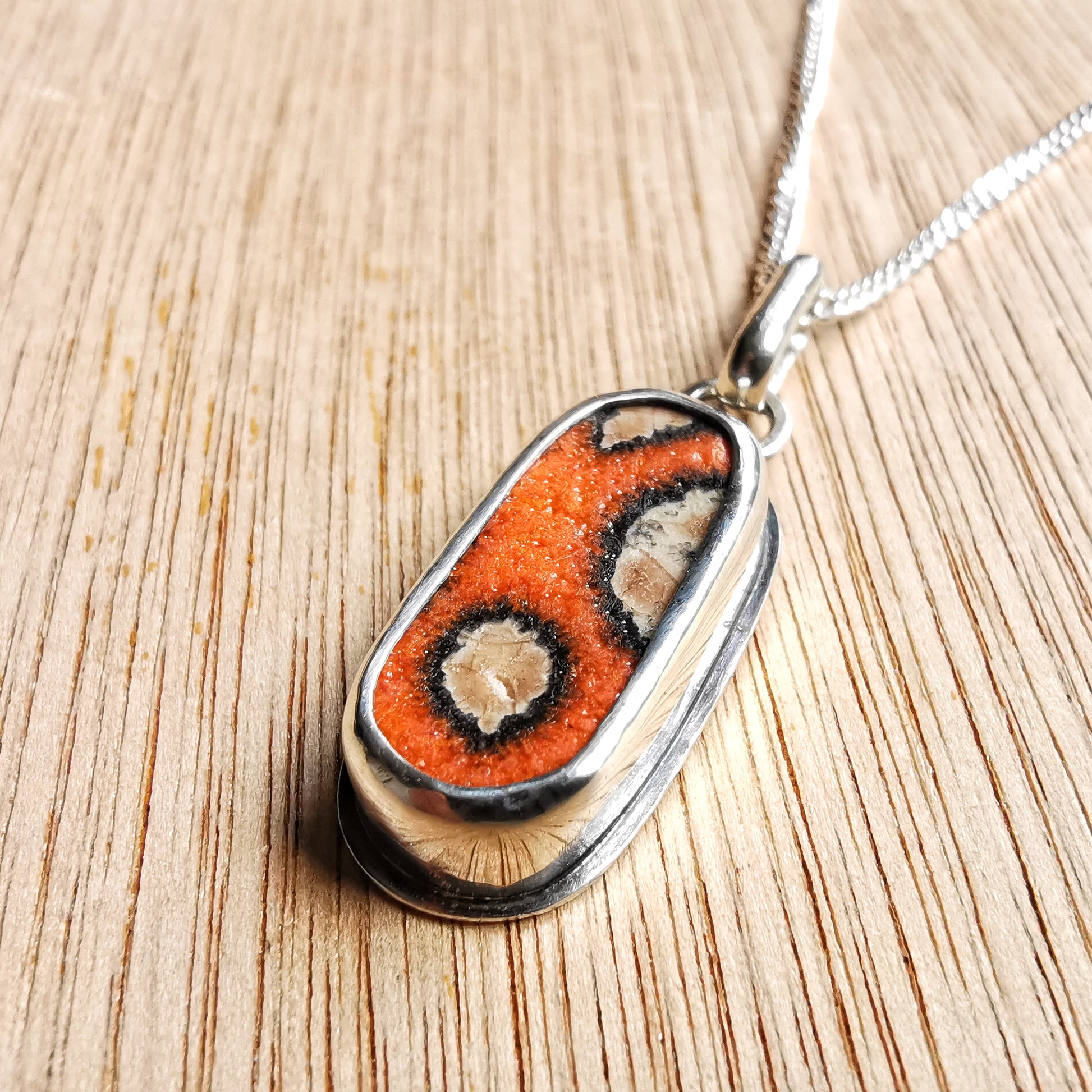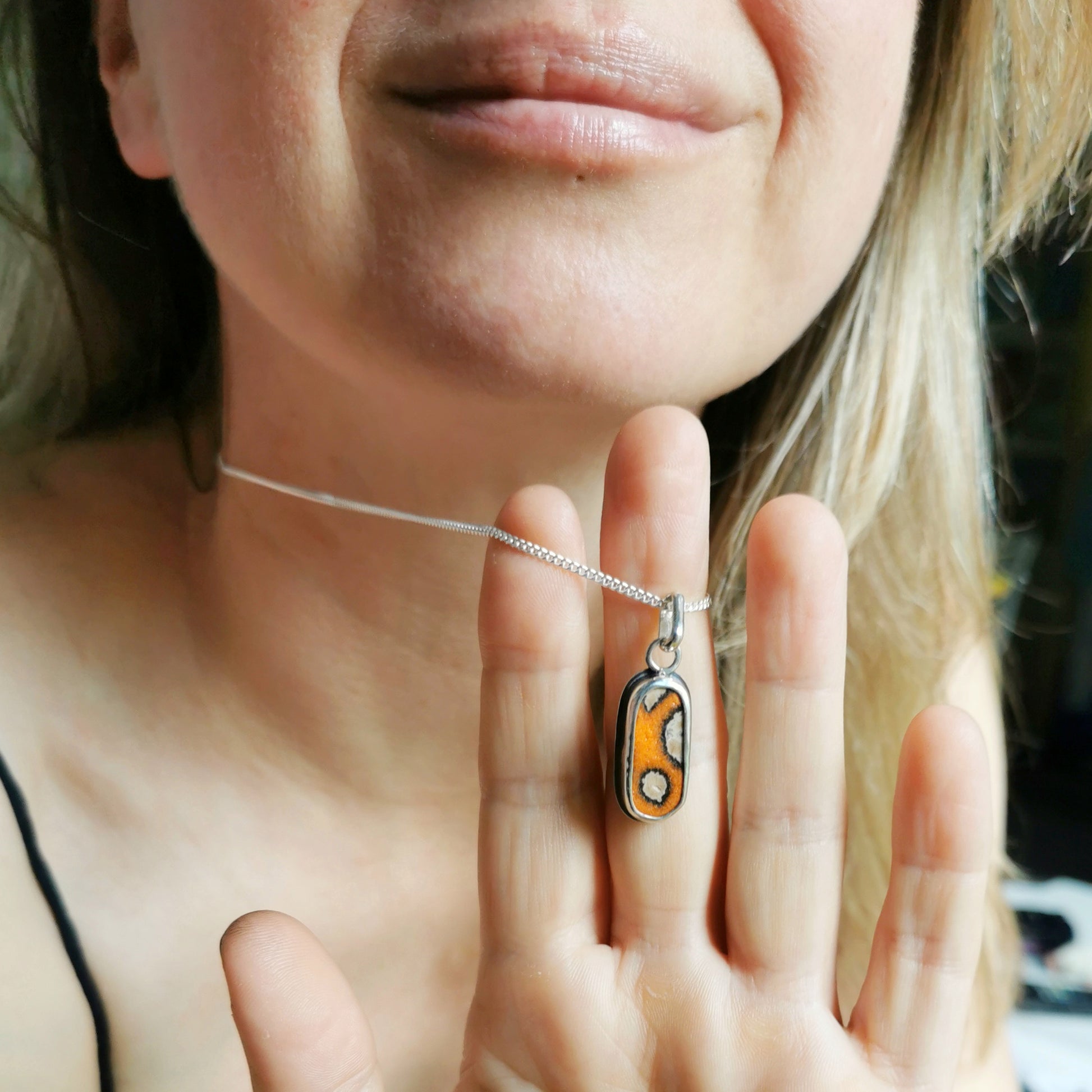 Scottish orange 'vitamin sea' sea pottery & sterling silver pendant.