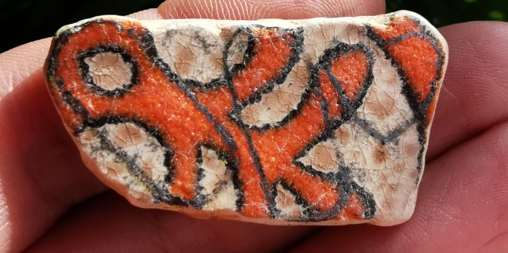 One of a kind pendant composed with Scottish beach pottery which I call 'Nemo' as the resemblance is uncanny, found by me on Edinburgh's beach. I've shaped the piece myself, you can see how the piece of pottery looked before on the last photo.
