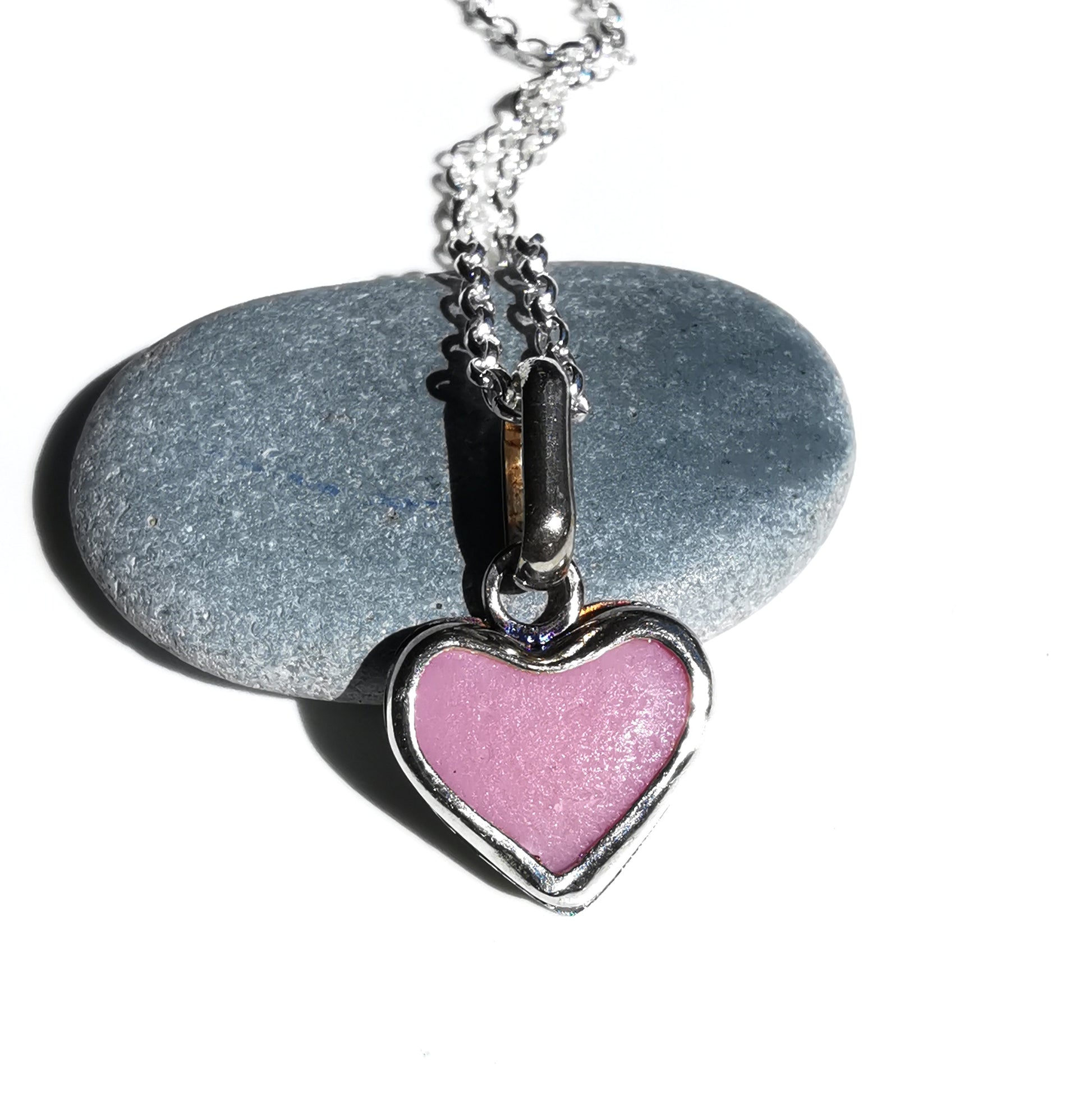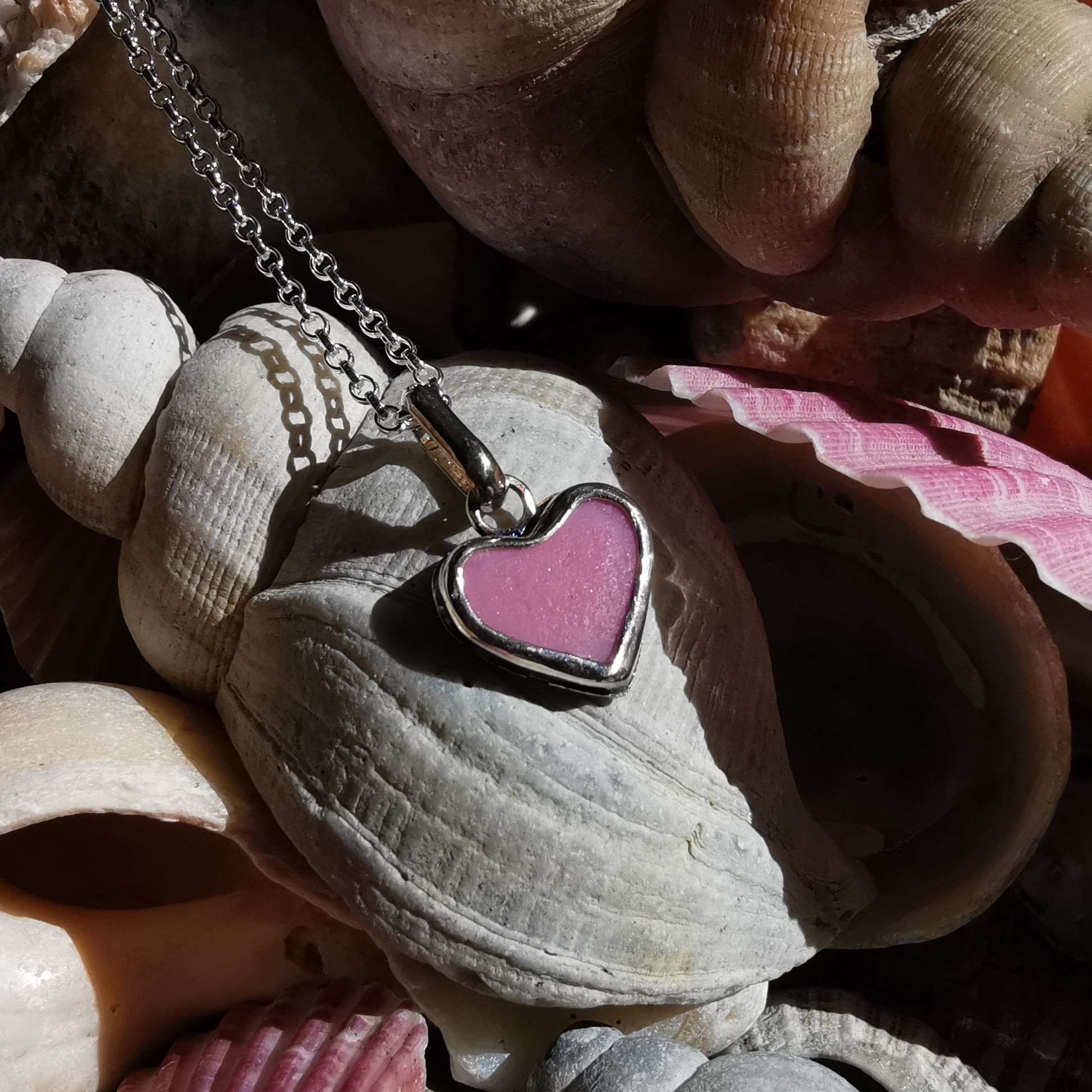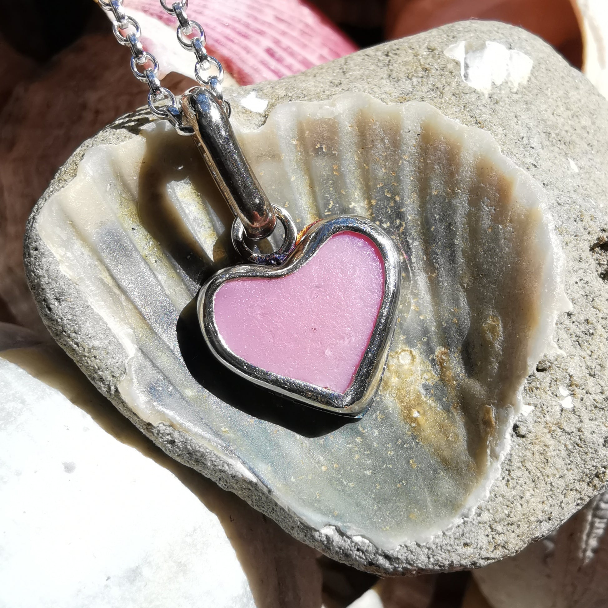 One of a kind pendant composed with genuine pink sea glass. The sea glass is set in silver bezel, the chain is sterling silver. I've shaped this sea glass piece myself, you can see how it looked before on the last photo.